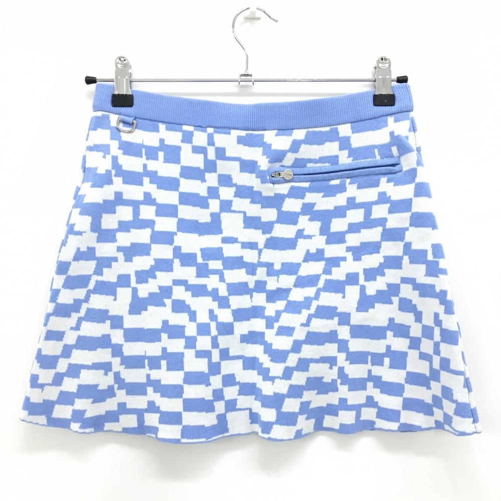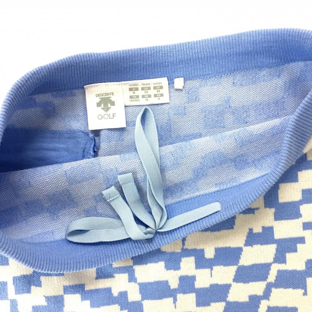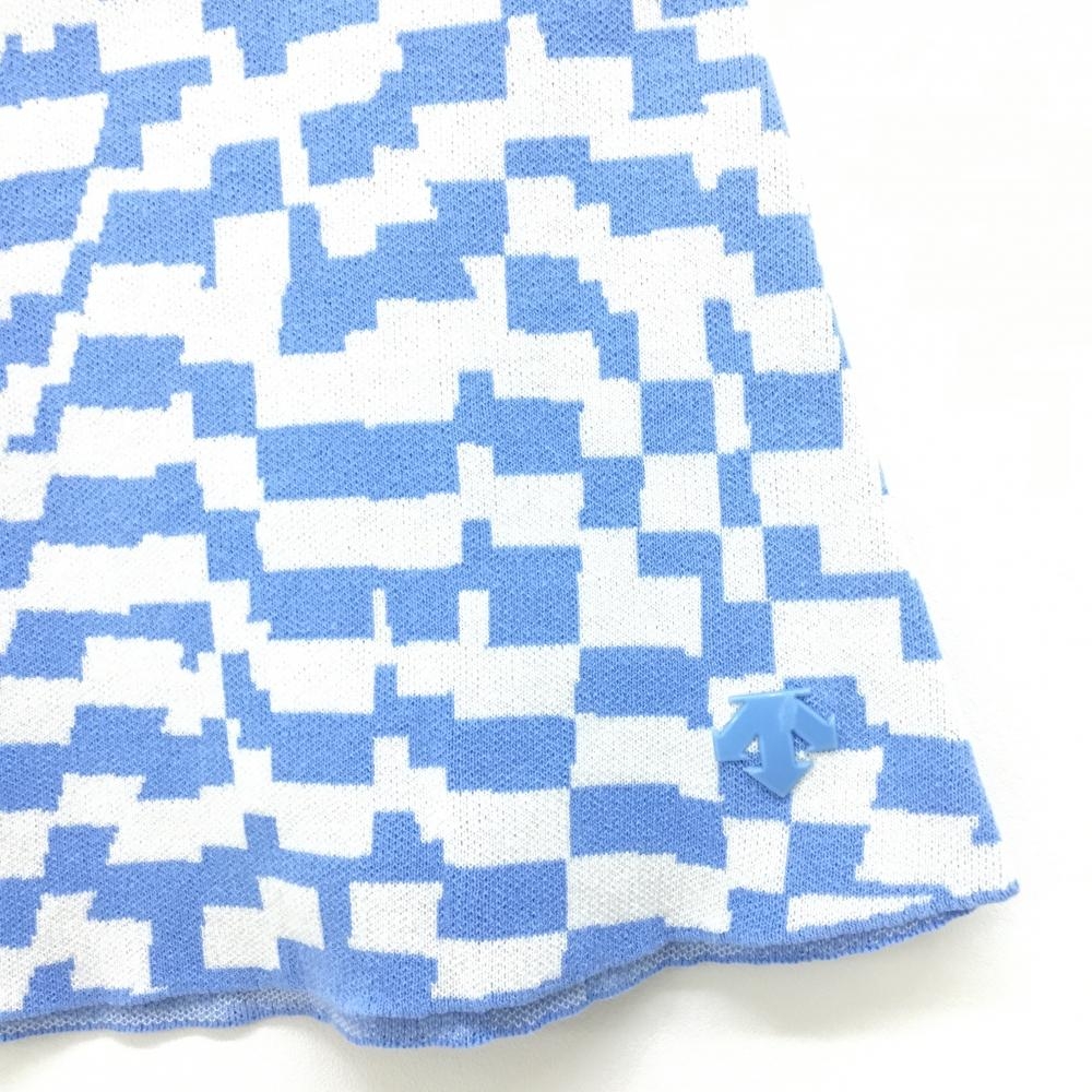 【美品】デサントゴルフ ニットスカート ライトブルー×白 総柄 コットン100% 中田英寿 レディース M ゴルフウェア DESCENTE