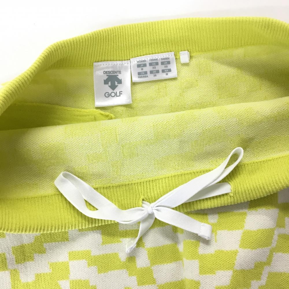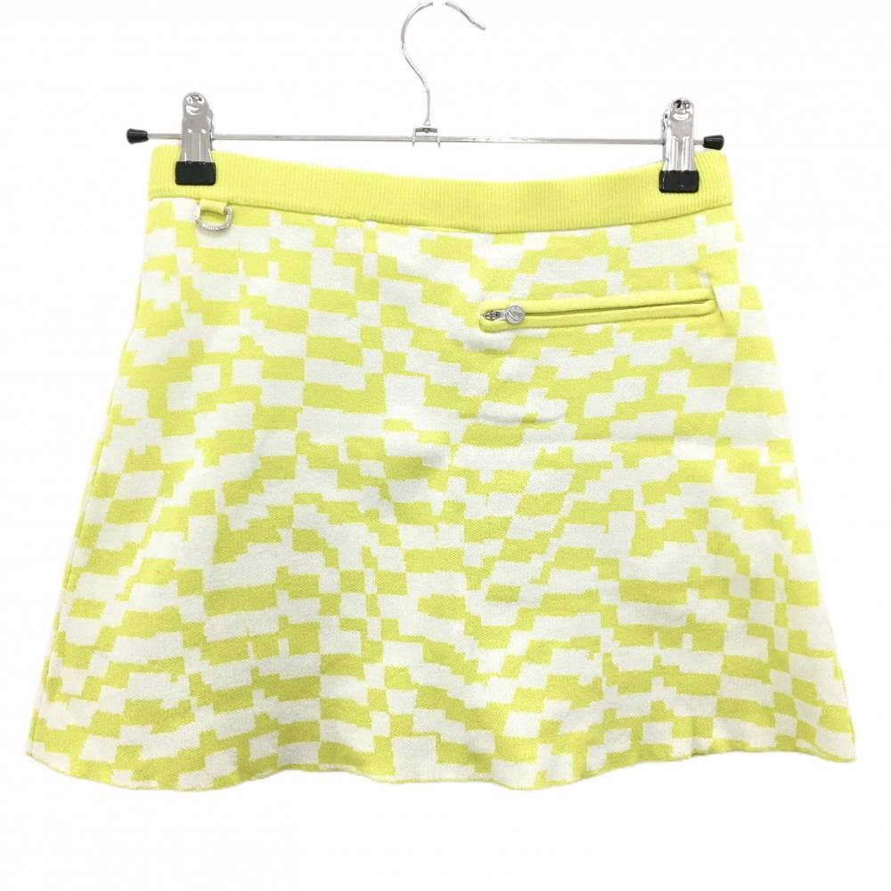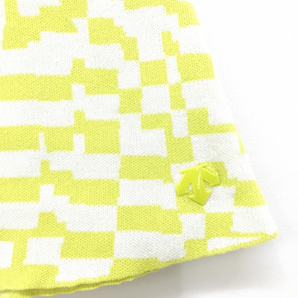 【超美品】デサントゴルフ ニットスカート イエローグリーン×白 総柄 コットン100% 中田英寿 レディース M ゴルフウェア DESCENTE