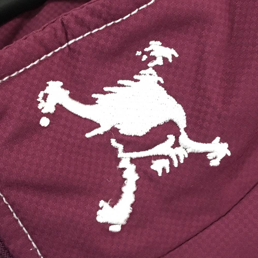 【超美品】オークリー 2WAYブルゾン ボルドー×白 織生地 袖着脱可 メッシュ裏地 メンズ M ゴルフウェア Oakley