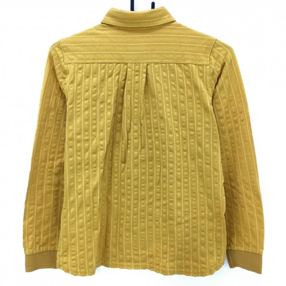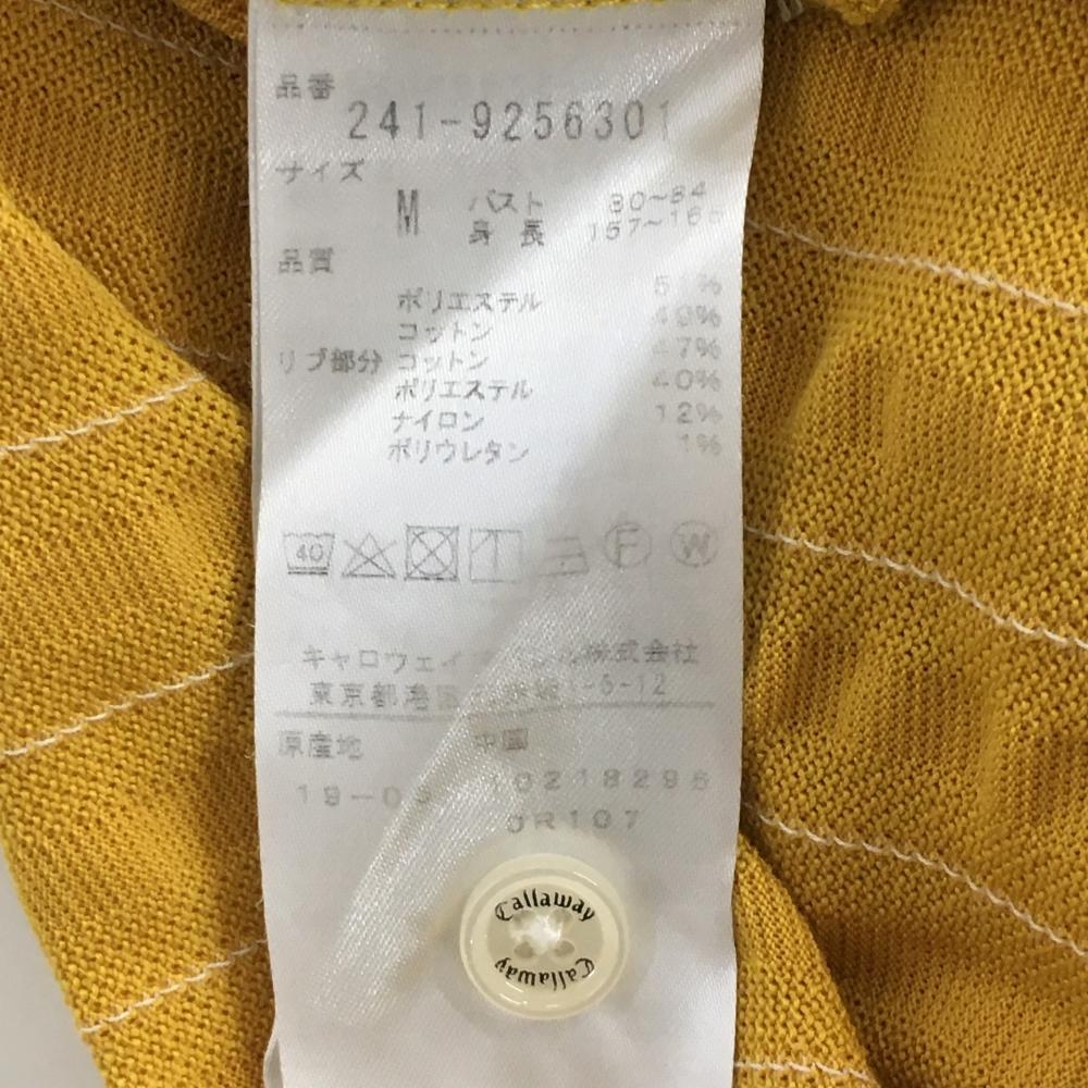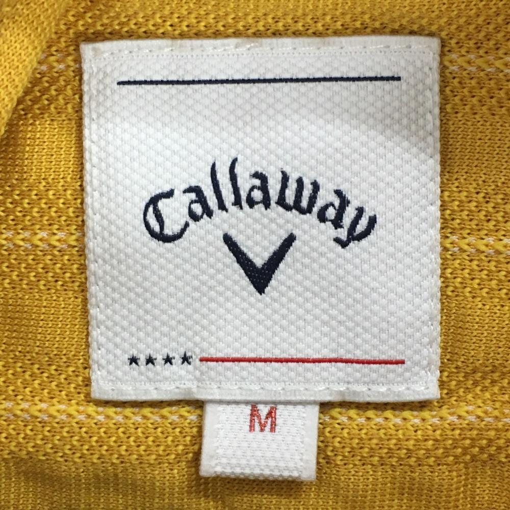 【美品】キャロウェイ 長袖ポロシャツ イエロー系×白 ストライプ 織生地 レディース M ゴルフウェア Callaway