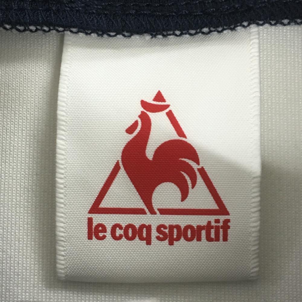 ルコック 半袖ハイネックシャツ 白×ネイビー ハーフジップ ロゴプリント レディース S ゴルフウェア le coq sportif