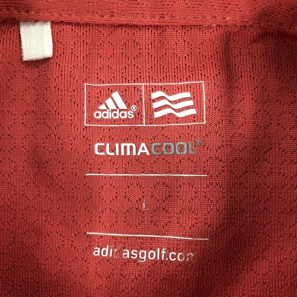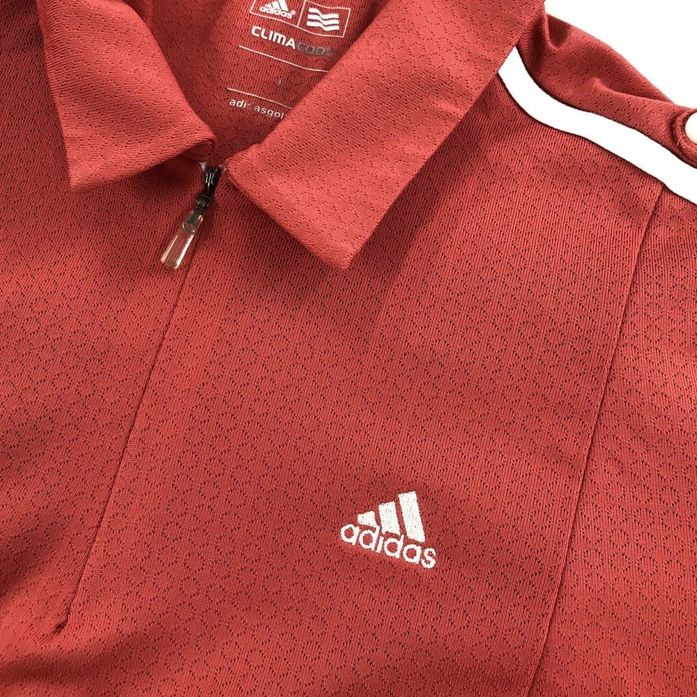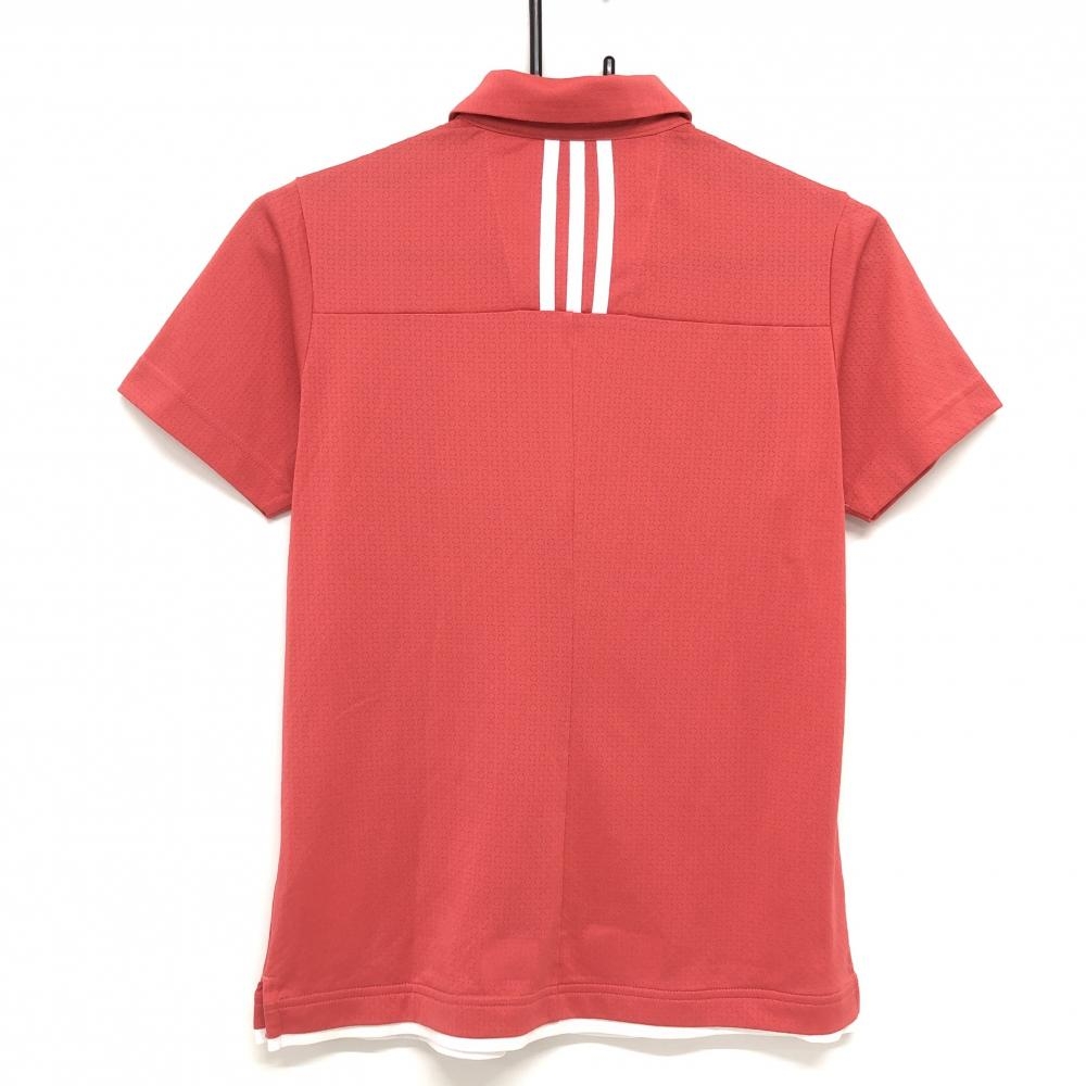 【超美品】アディダス 半袖ポロシャツ ピンクレッド ハーフジップ 総柄織生地 背3ライン レディース L ゴルフウェア adidas