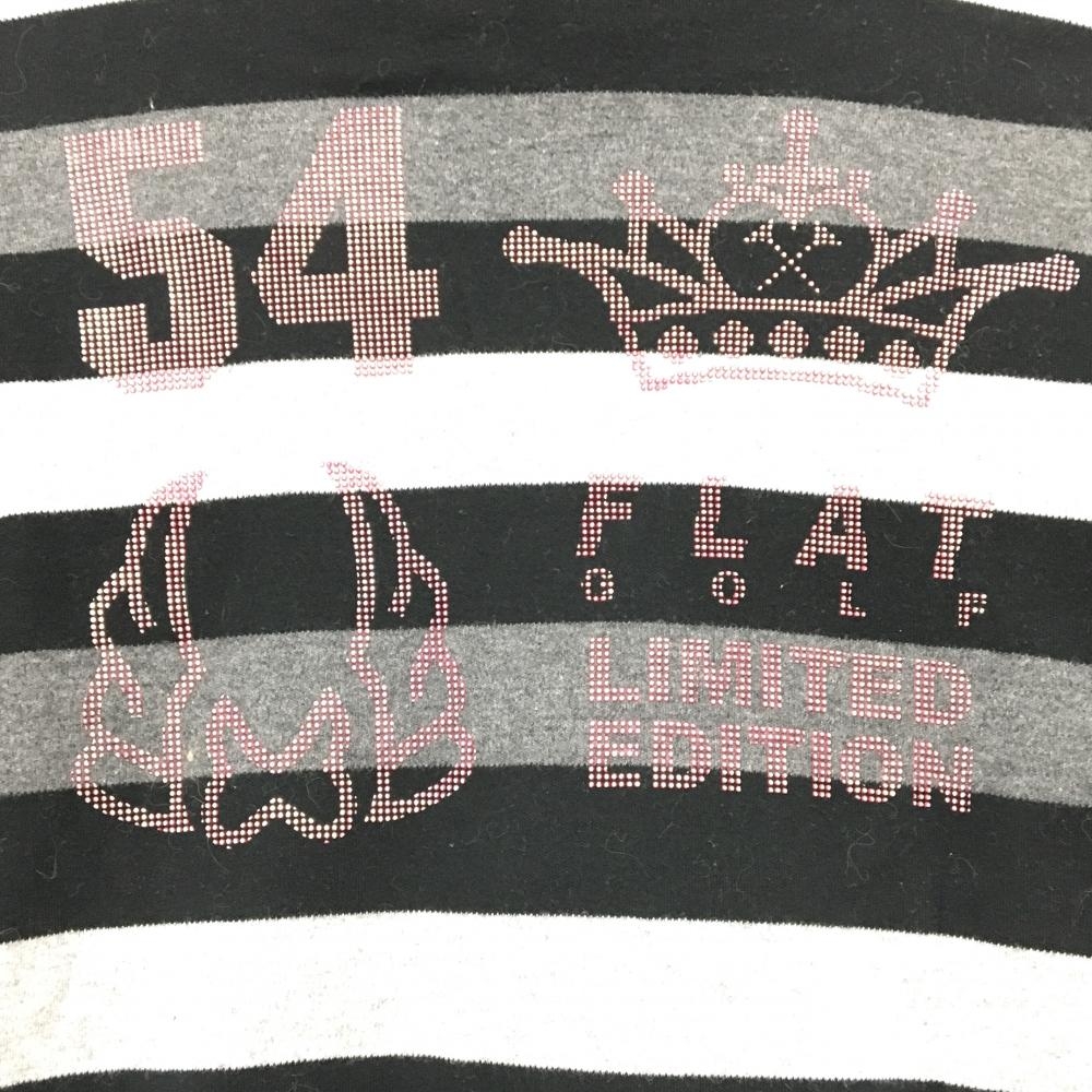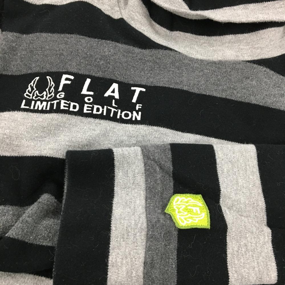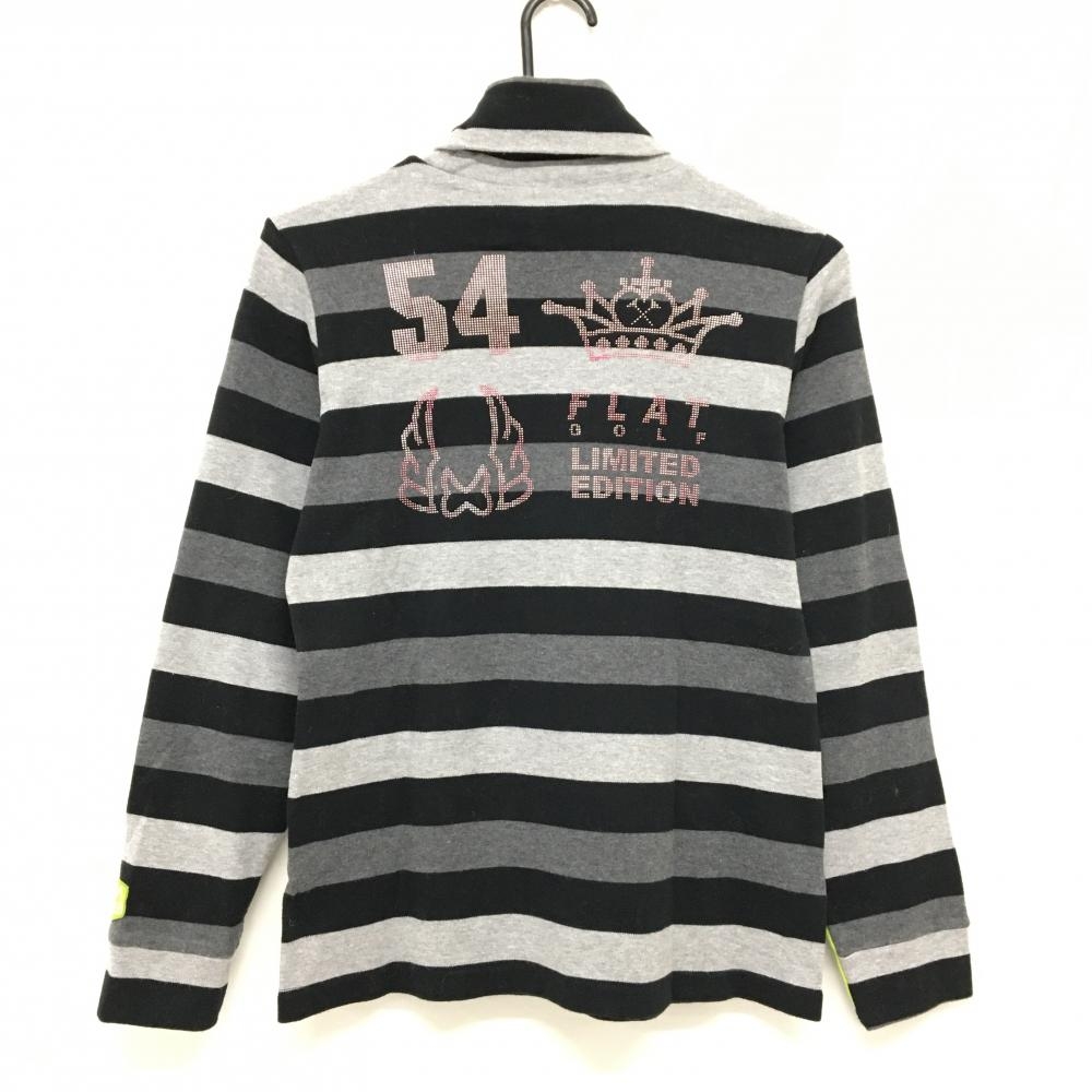 【美品】フラットゴルフ 長袖ハイネックシャツ 黒×グレー ボーダー レディース M ゴルフウェア FLATGOLF
