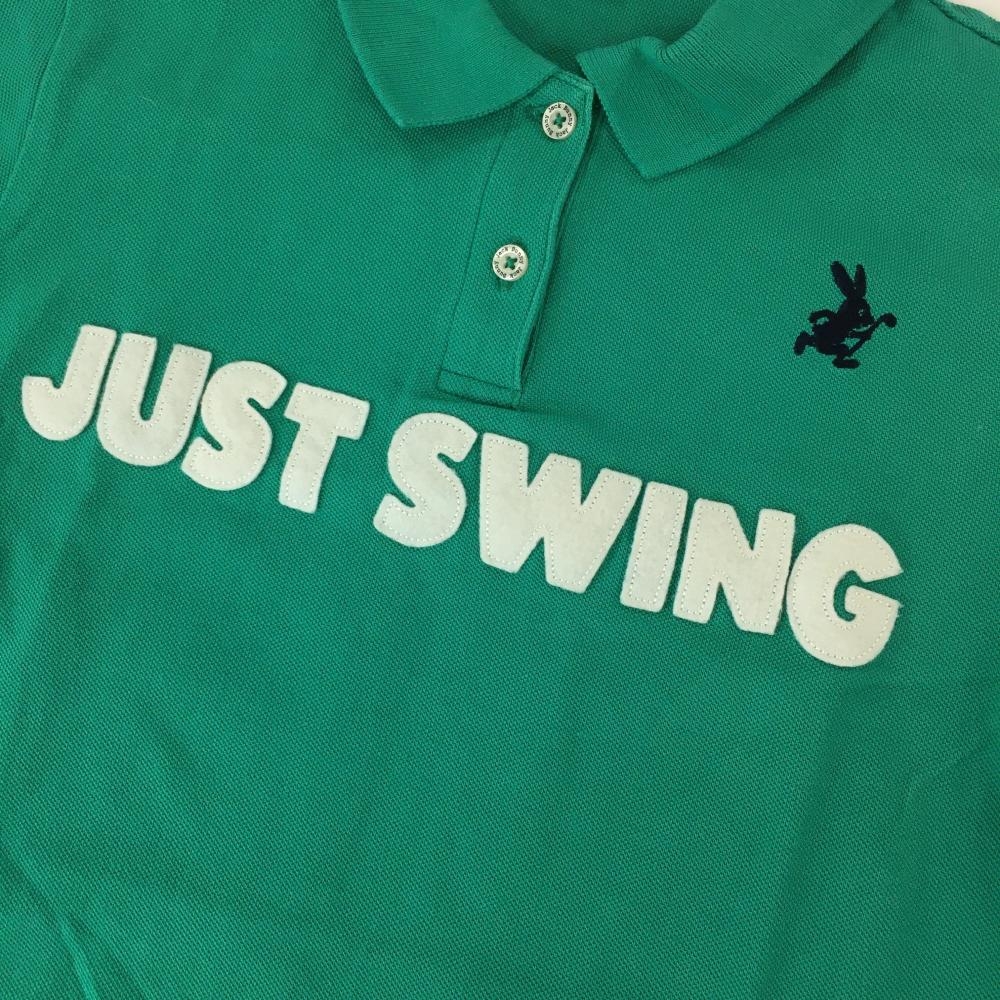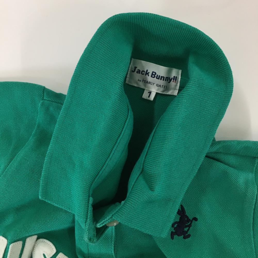 ジャックバニー 半袖ポロシャツ グリーン×白 フェルトワッペン レディース 1(M) ゴルフウェア Jack Bunny