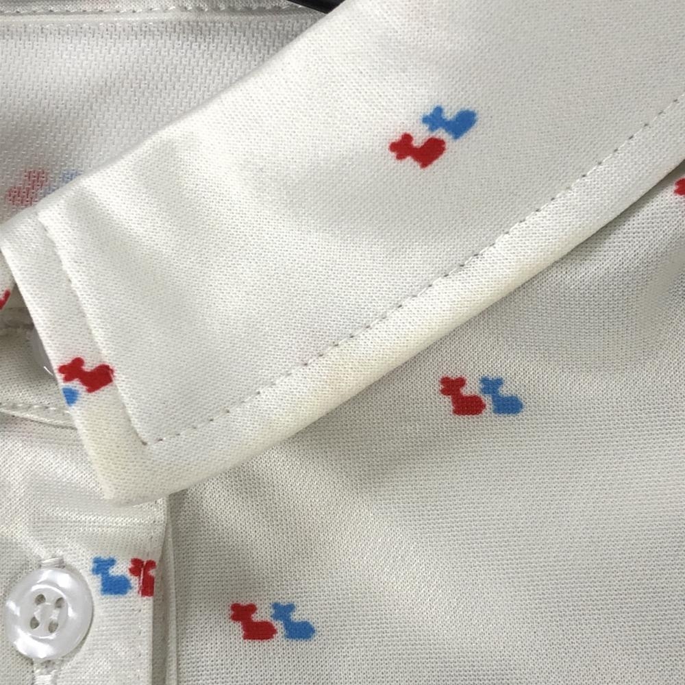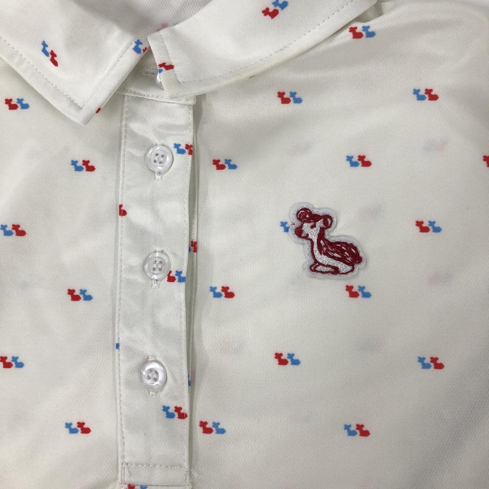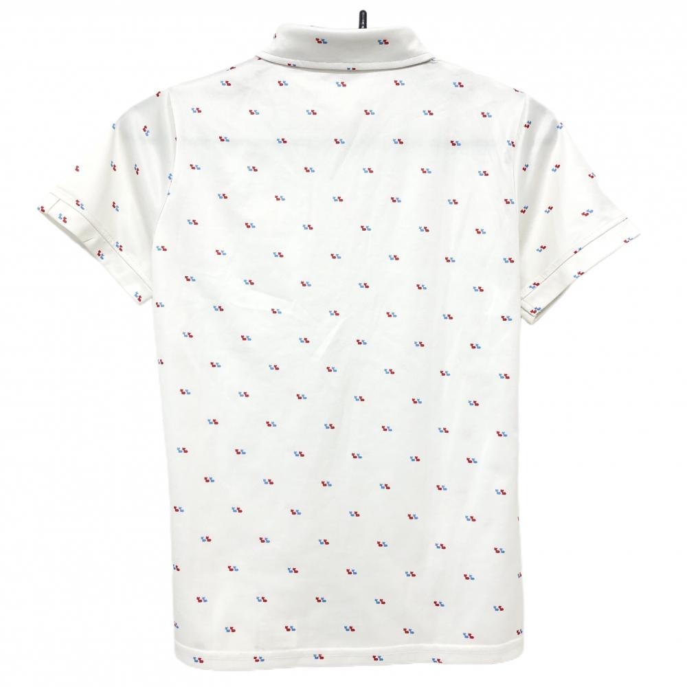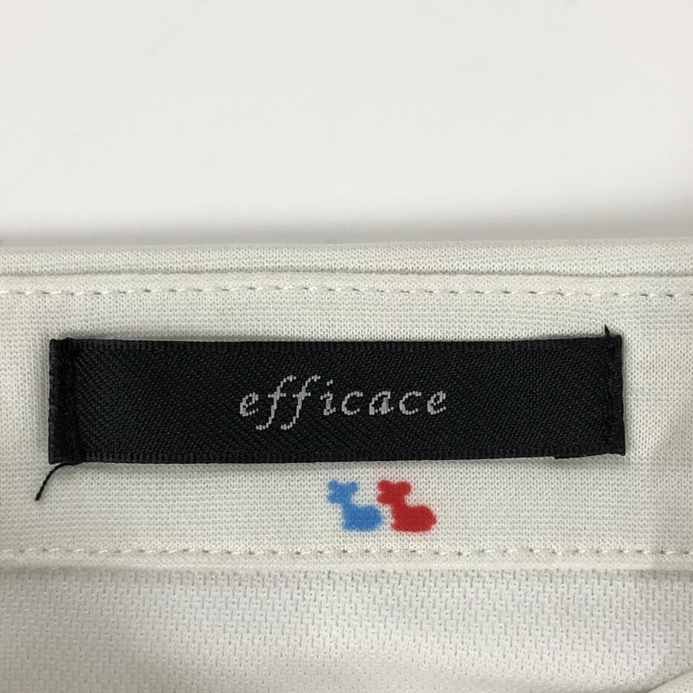【美品】エフィカス 半袖ポロシャツ 白×レッド ロゴ総柄 胸元ワッペン レディース M ゴルフウェア efficace