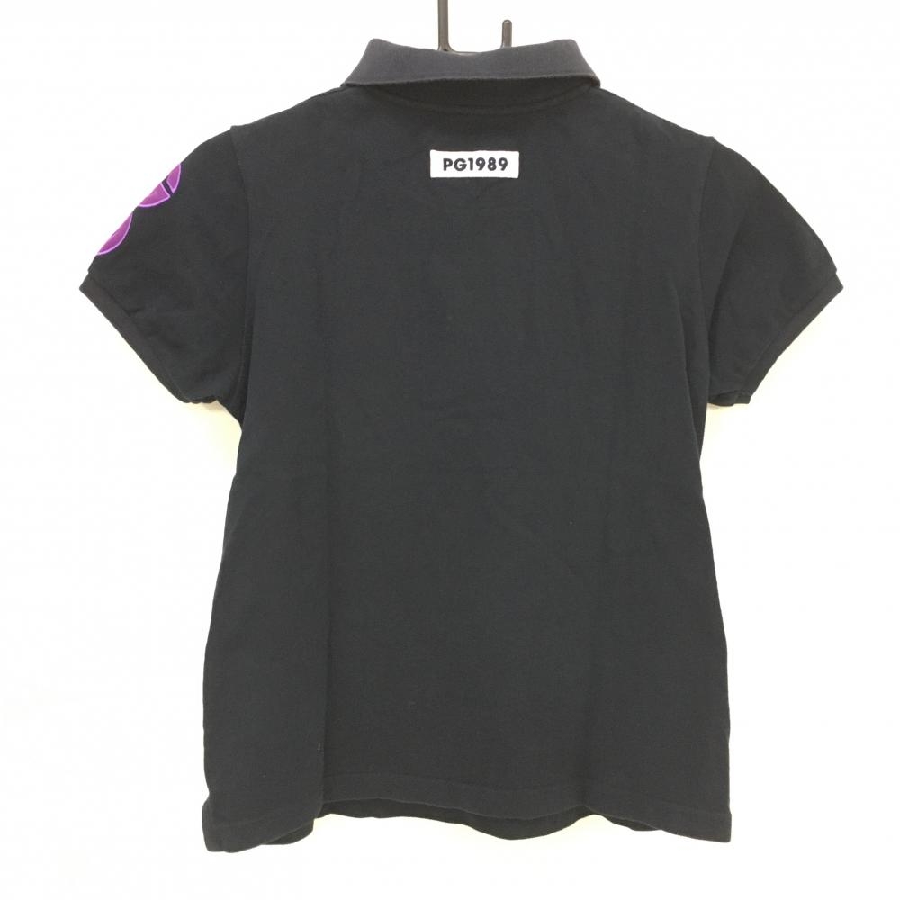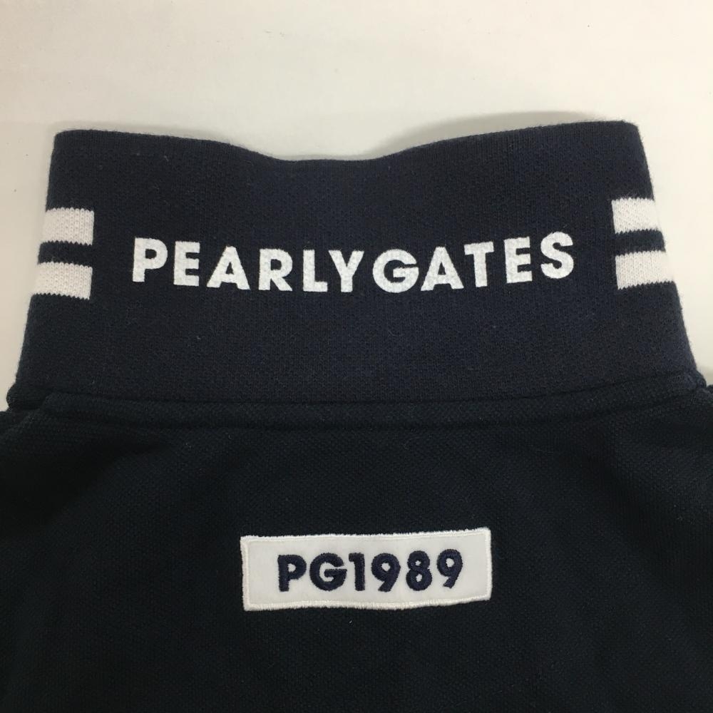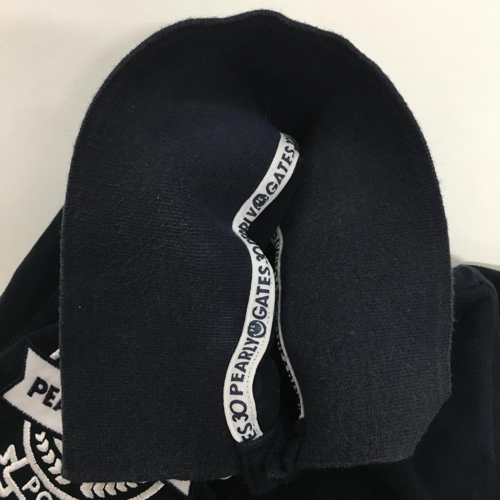 パーリーゲイツ 半袖ポロシャツ ネイビー×白 30周年 襟裏ロゴ 胸・袖ワッペン レディース 1(M) ゴルフウェア PEARLY GATES