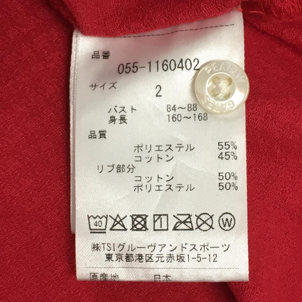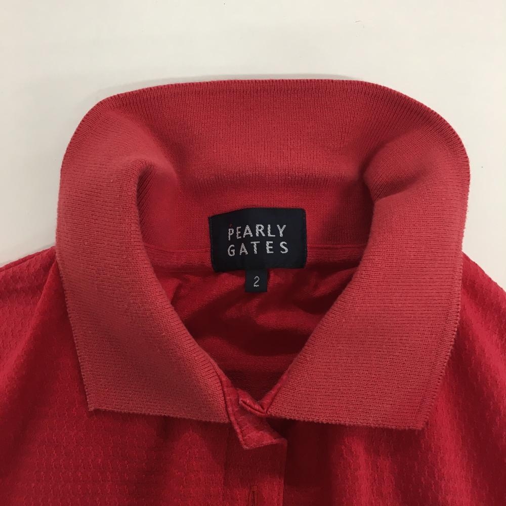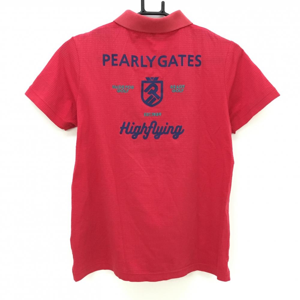 パーリーゲイツ 半袖ポロシャツ レッド 織生地 背面ロゴ レディース 2(L) ゴルフウェア PEARLY GATES
