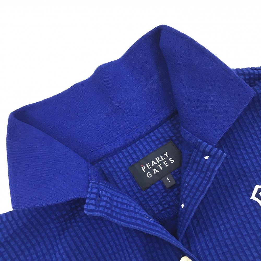 パーリーゲイツ 半袖ポロシャツ ブルー ストライプ サッカー生地 レディース 1(M) ゴルフウェア PEARLY GATES