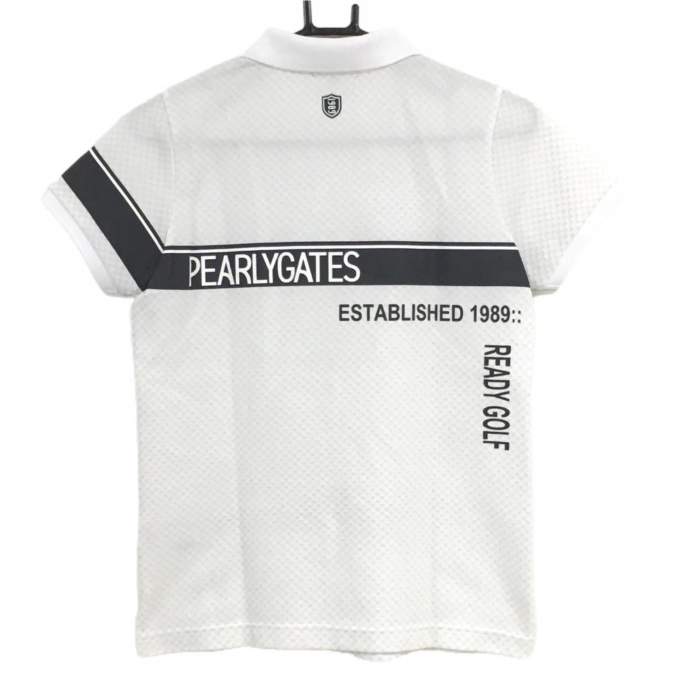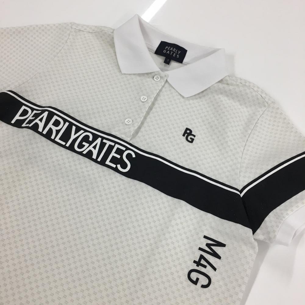 パーリーゲイツ 半袖ポロシャツ 白×黒 織生地ラメ 胸元ライン レディース 1(M) ゴルフウェア 2024年モデル PEARLY GATES