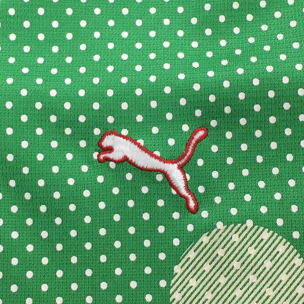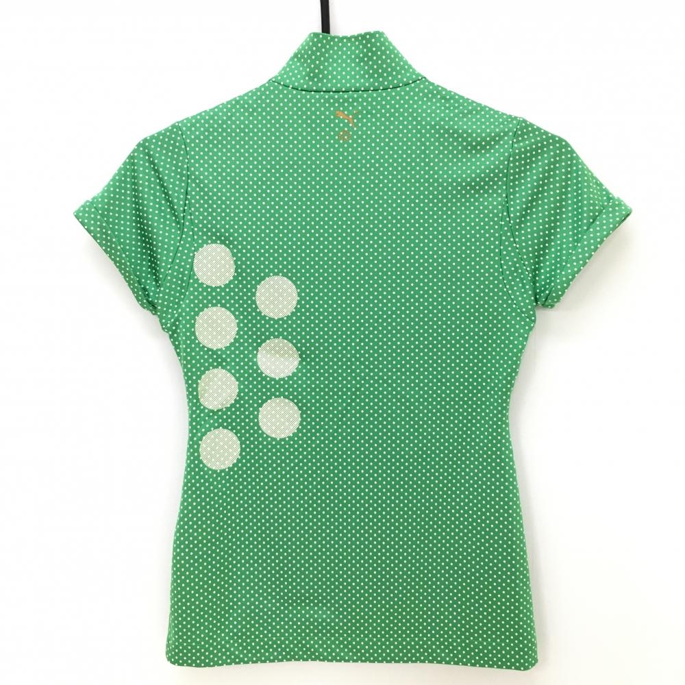 【超美品】プーマ 半袖ポロシャツ グリーン×白 ピンドット ハーフジップ レディース S ゴルフウェア PUMA