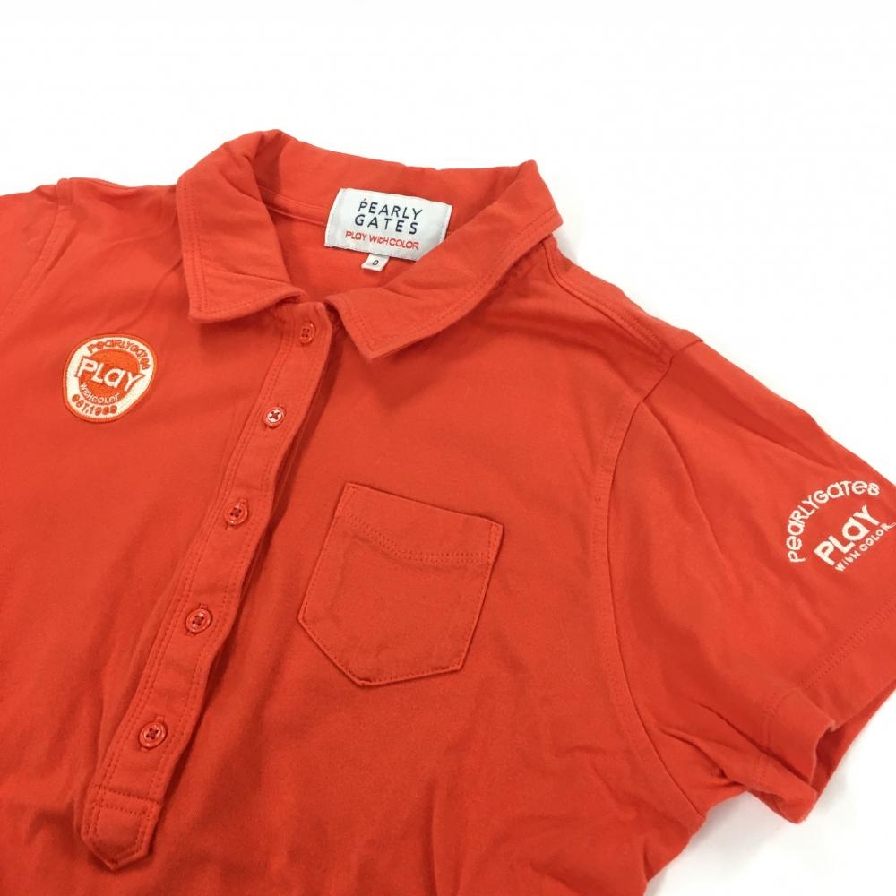 【美品】パーリーゲイツ 半袖ポロシャツ オレンジレッド 胸ポケット コットン100% レディース 0(S) ゴルフウェア PEARLY GATES