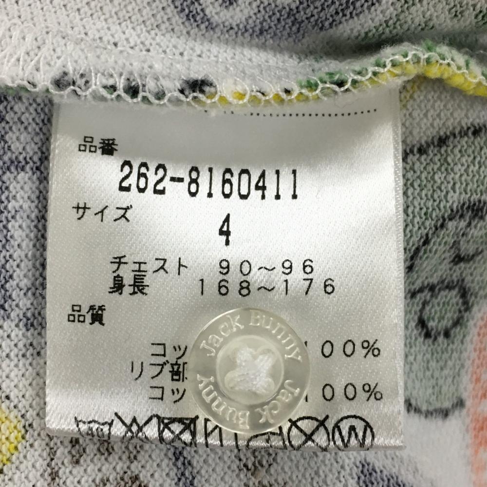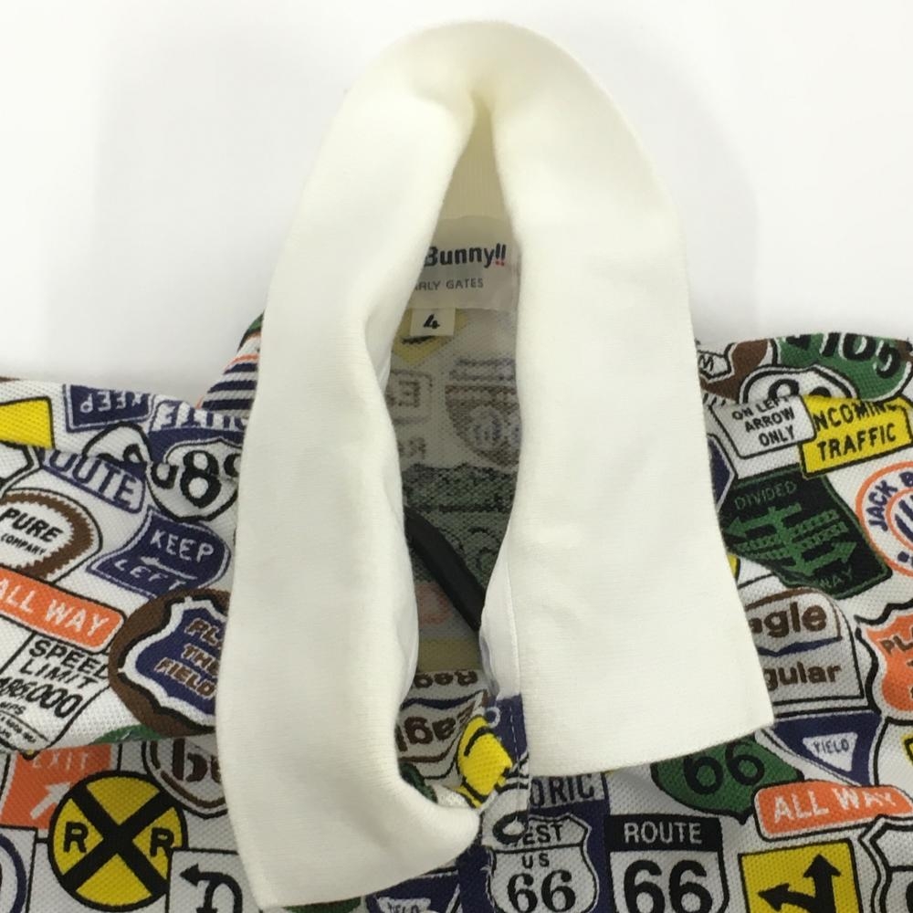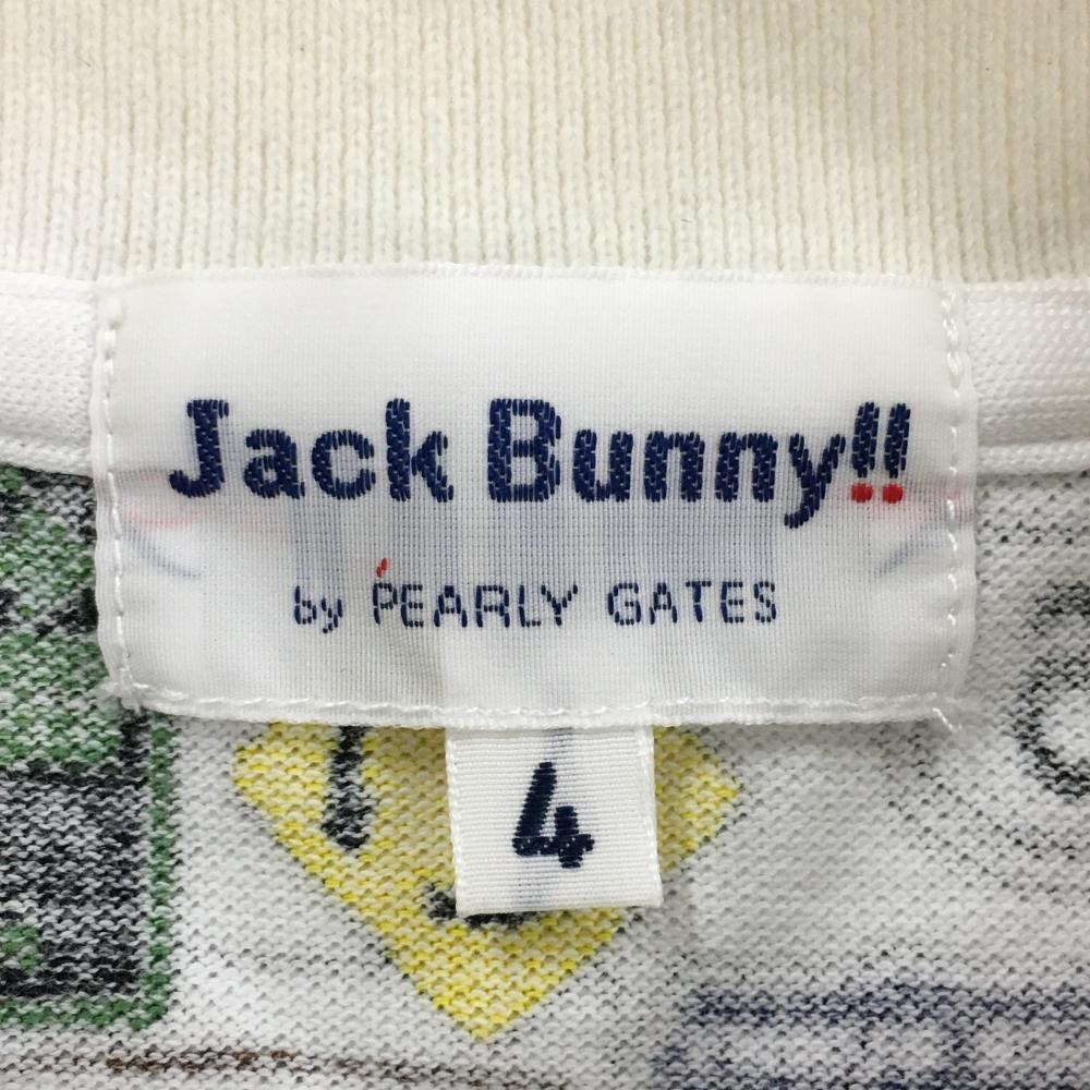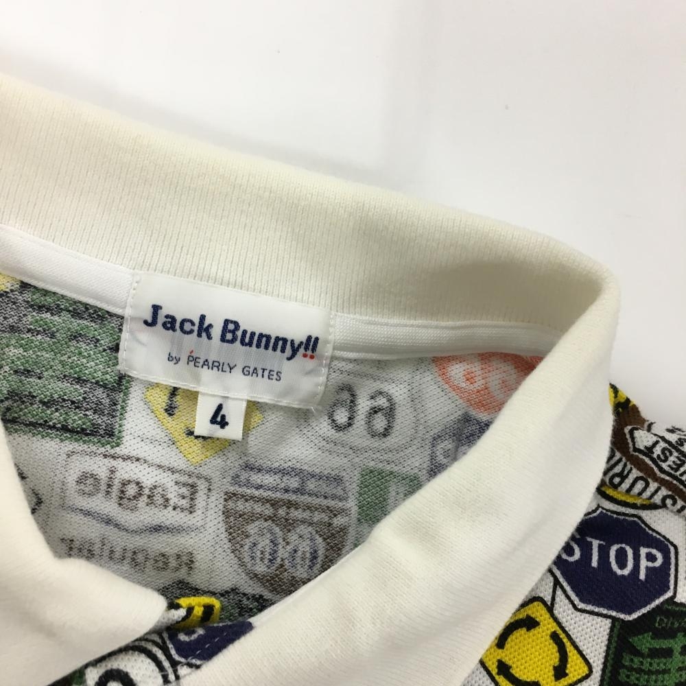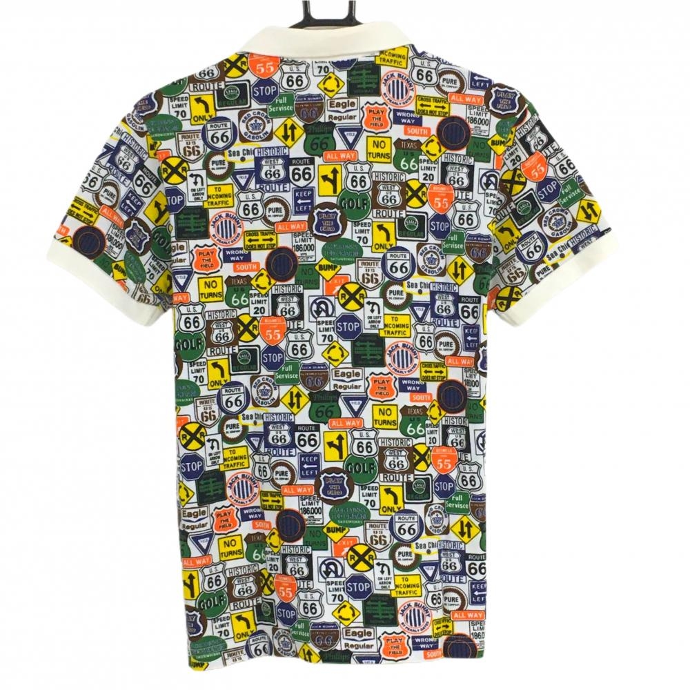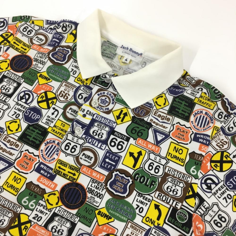 【美品】ジャックバニー 半袖ポロシャツ 白×マルチカラー 標識総柄 メンズ 4(M) ゴルフウェア Jack Bunny
