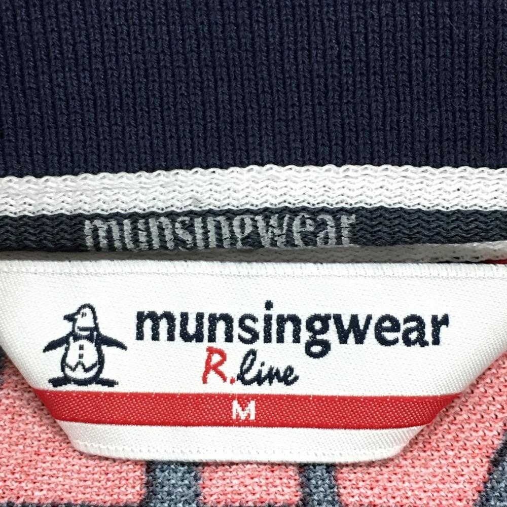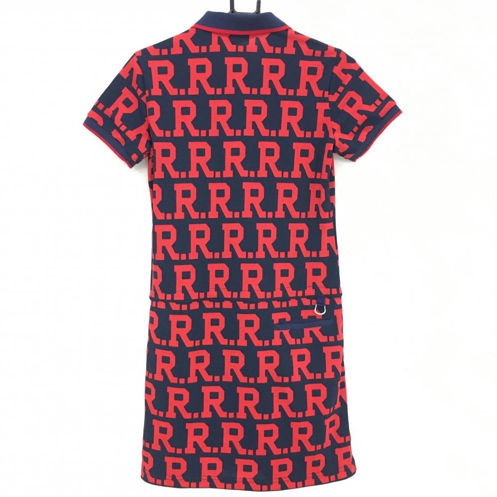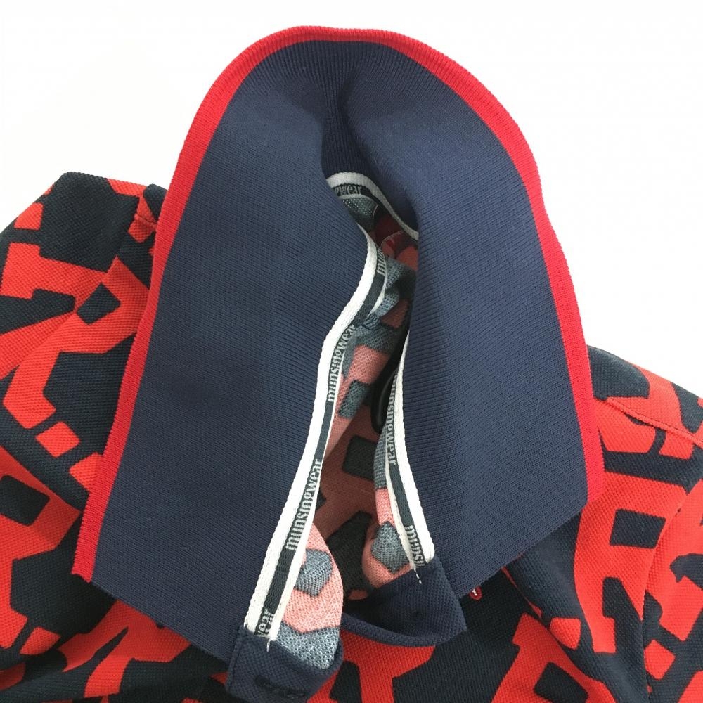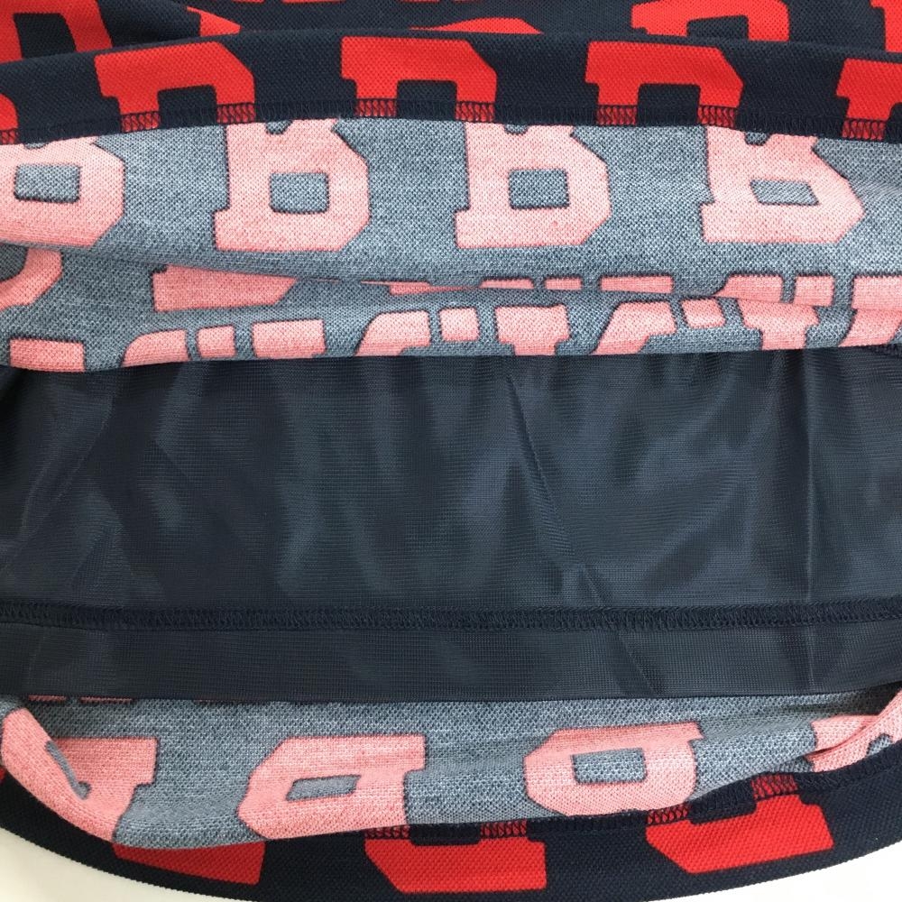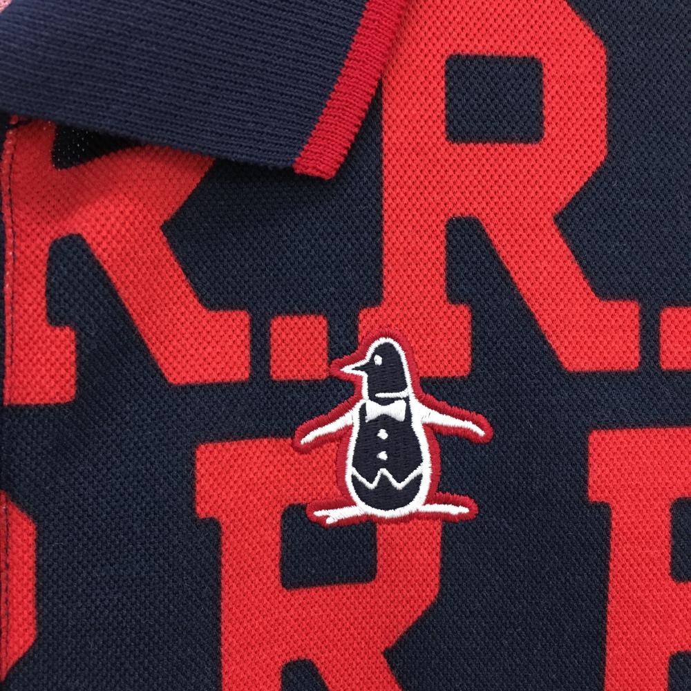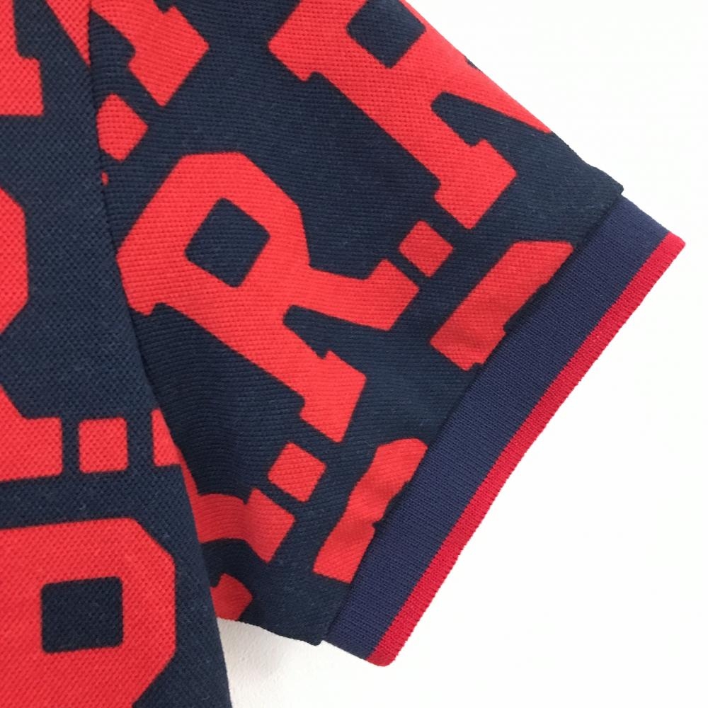 【美品】マンシングウェア 半袖ポロワンピース レッド×ネイビー 英字総柄 ロゴ刺しゅう レディース M ゴルフウェア Munsingwear