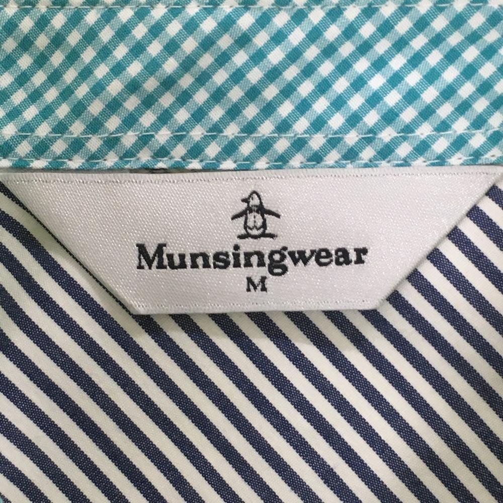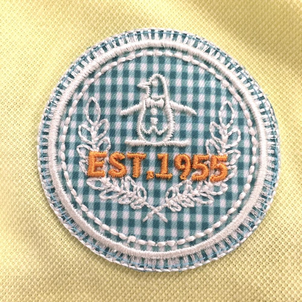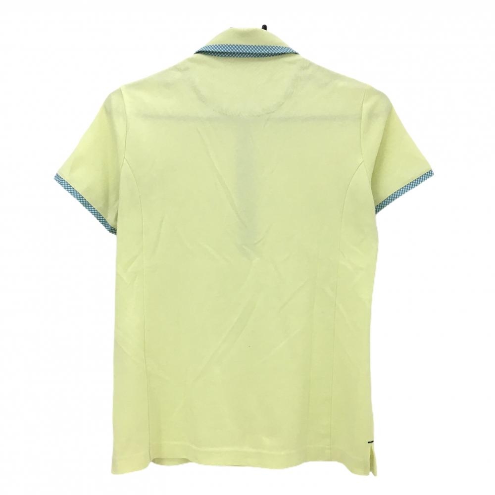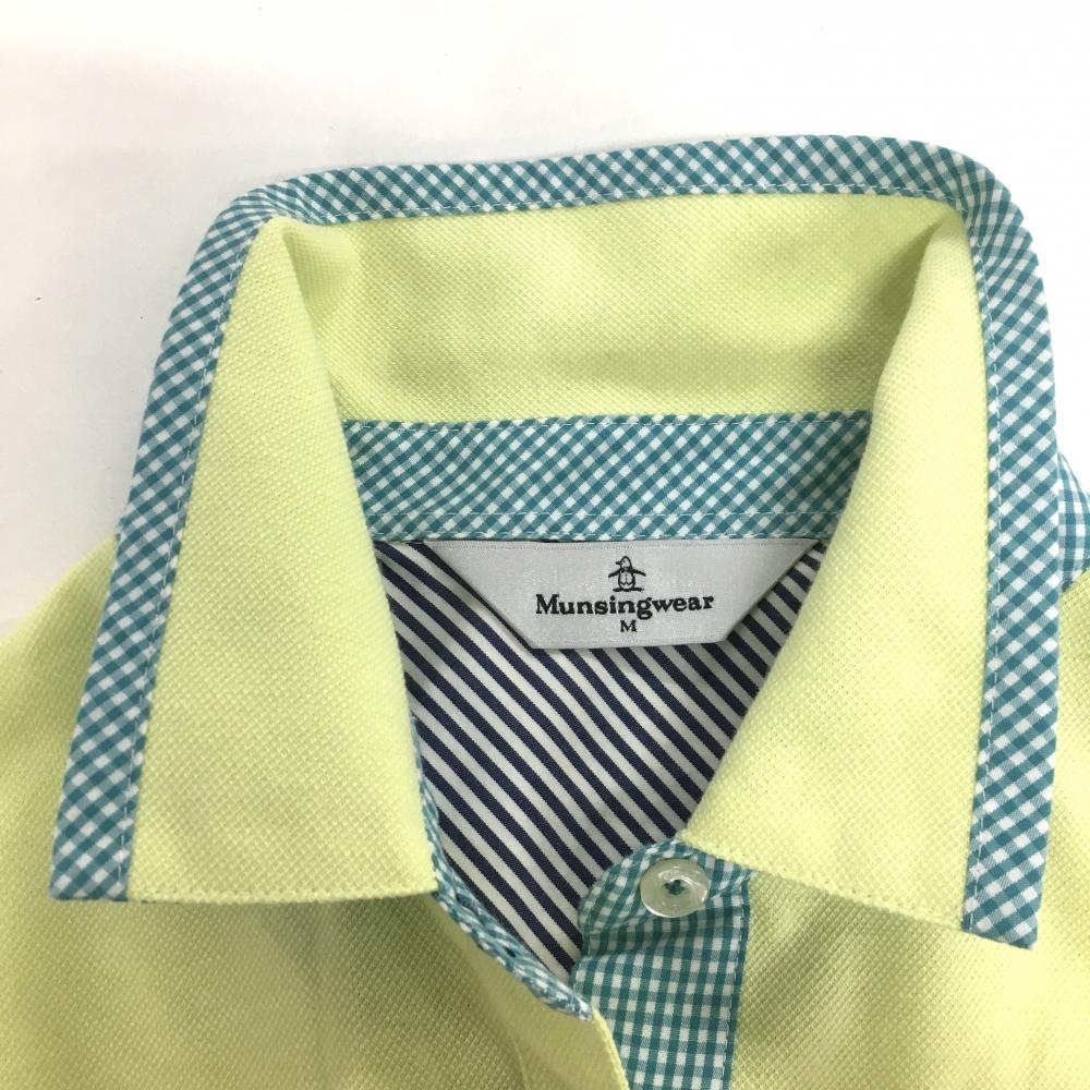 マンシングウェア 半袖ポロシャツ ライムイエロー×ブルー 一部チェック柄 ロゴワッペン レディース M ゴルフウェア Munsingwear