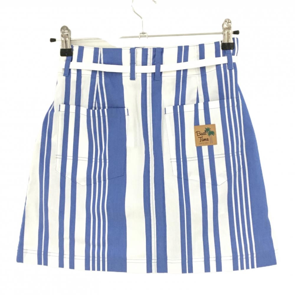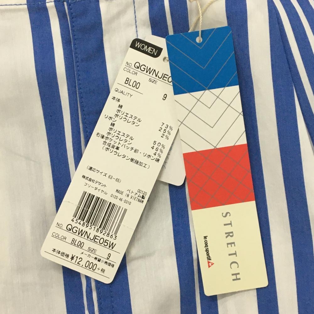 【新品】ルコック スカート 白×ブルー ストライプ ウエストリボン レディース 9 ゴルフウェア le coq sportif