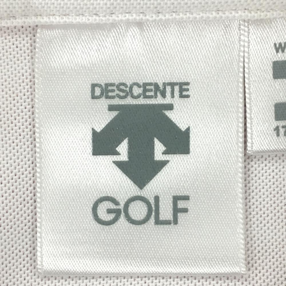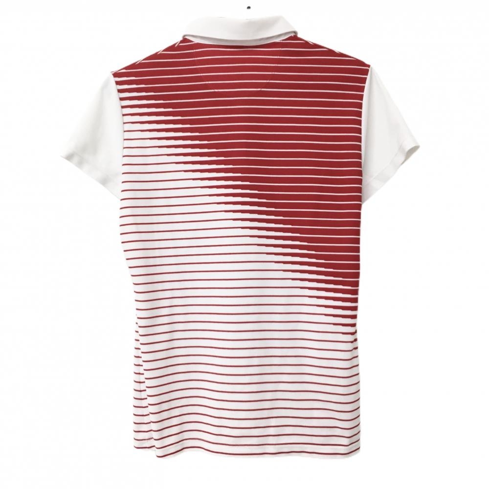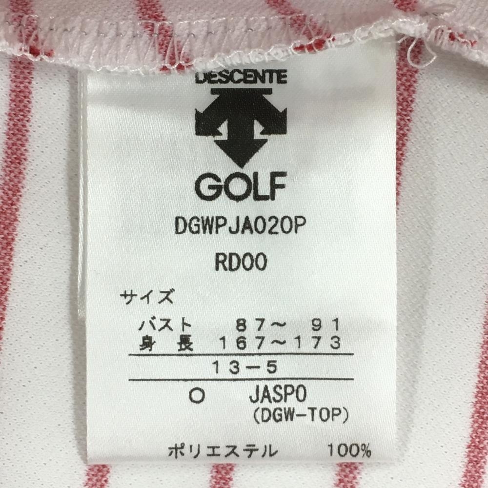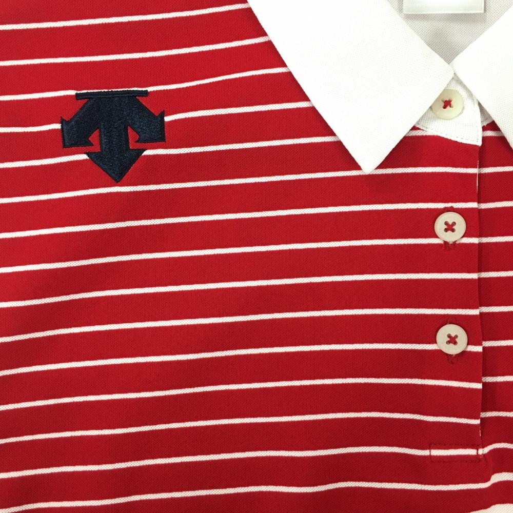 【超美品】デサントゴルフ 半袖ポロシャツ 白×レッド 身頃ボーダー ロゴ刺しゅう 中田英寿 レディース O(XL) ゴルフウェア DESCENTE
