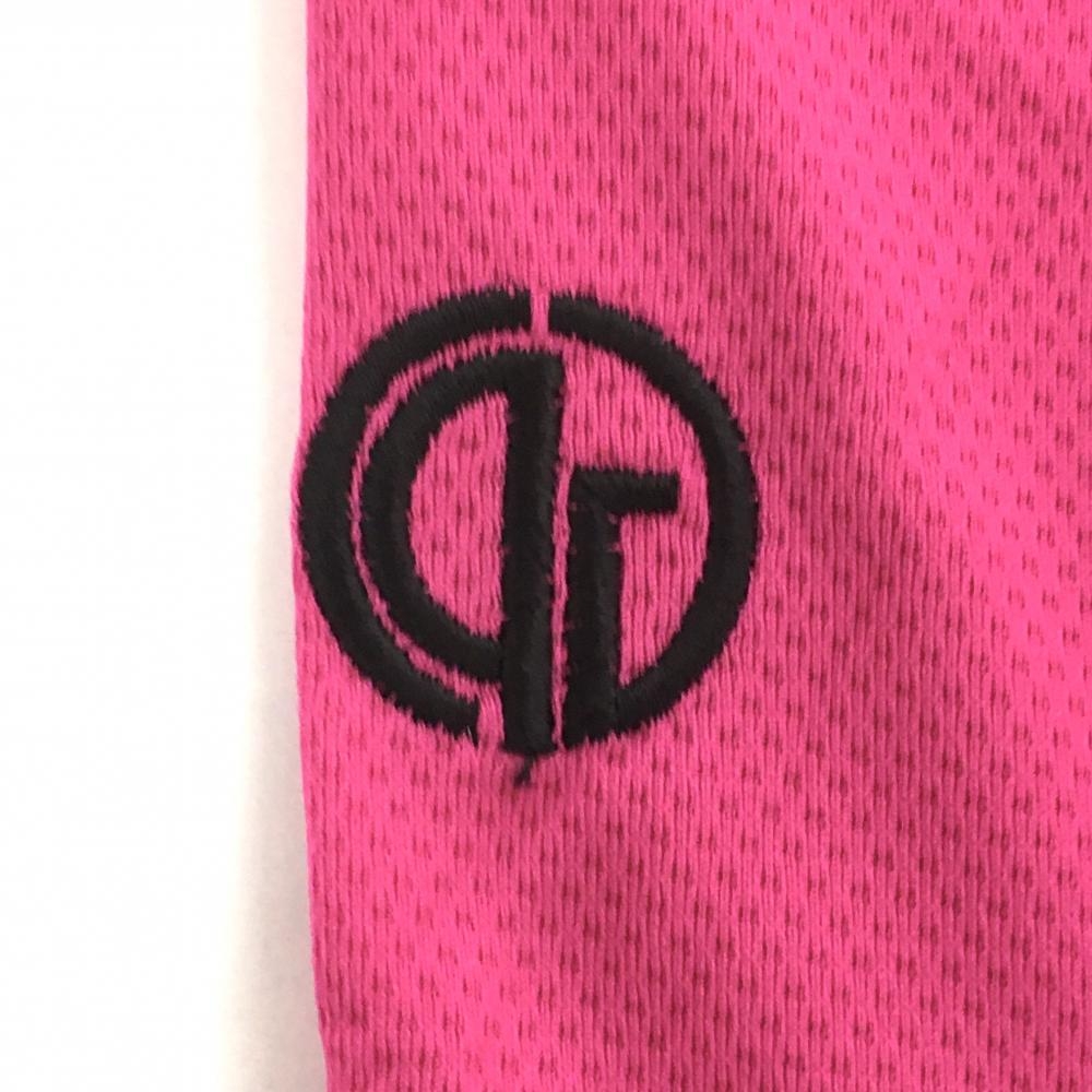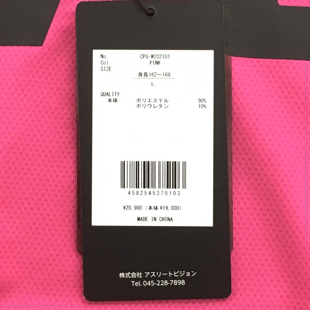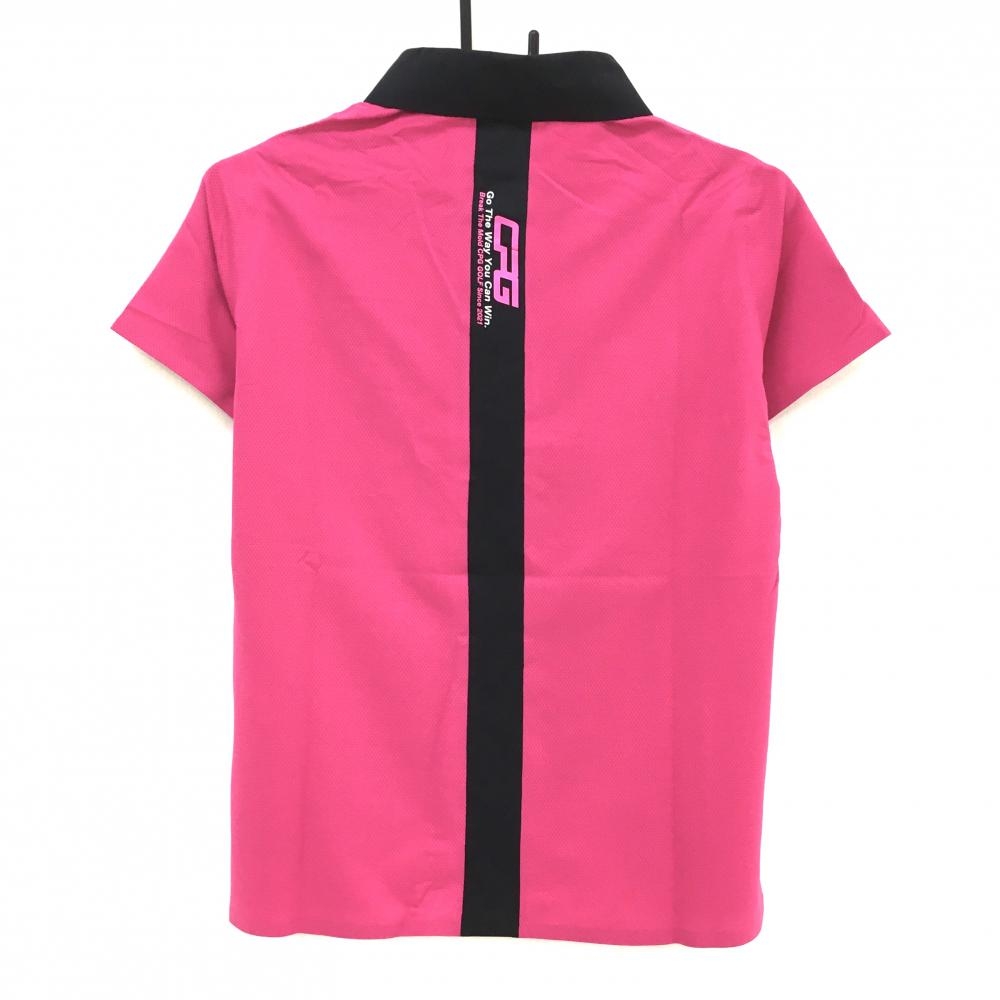 【新品】シーピージー 半袖ポロシャツ ピンク×黒 フロントロゴ ストレッチ レディース L ゴルフウェア CPG