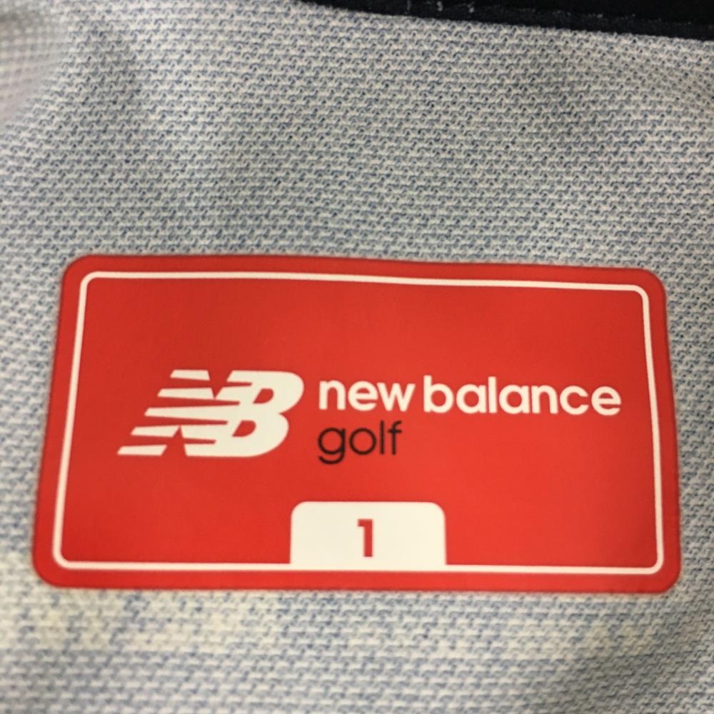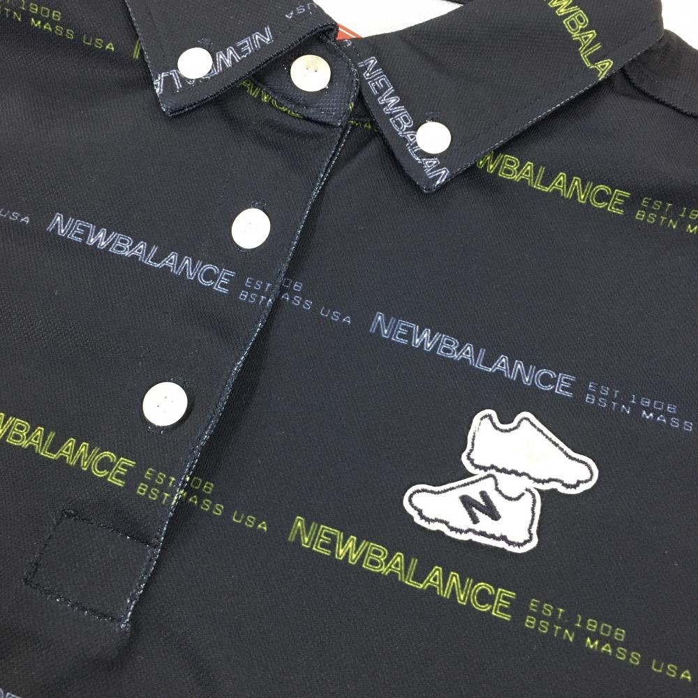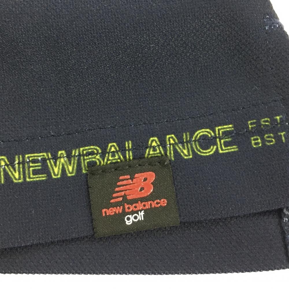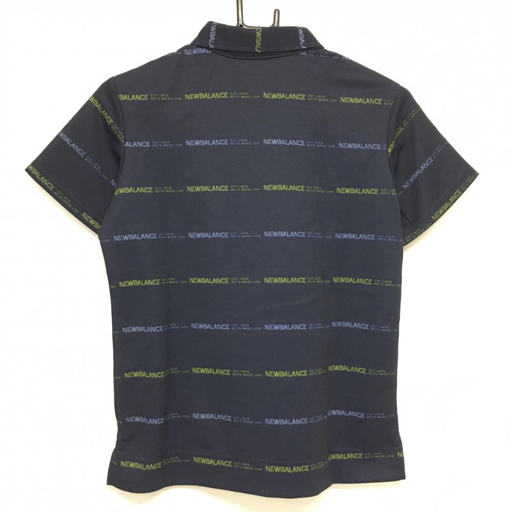 【美品】ニューバランスゴルフ 半袖ポロシャツ ネイビー×ライトグリーン ロゴボーダー レディース 1(M) ゴルフウェア New Balance