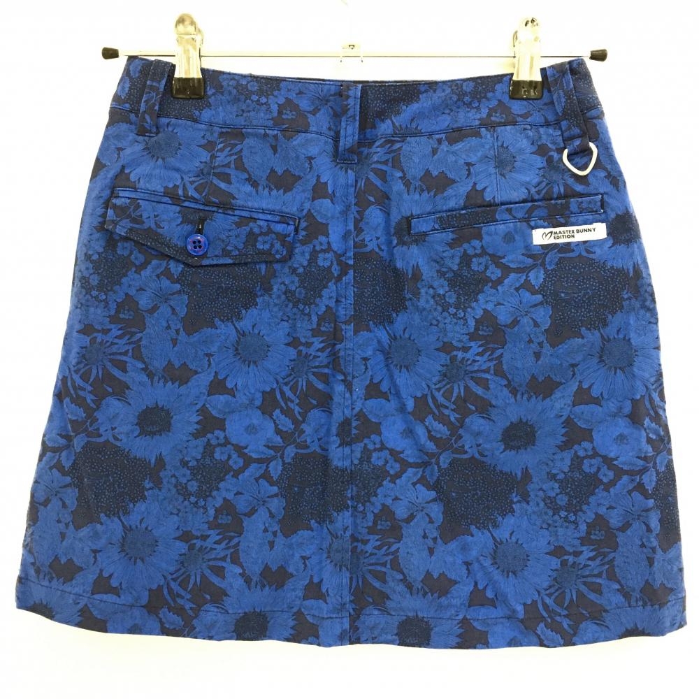 【美品】マスターバニー スカート ブルー×ネイビー 花柄 日本製 レディース 00(XS) ゴルフウェア MASTER BUNNY EDITION
