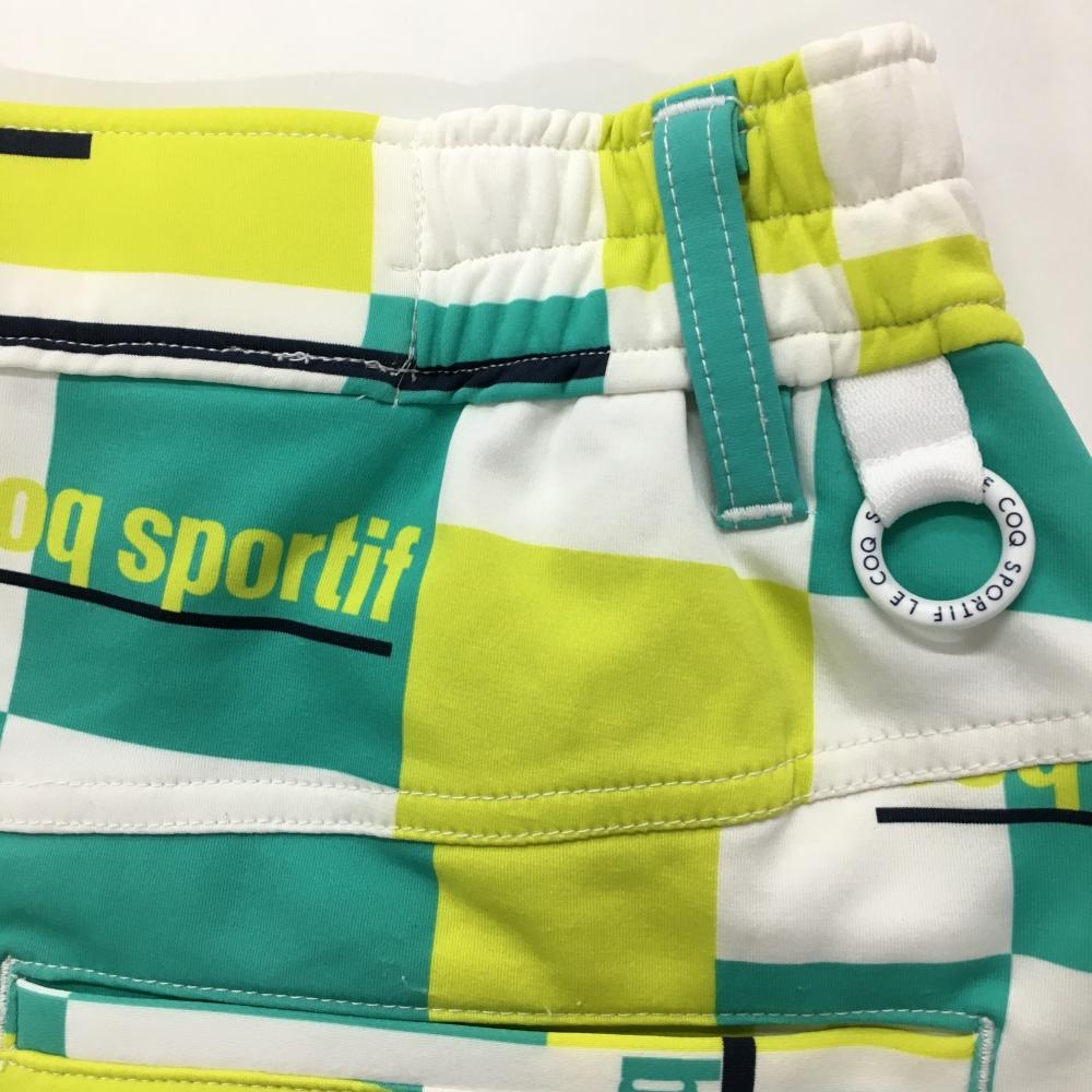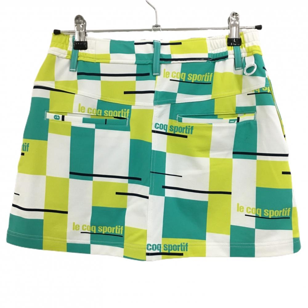 ルコックゴルフ スカート 白×ライトグリーン 総柄 メッシュ裏地 レディース 9 ゴルフウェア le coq sportif