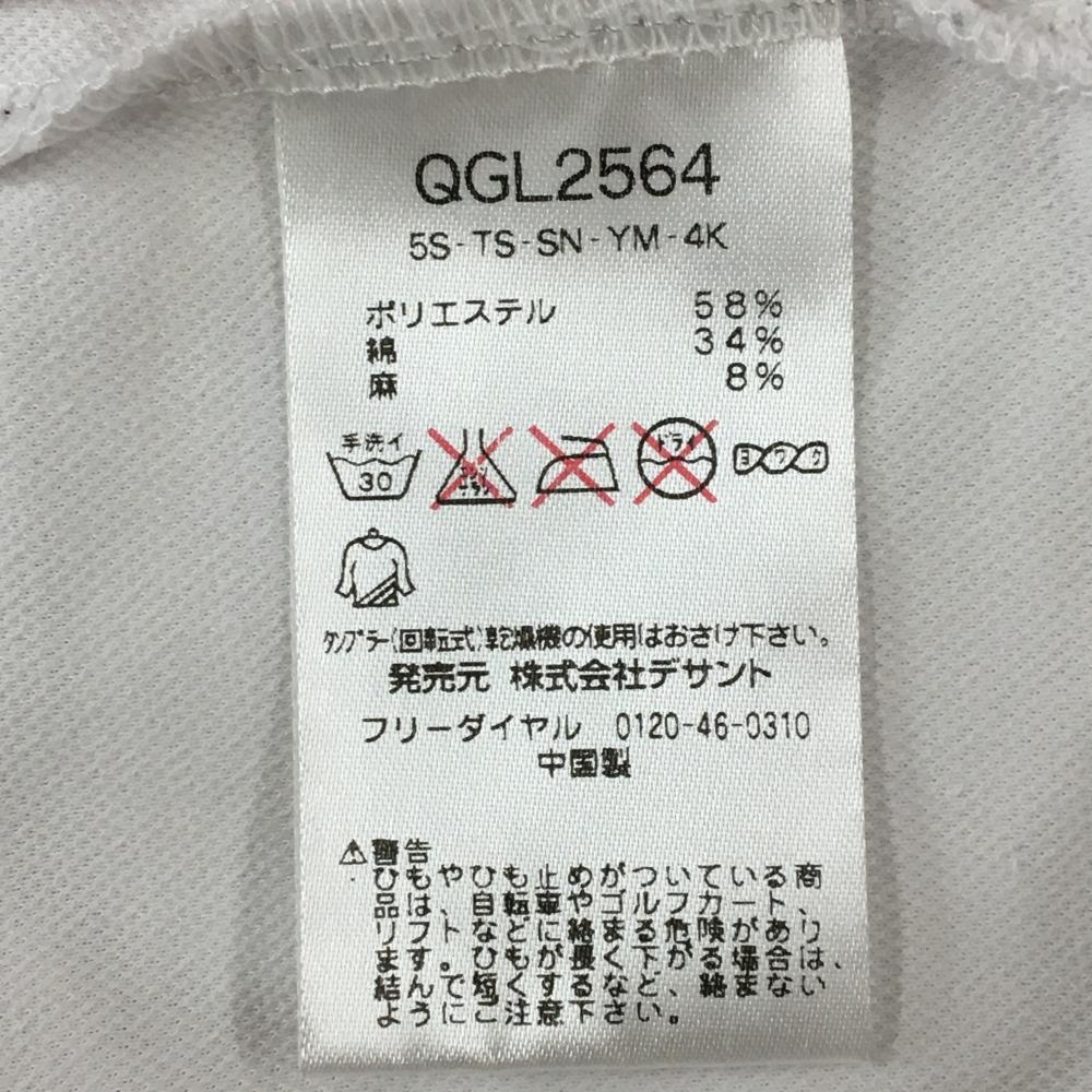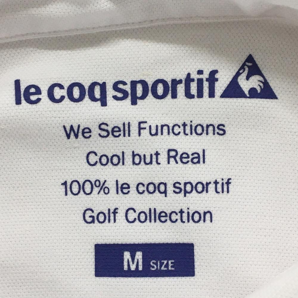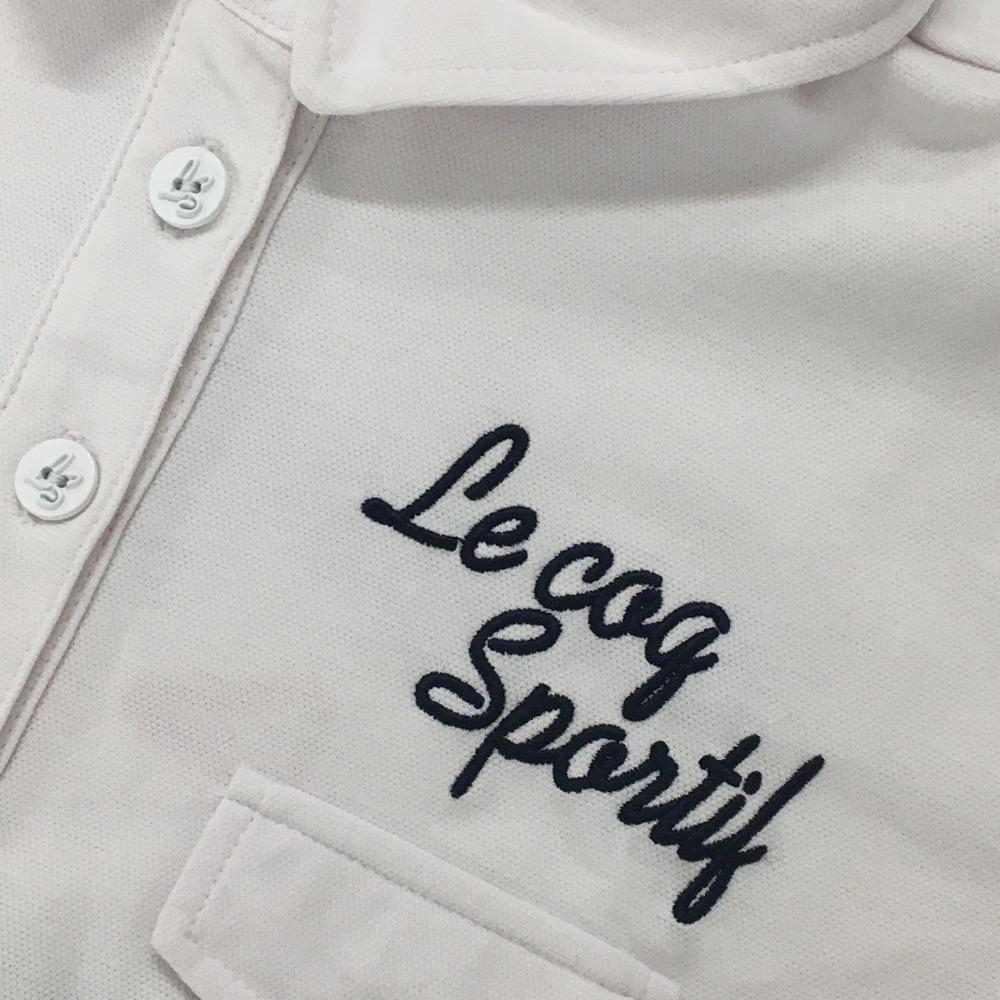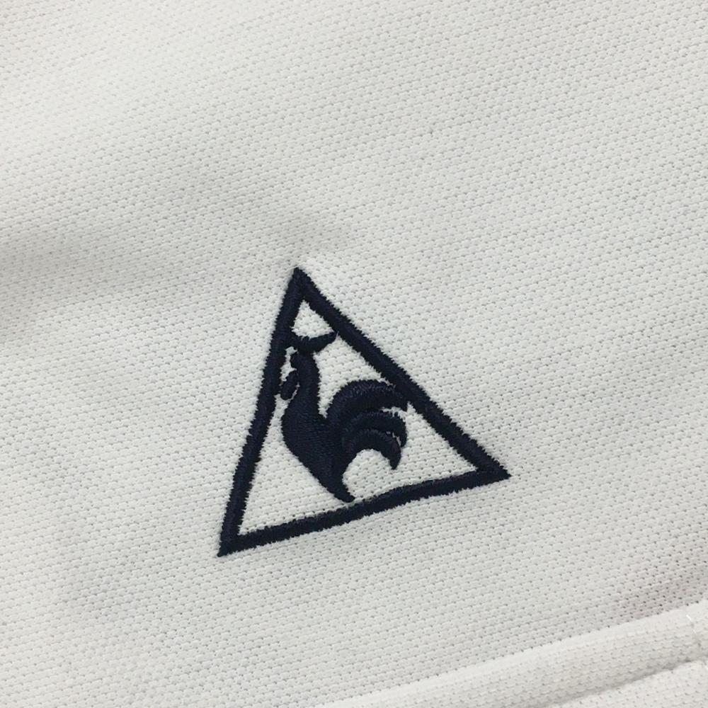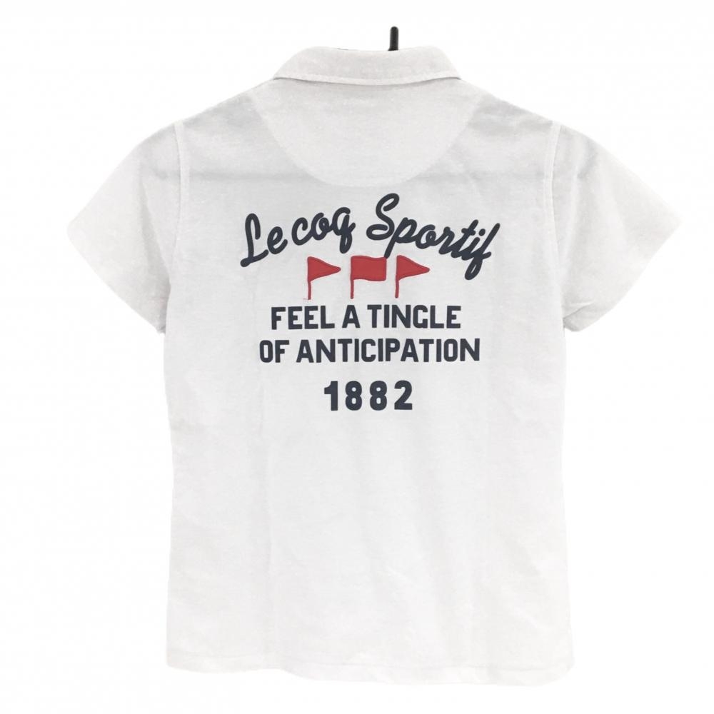【美品】ルコック 半袖ポロシャツ 白×ネイビー 麻混 バックプリント レディース M ゴルフウェア le coq sportif