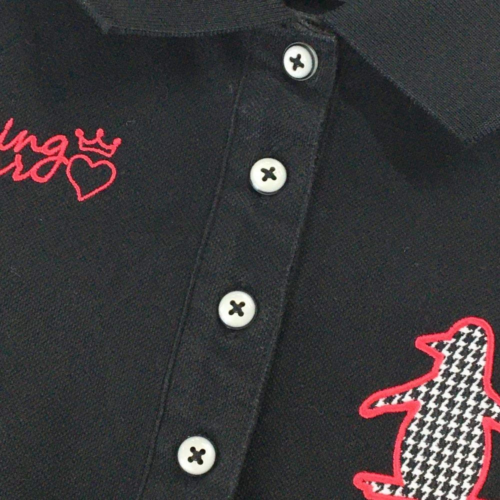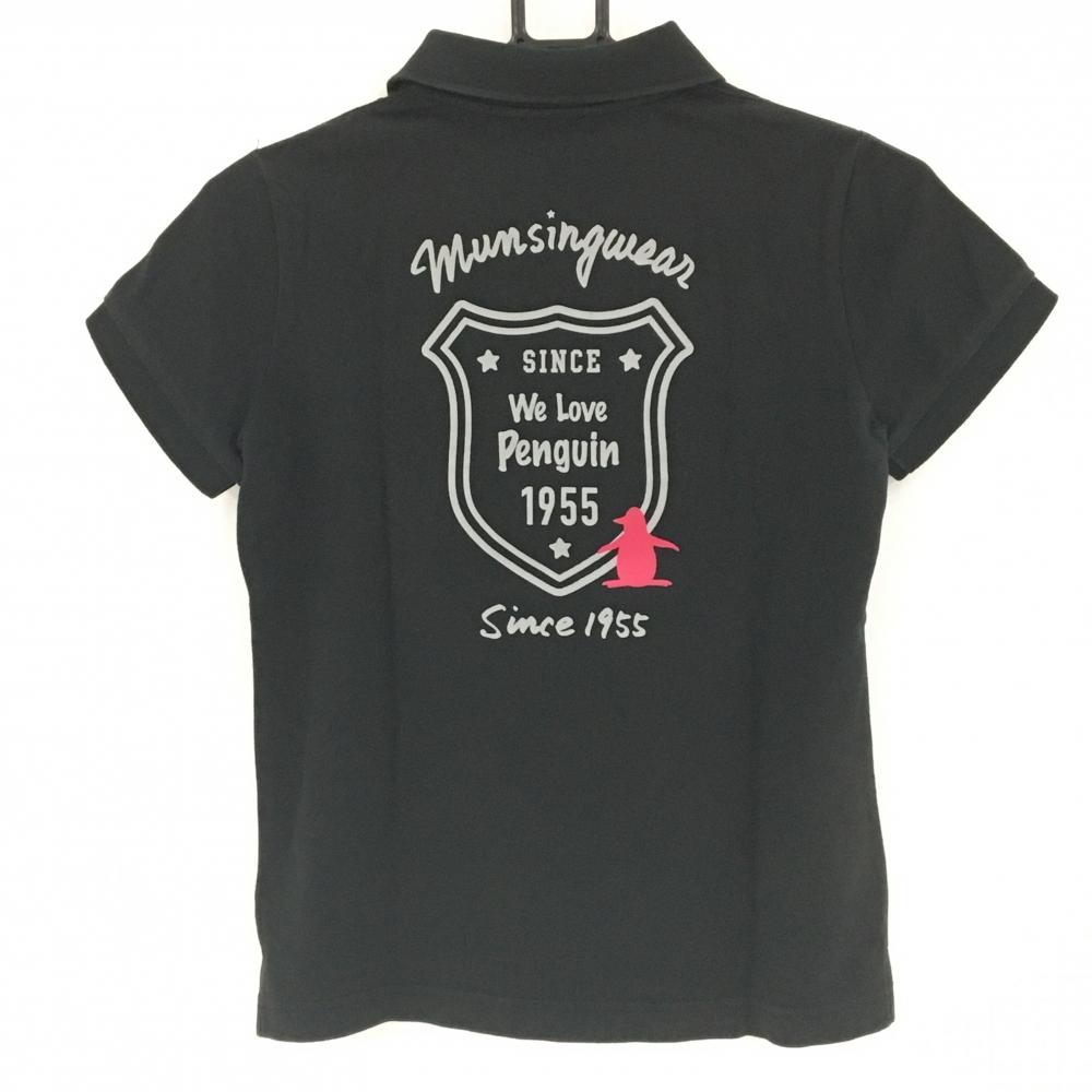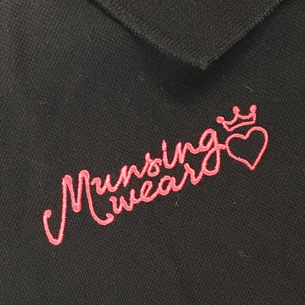 マンシングウェア 半袖ポロシャツ 黒×ピンク 胸元ロゴ レディース M ゴルフウェア Munsingwear