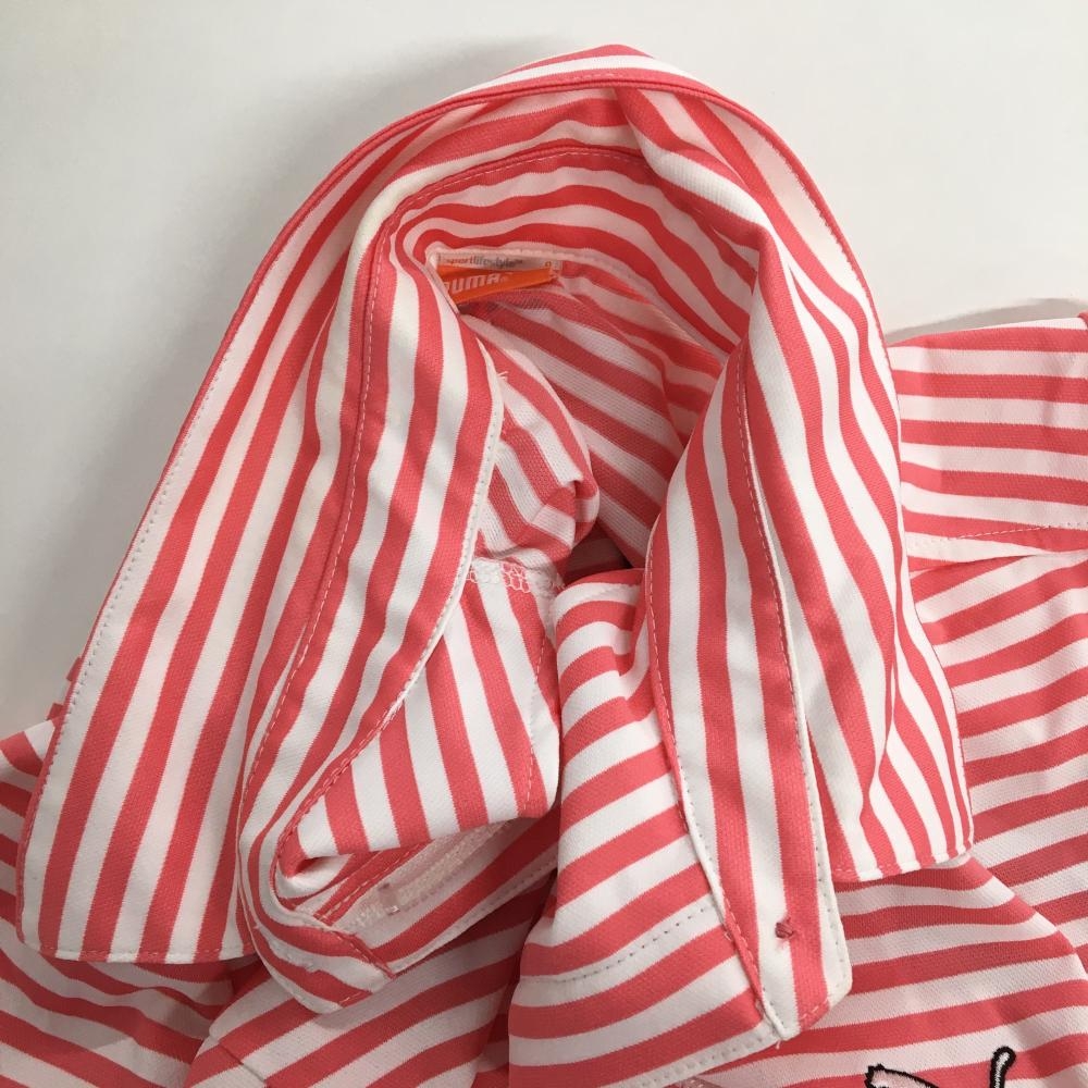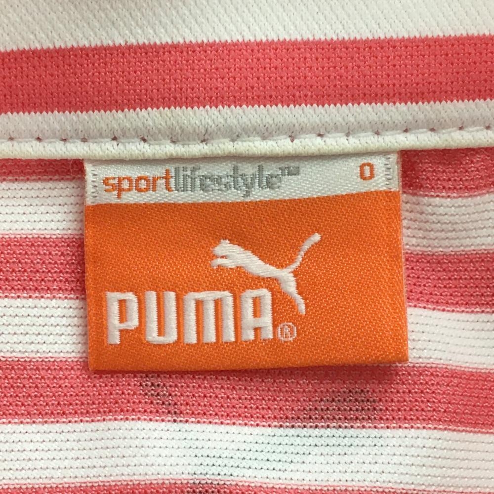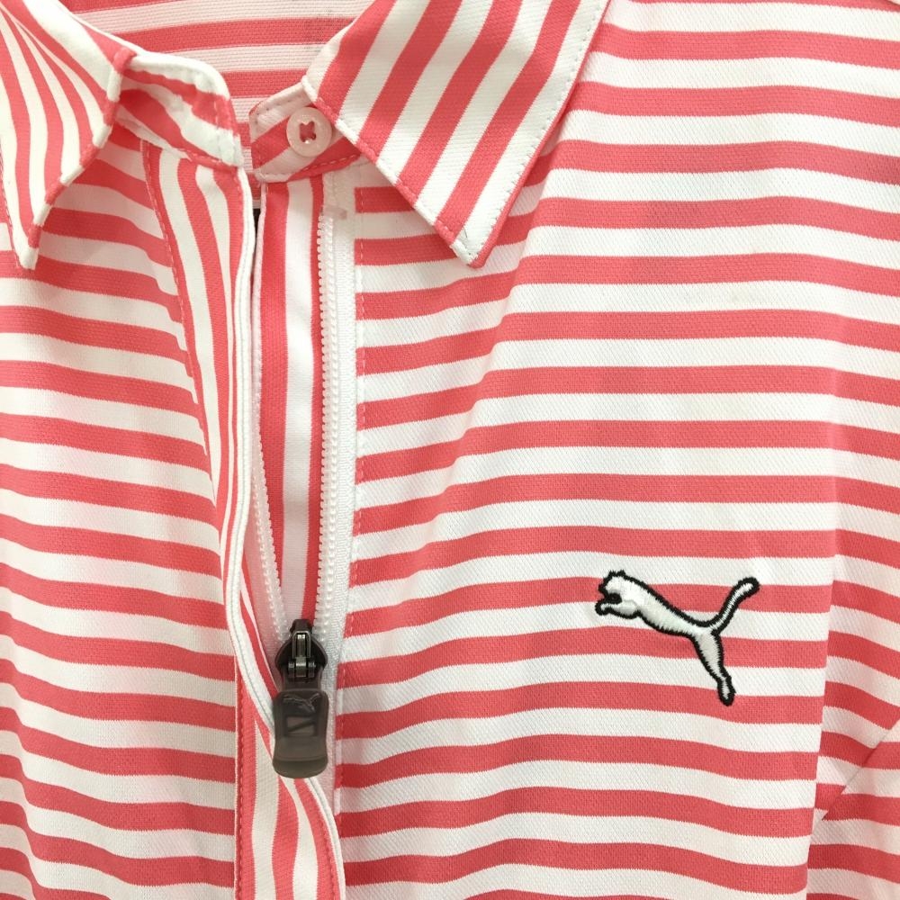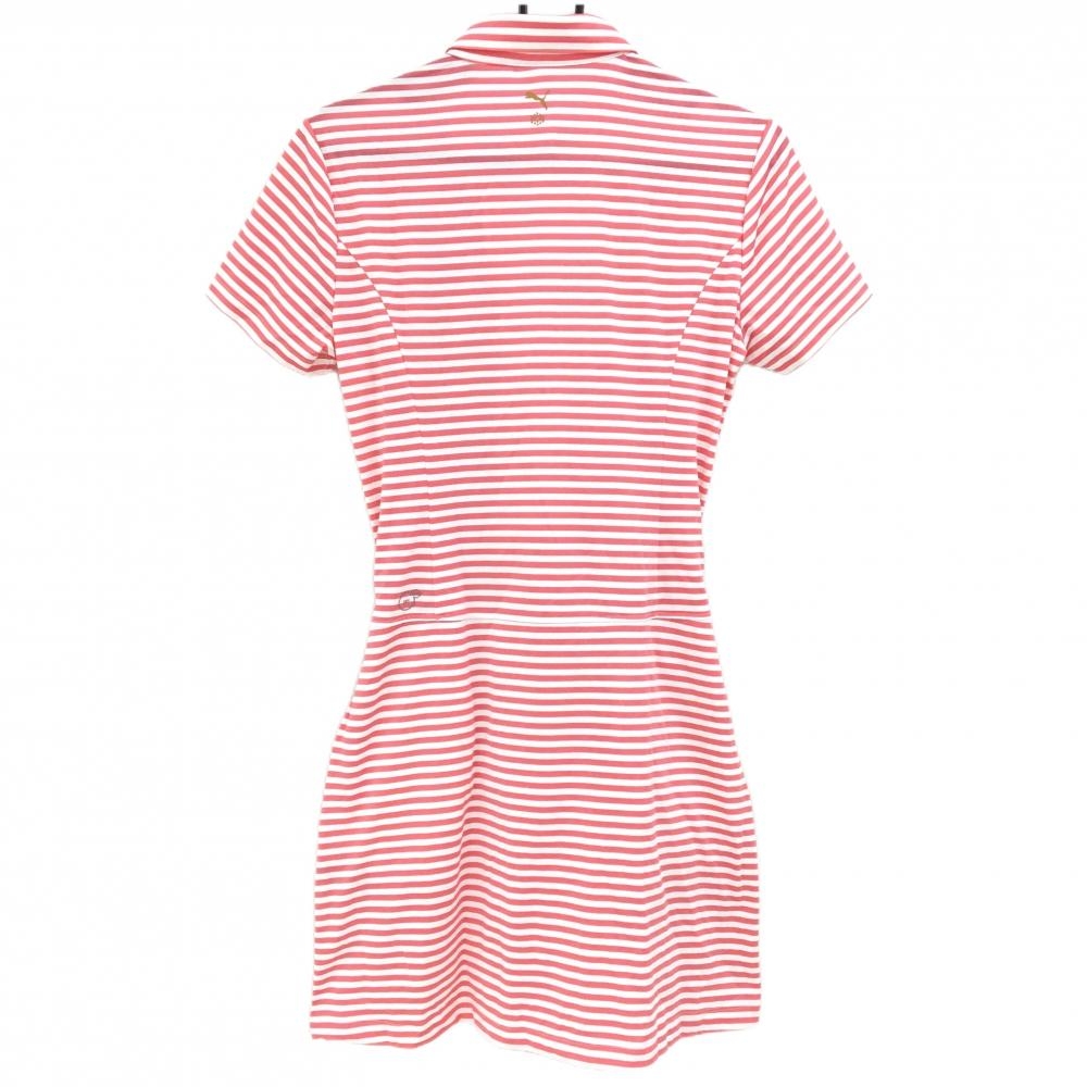 プーマ 半袖ポロワンピース 白×ピンク ボーダー フロントジップ レディース O ゴルフウェア PUMA