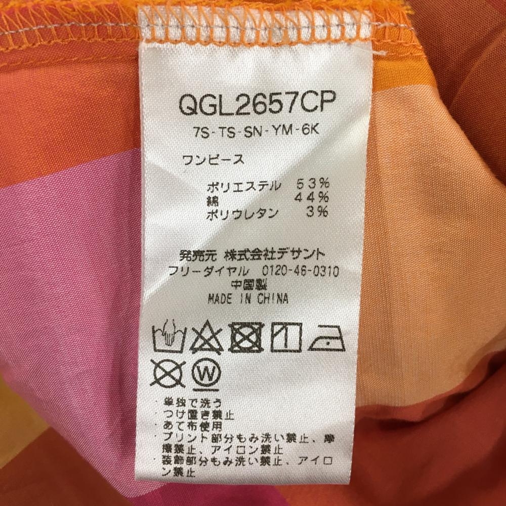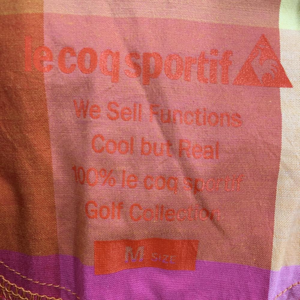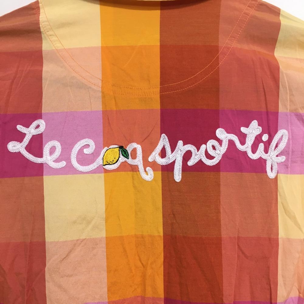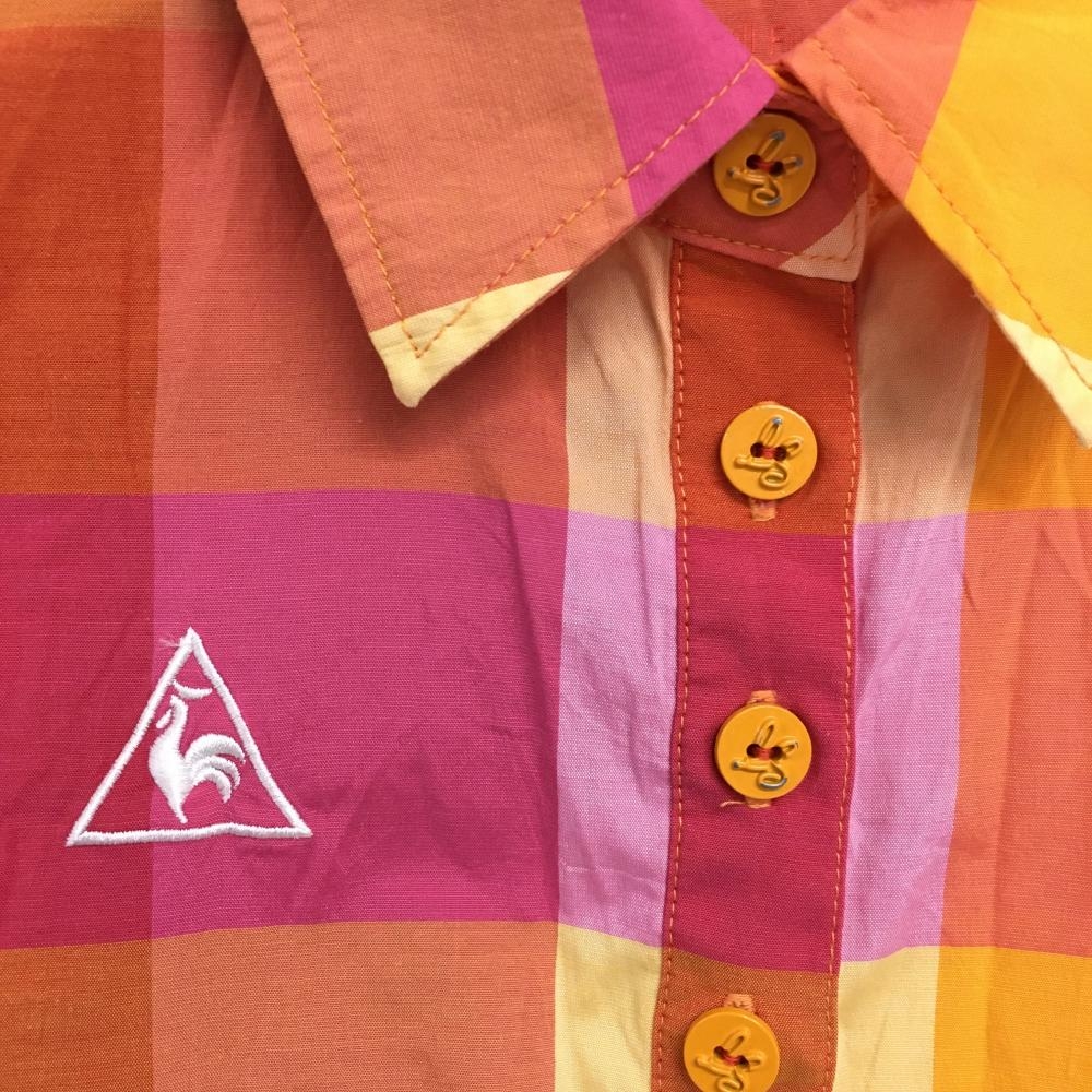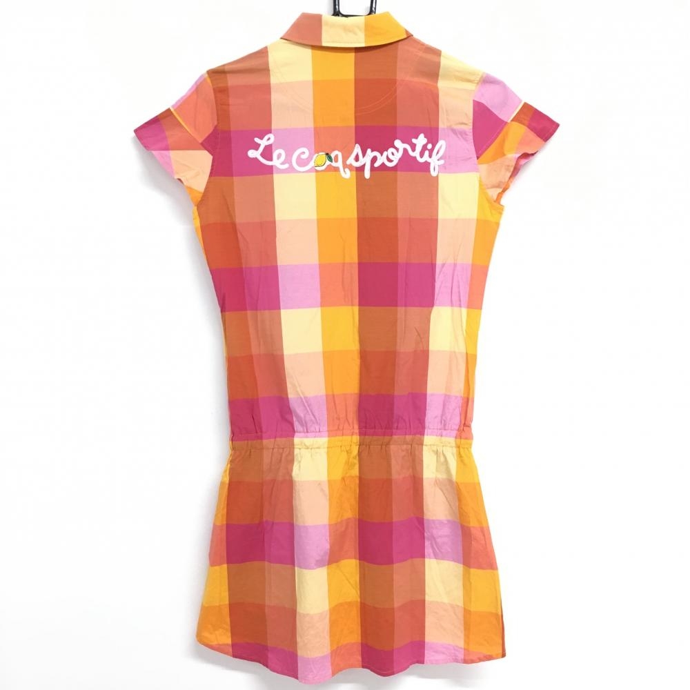 【超美品】ルコックゴルフ 半袖ポロワンピース オレンジ×ピンク チェック レディース M ゴルフウェア le coq sportif