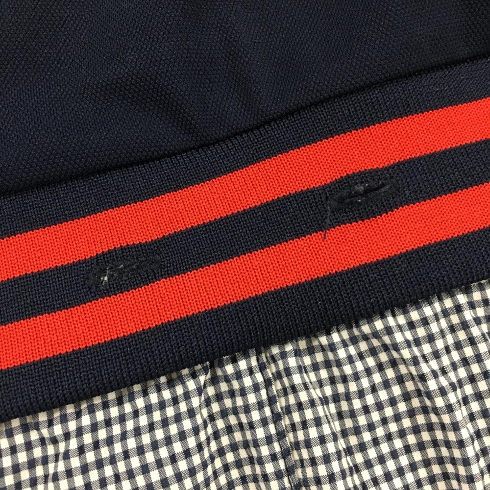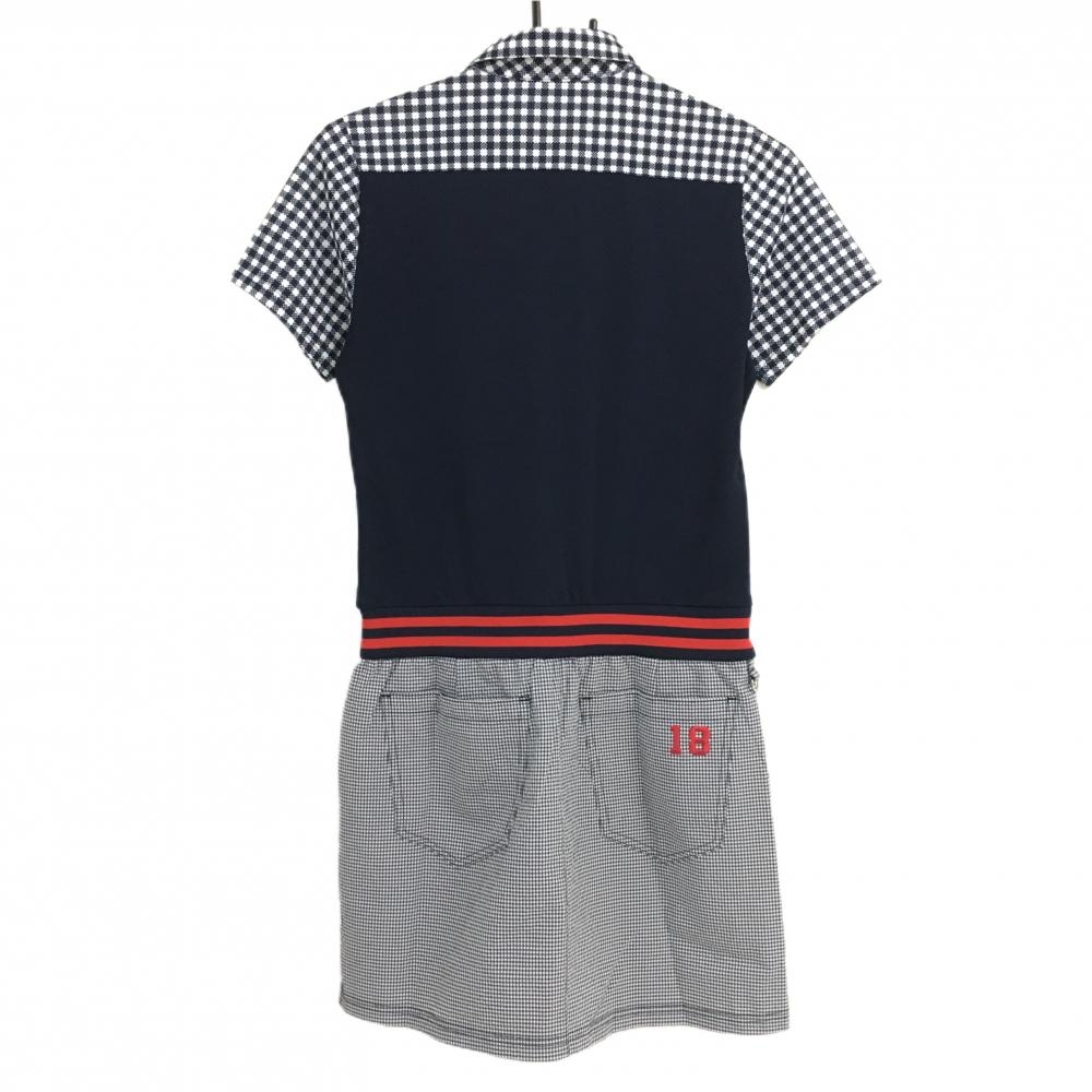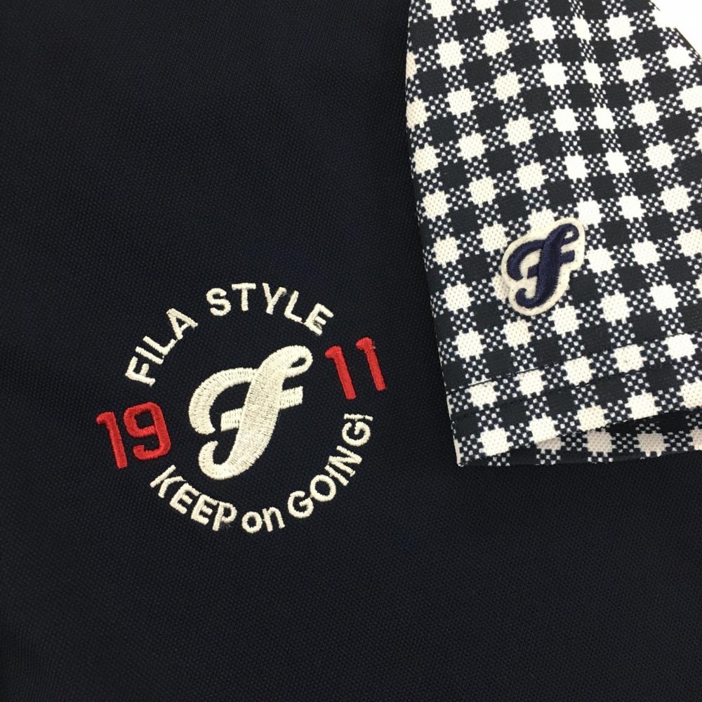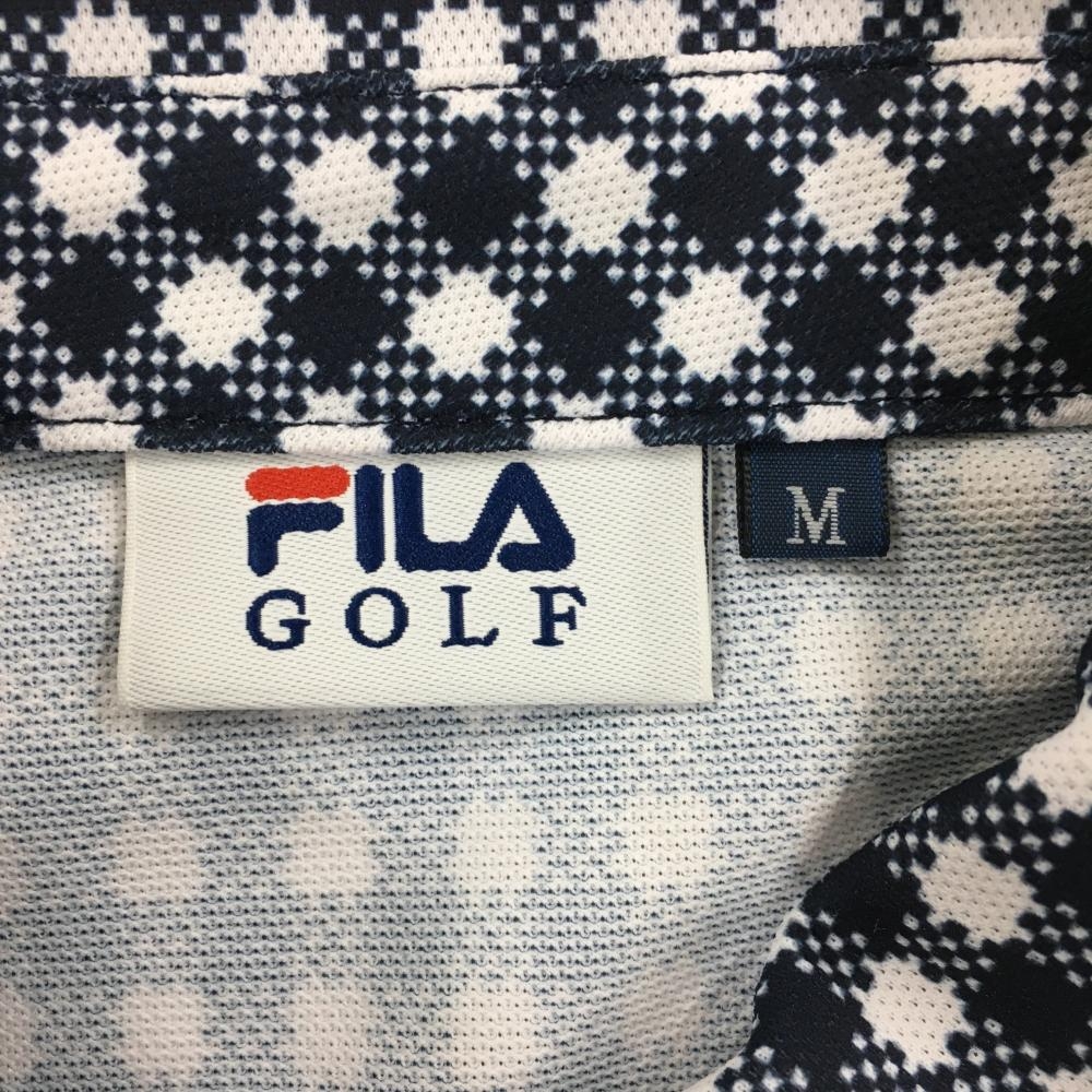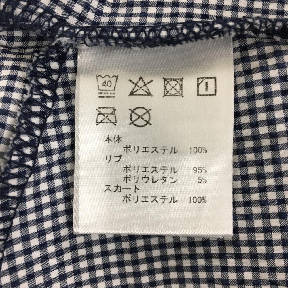 【美品】フィラゴルフ 半袖ポロワンピース ネイビー×白 スカートギンガム・サッカー生地 レディース M ゴルフウェア FILA GOLF