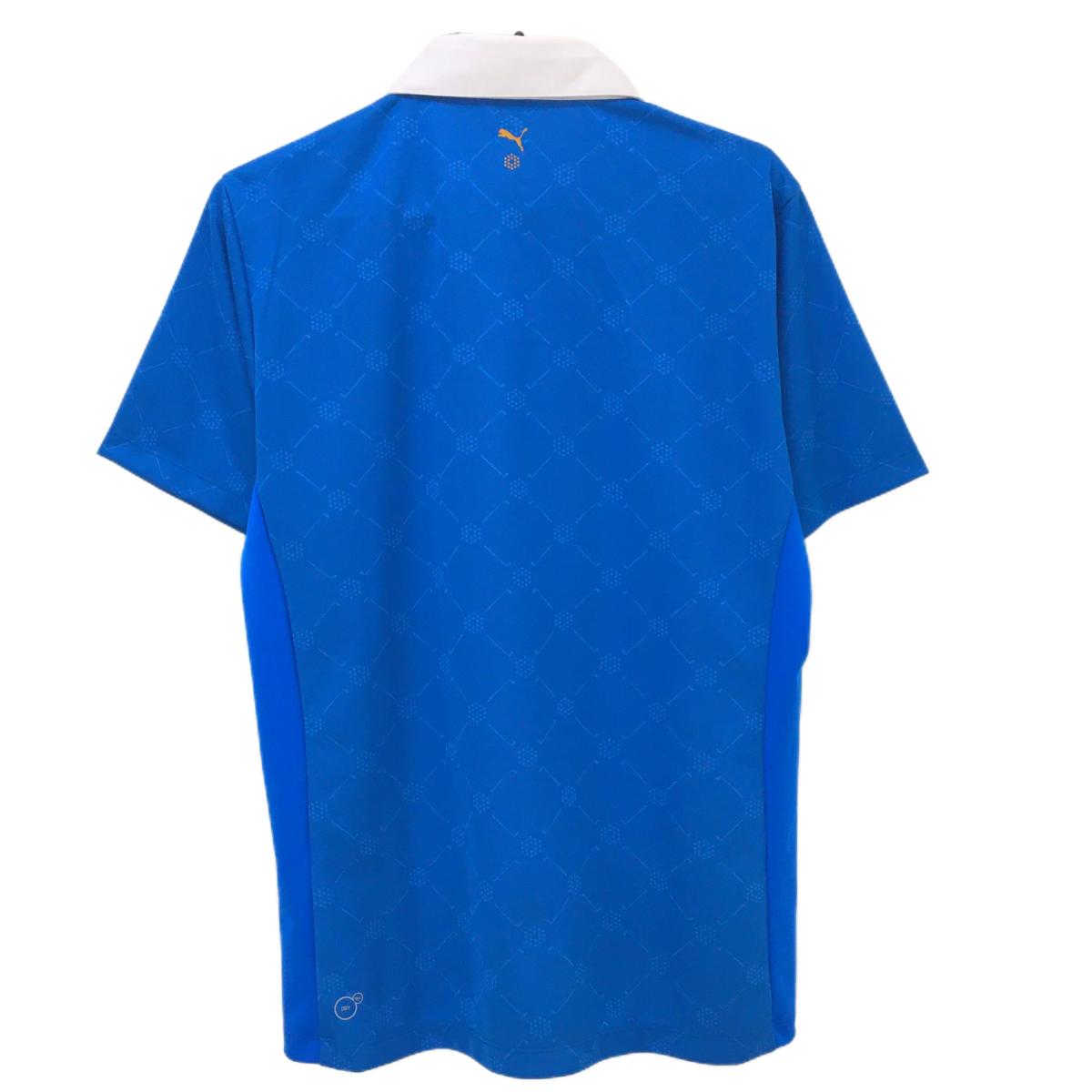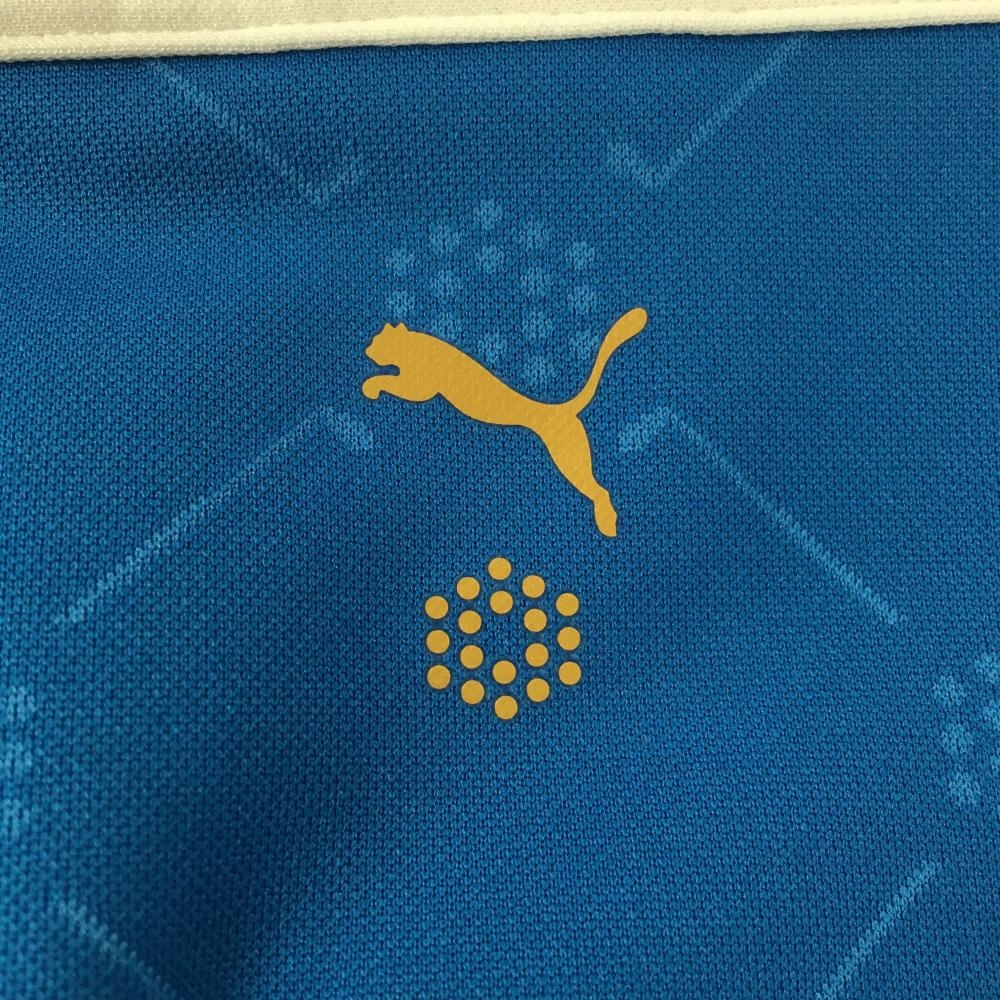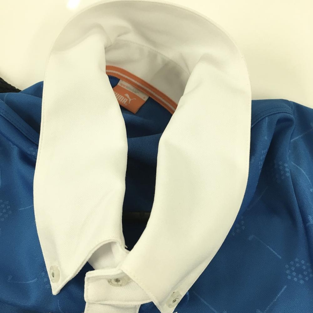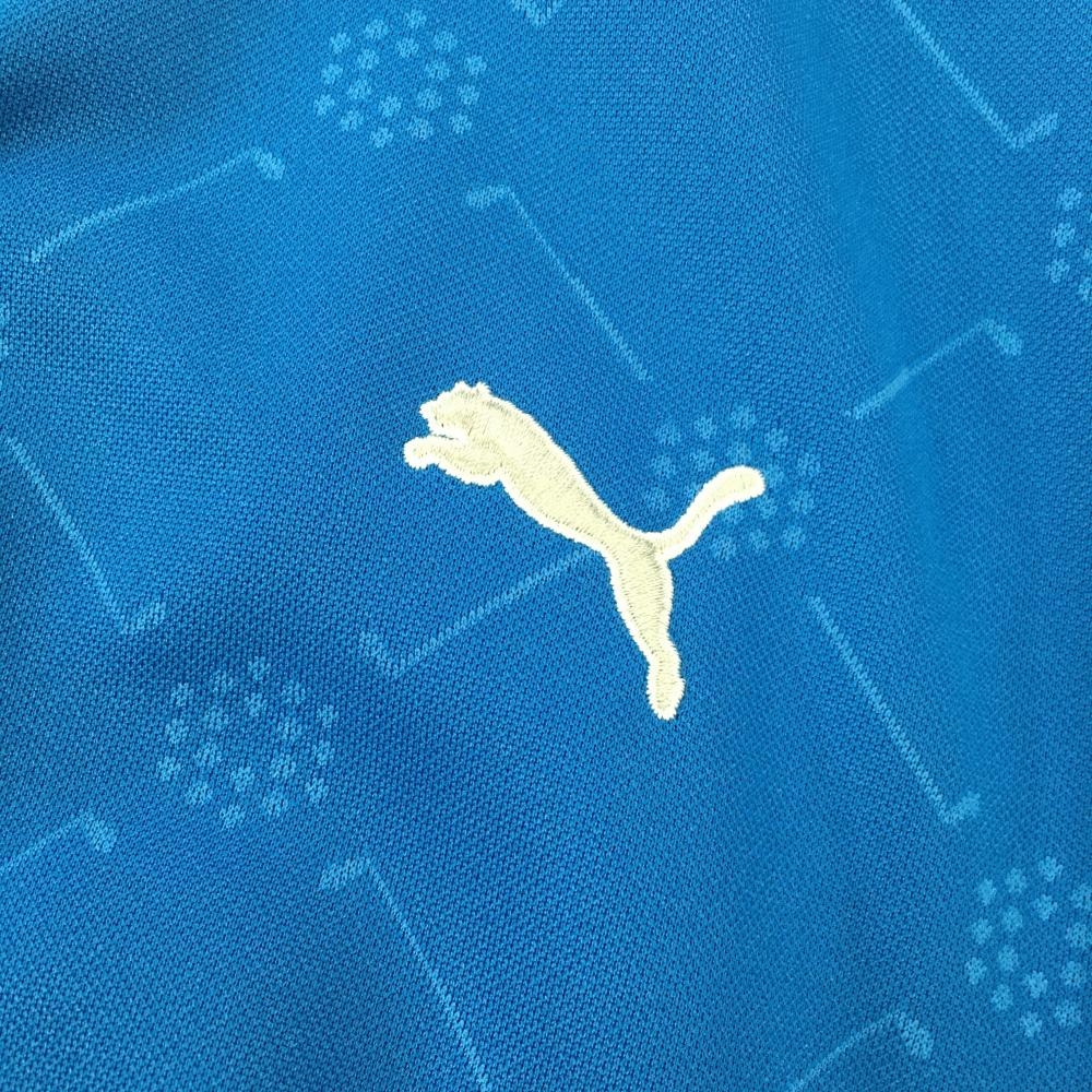 【美品】プーマ 半袖ポロシャツ ブルー 総柄 サイド切替 ボタンダウン メンズ O ゴルフウェア PUMA