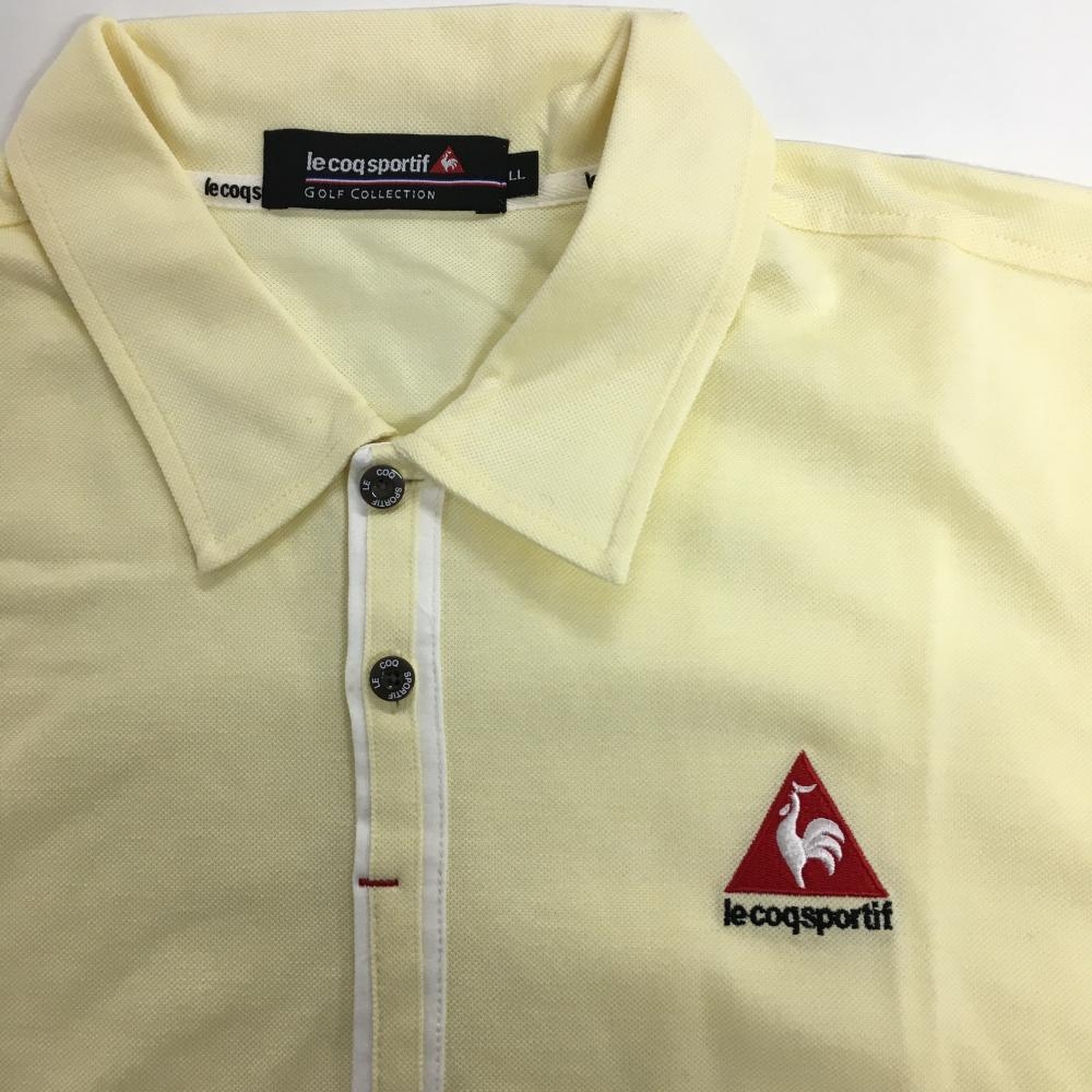 【美品】ルコックゴルフ 半袖ポロシャツ ライトイエロー×レッド 胸元ロゴ刺しゅう メンズ LL ゴルフウェア le coq sportif