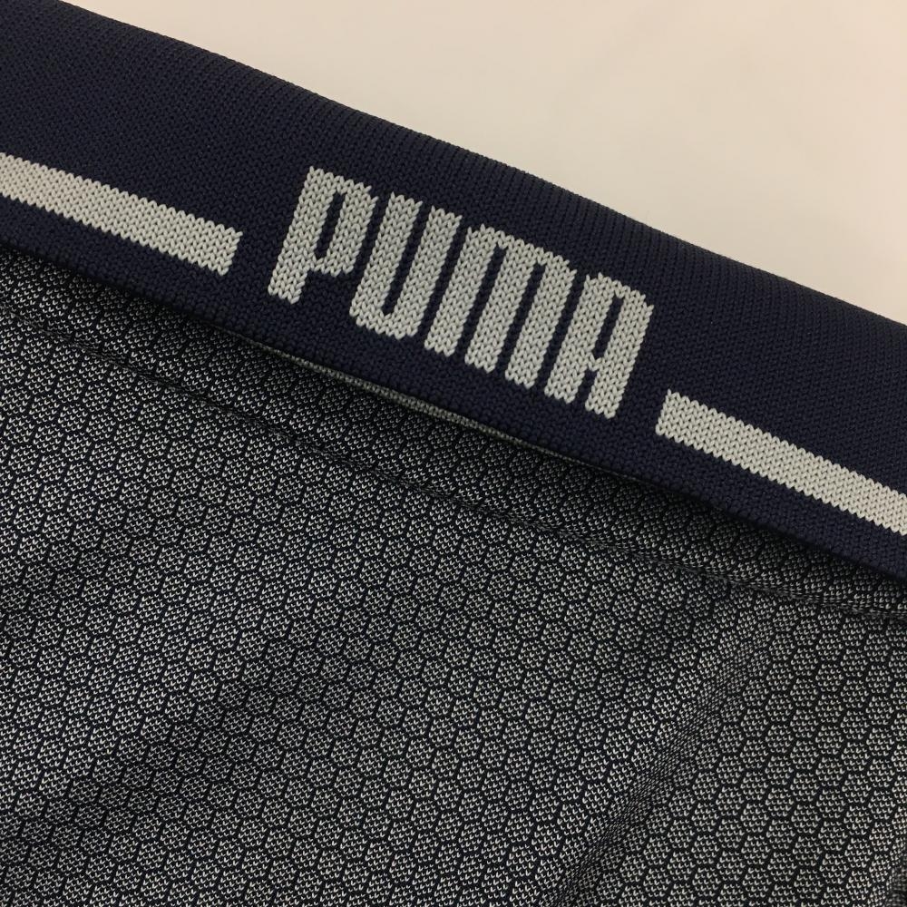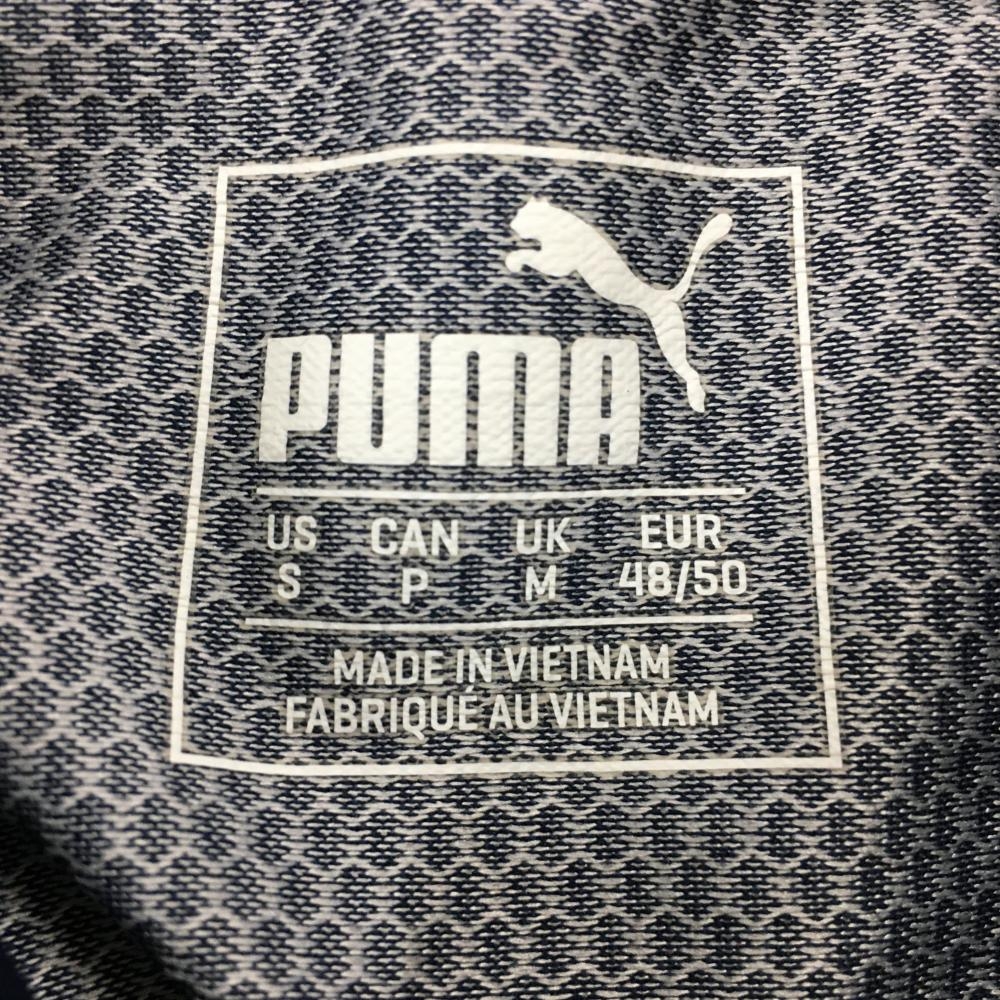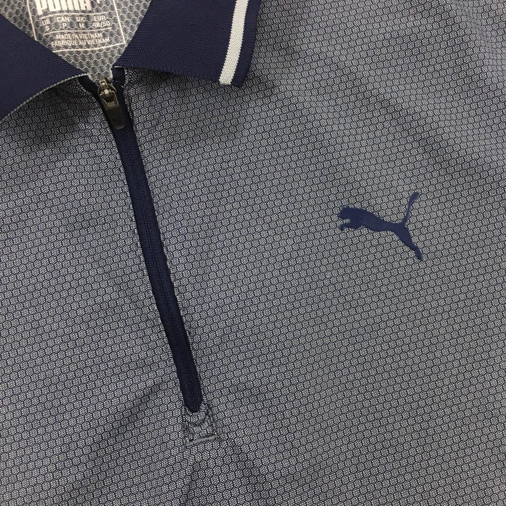 【超美品】プーマ 半袖ポロシャツ ネイビー 総柄織生地 ハーフジップ メンズ US-S ゴルフウェア PUMA
