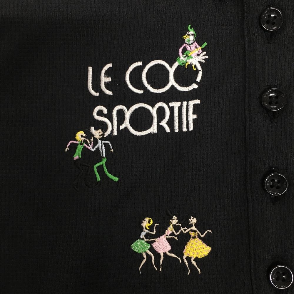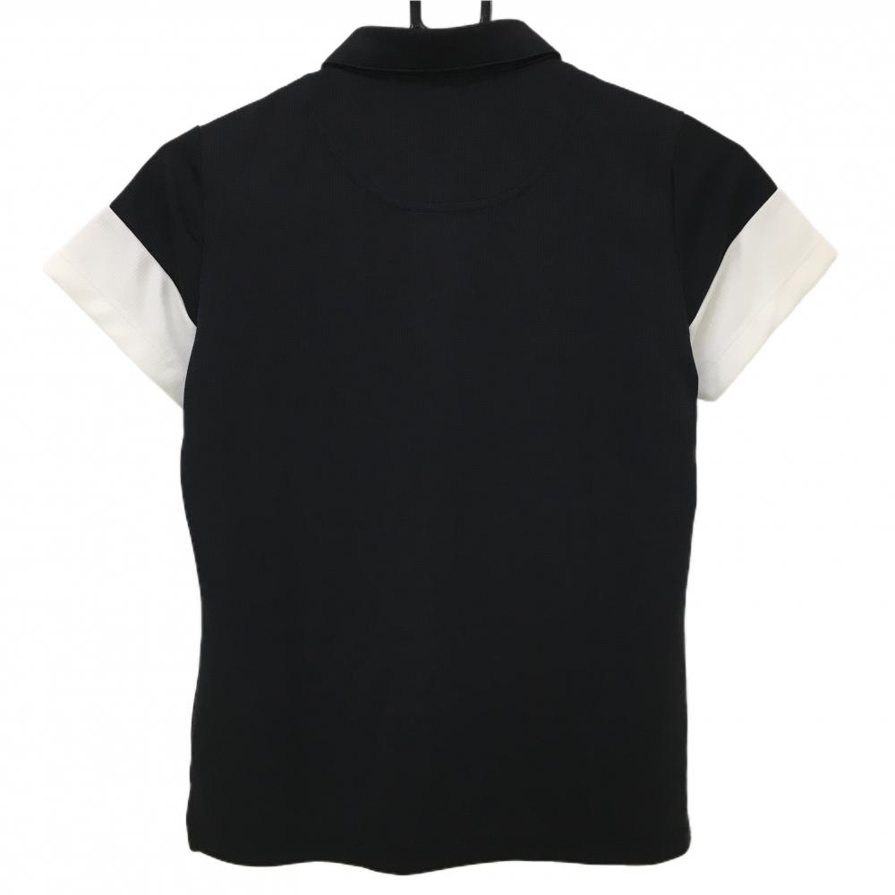 【超美品】ルコックゴルフ 半袖ポロシャツ 黒×白 織生地 胸刺しゅう レディース M ゴルフウェア le coq sportif