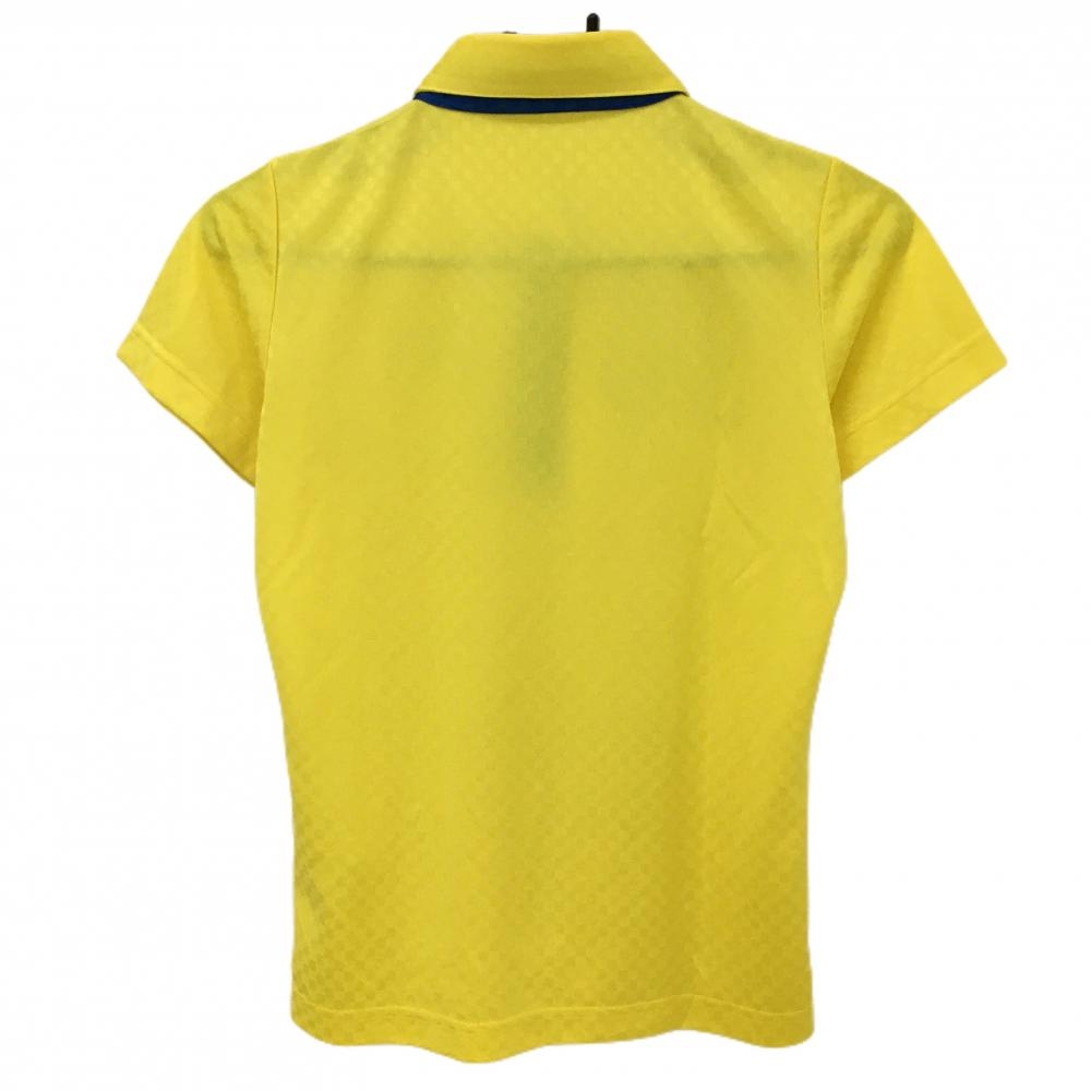 【超美品】スリクソン 半袖ポロシャツ イエロー ブロックチェック織生地 ボタンダウン レディース S ゴルフウェア SRIXON
