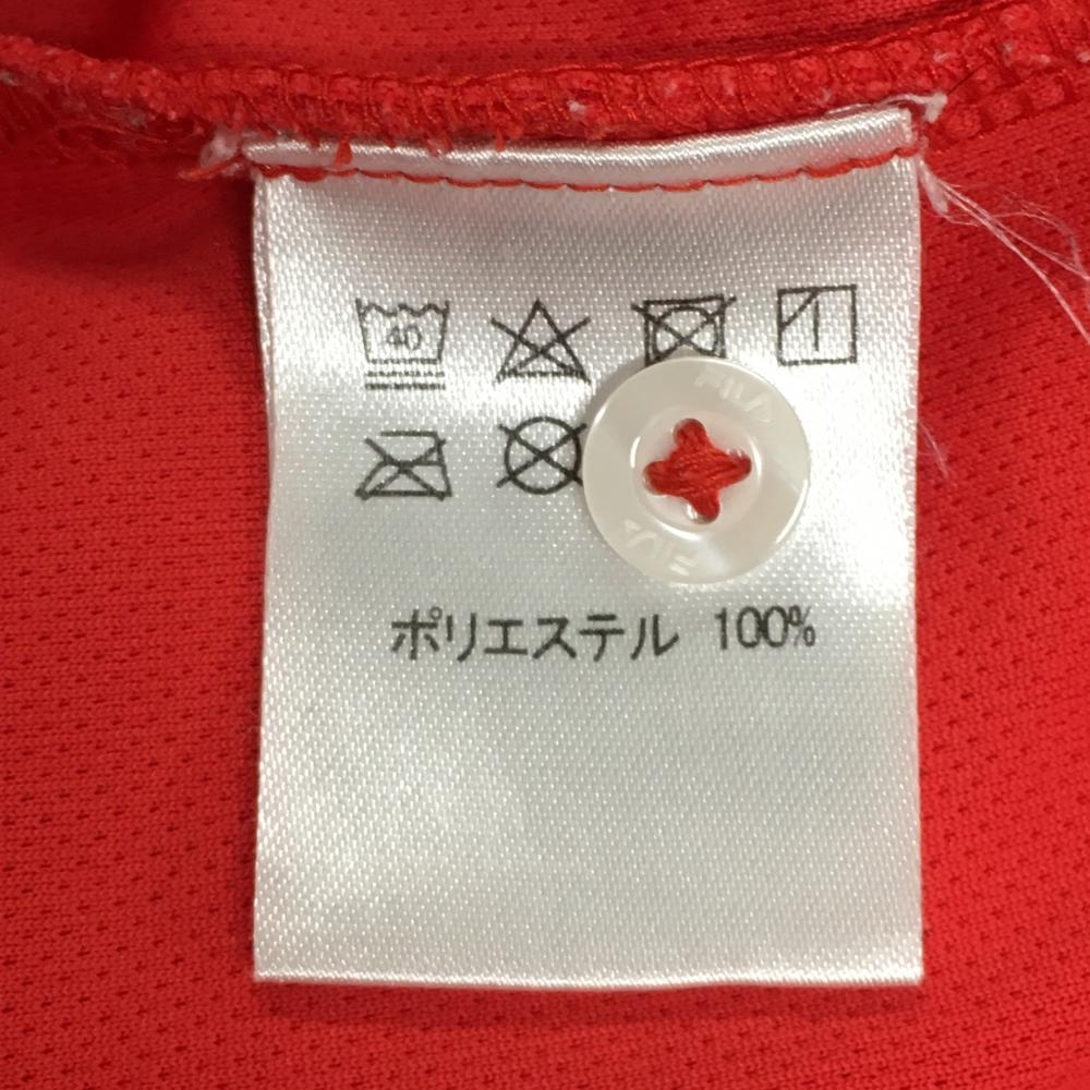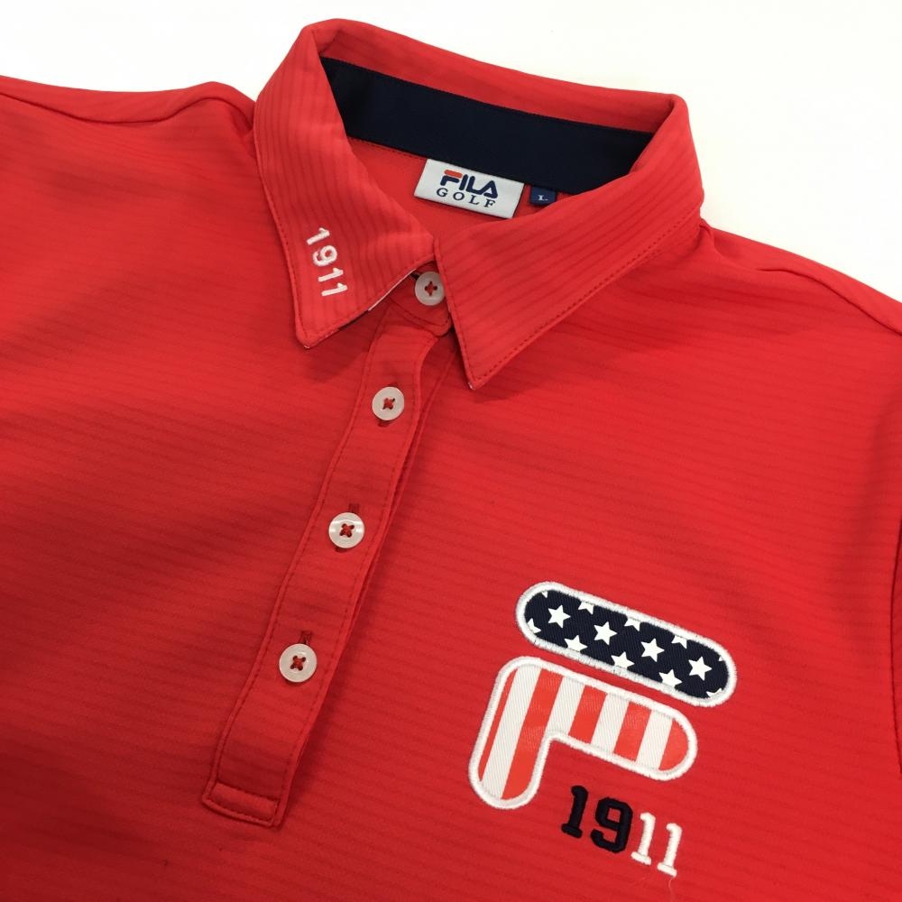 【美品】フィラゴルフ 半袖ポロシャツ レッド ボーダー織生地 ロゴ星条旗柄 レディース L ゴルフウェア FILA GOLF