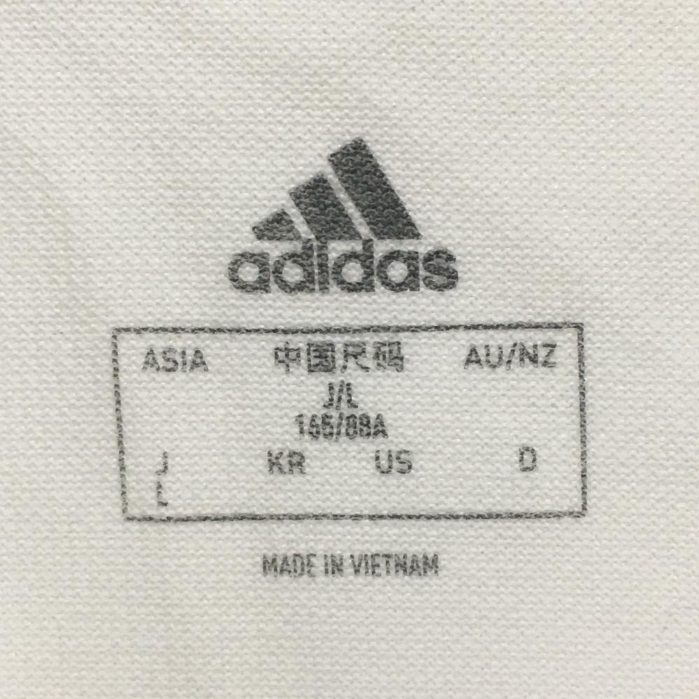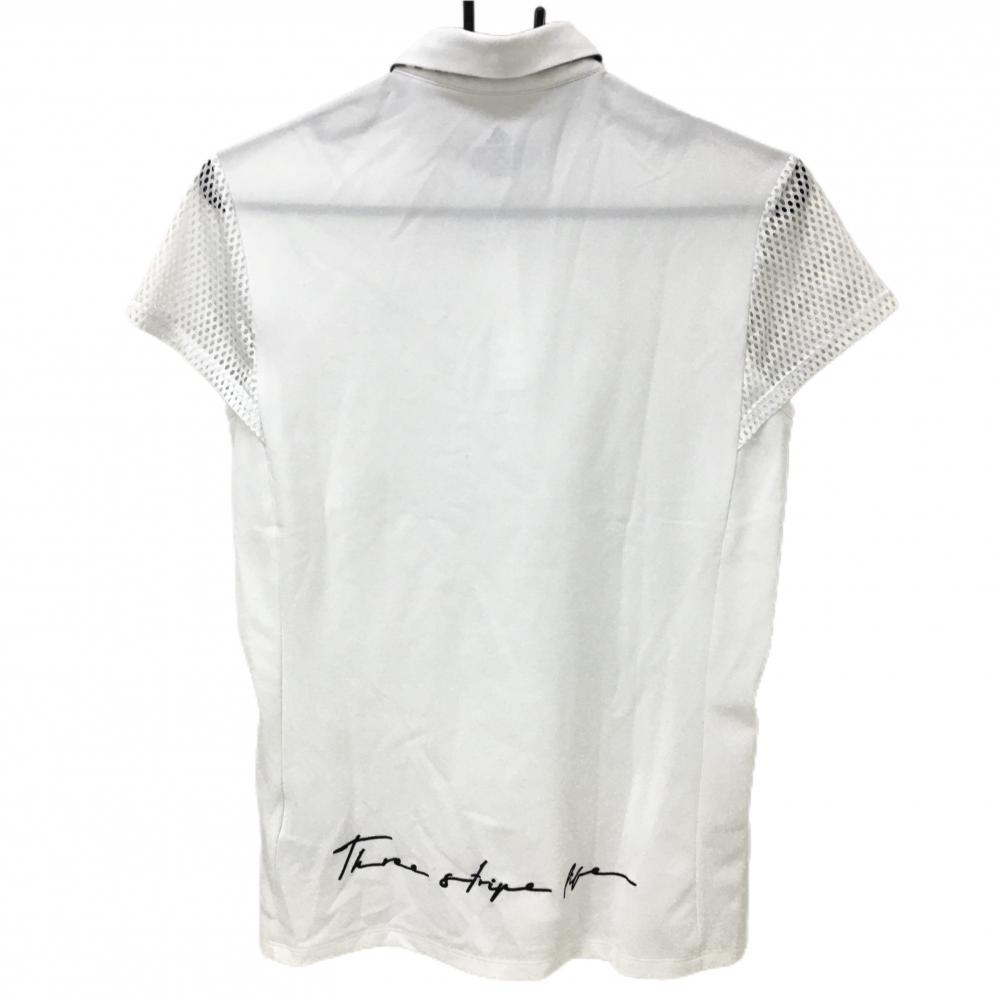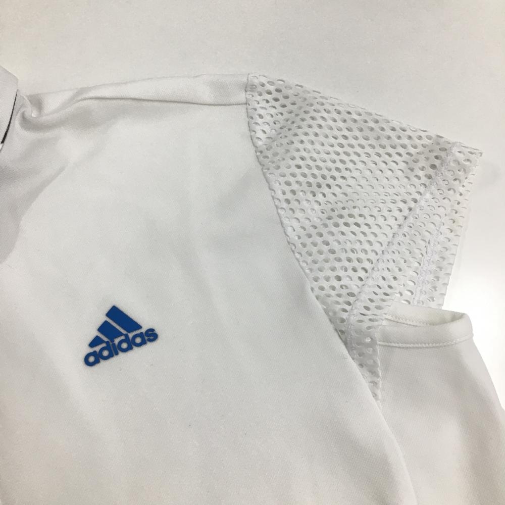 【美品】アディダス 半袖ポロシャツ 白×ブルー 袖メッシュ 立体ロゴ レディース L ゴルフウェア adidas