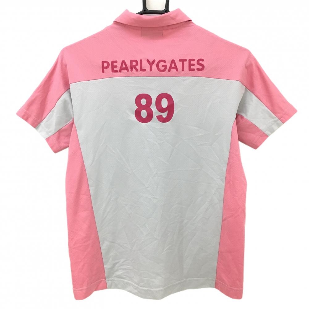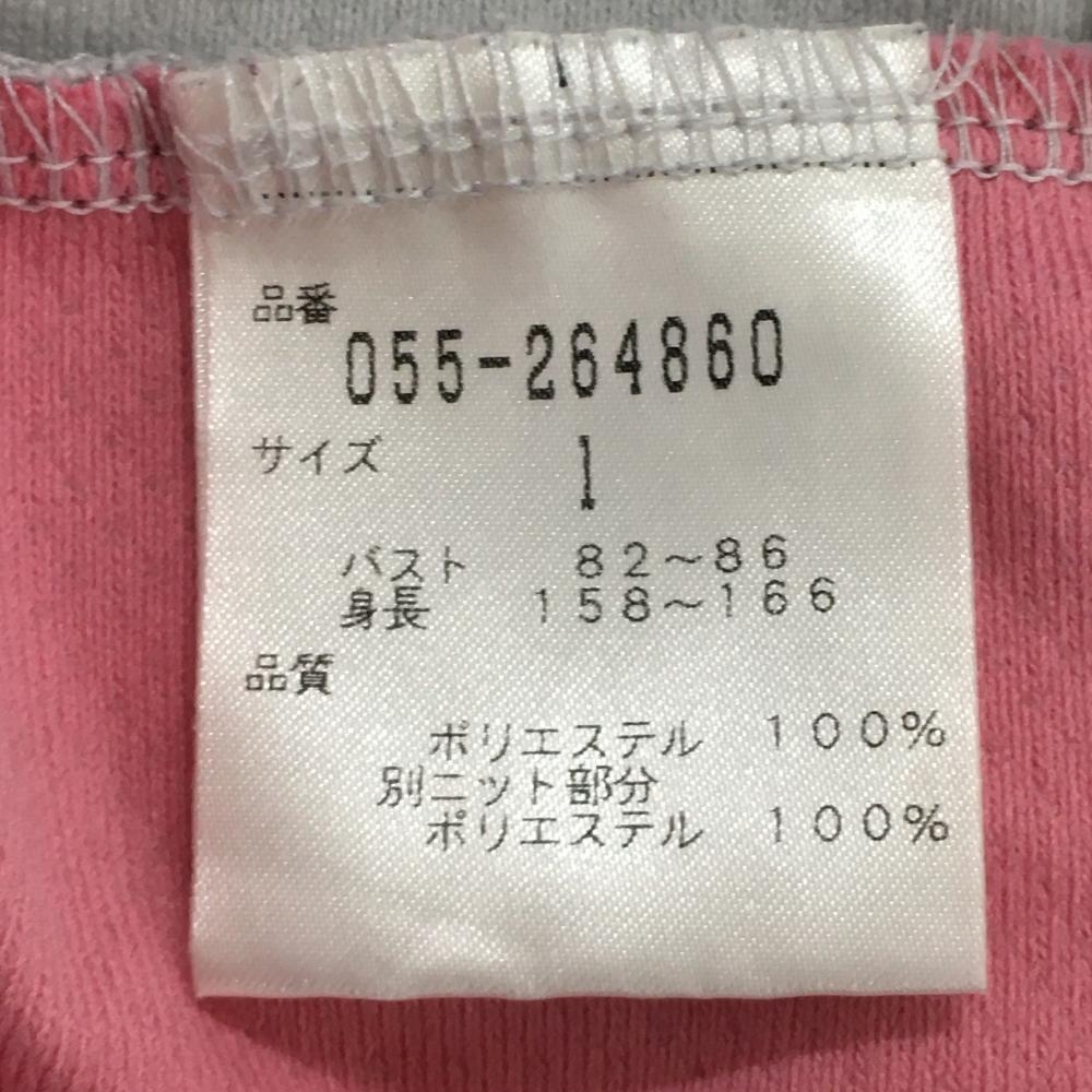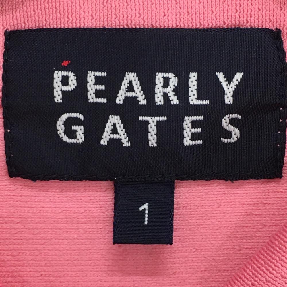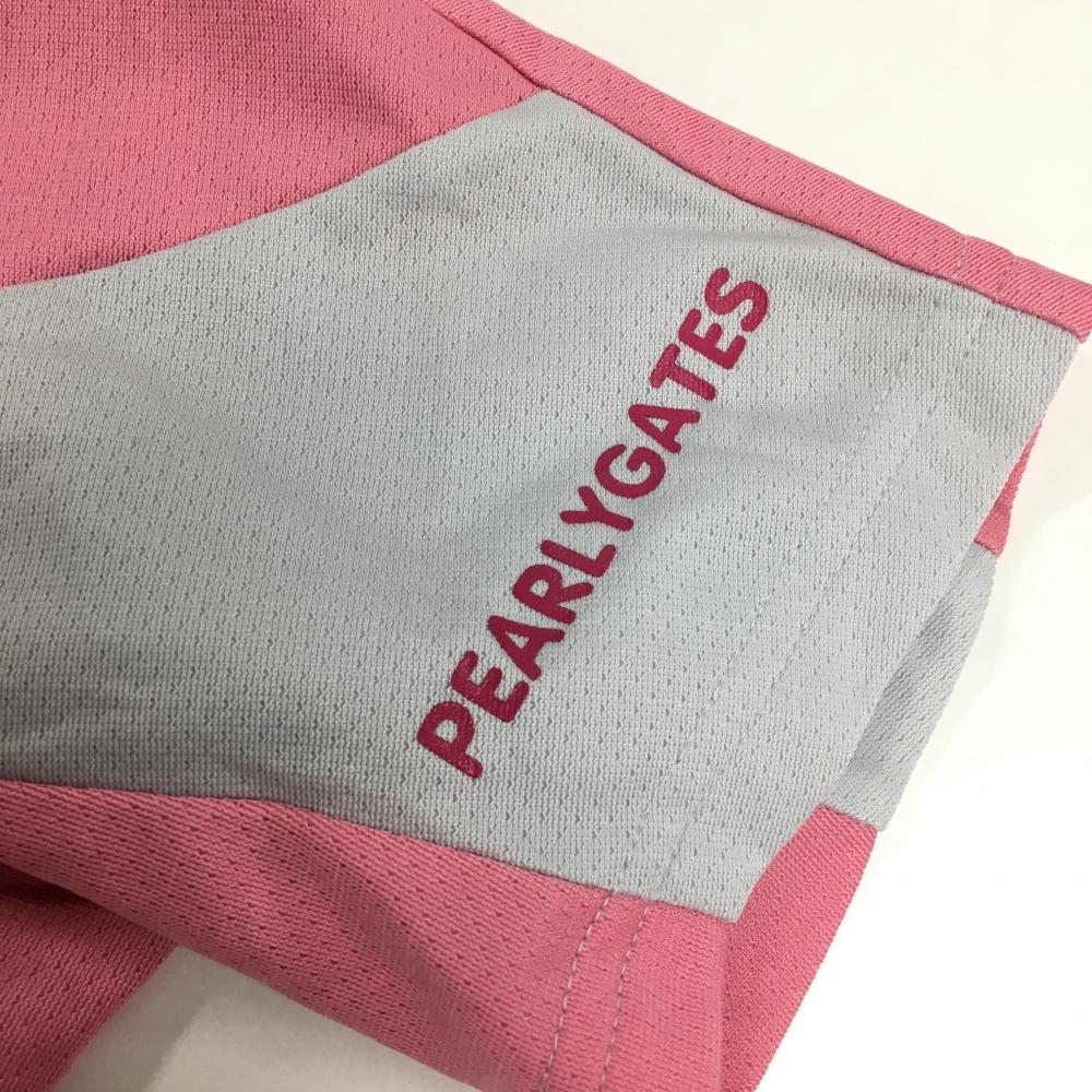【超美品】パーリーゲイツ 半袖ポロシャツ ピンク×ライトグレー スナップボタン 胸ポケット付 レディース 1(M) ゴルフウェア PEARLY GATES