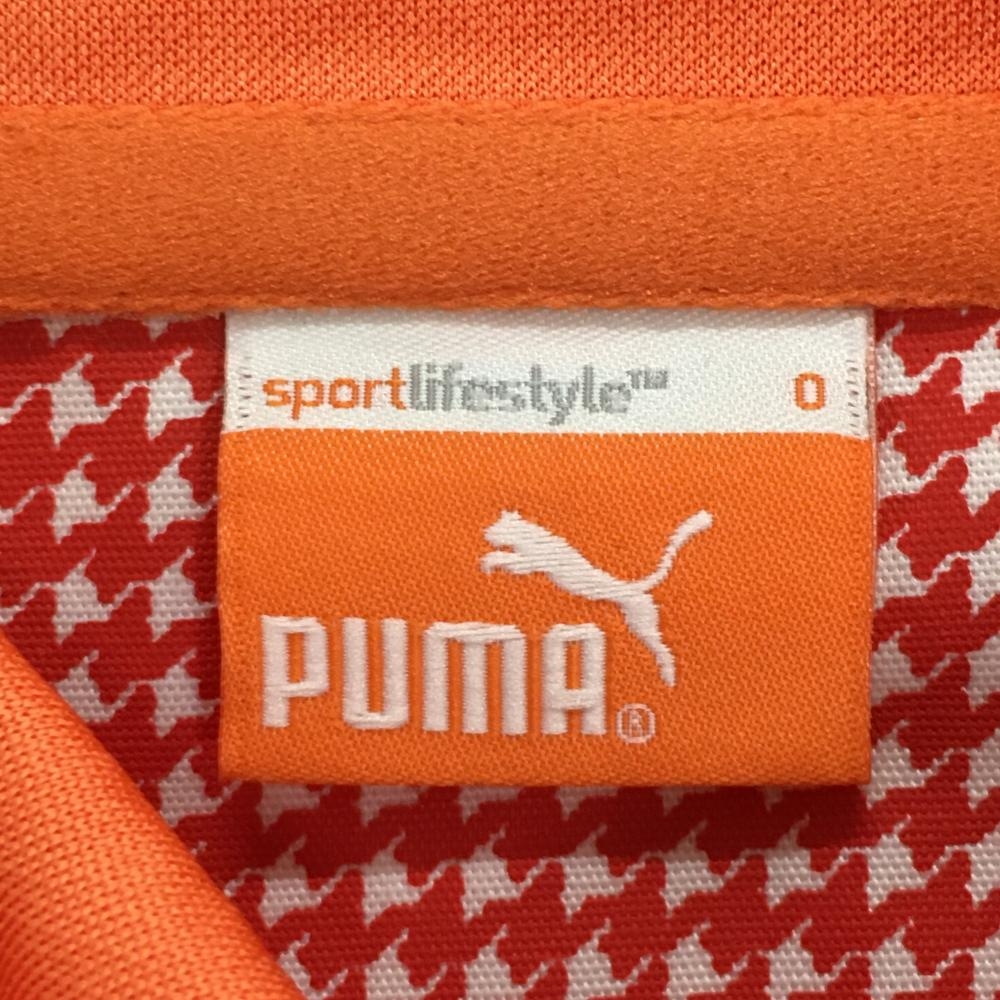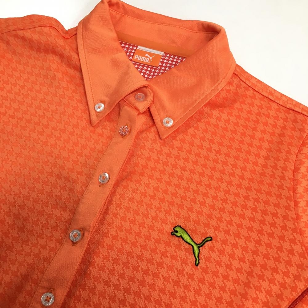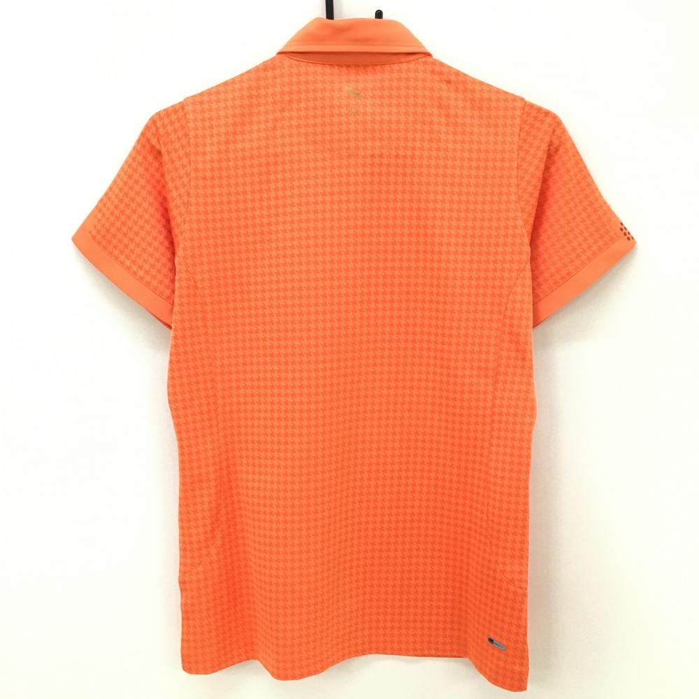 【超美品】プーマ 半袖ポロシャツ オレンジ 千鳥格子柄 織生地 ロゴ刺しゅう レディース O ゴルフウェア PUMA