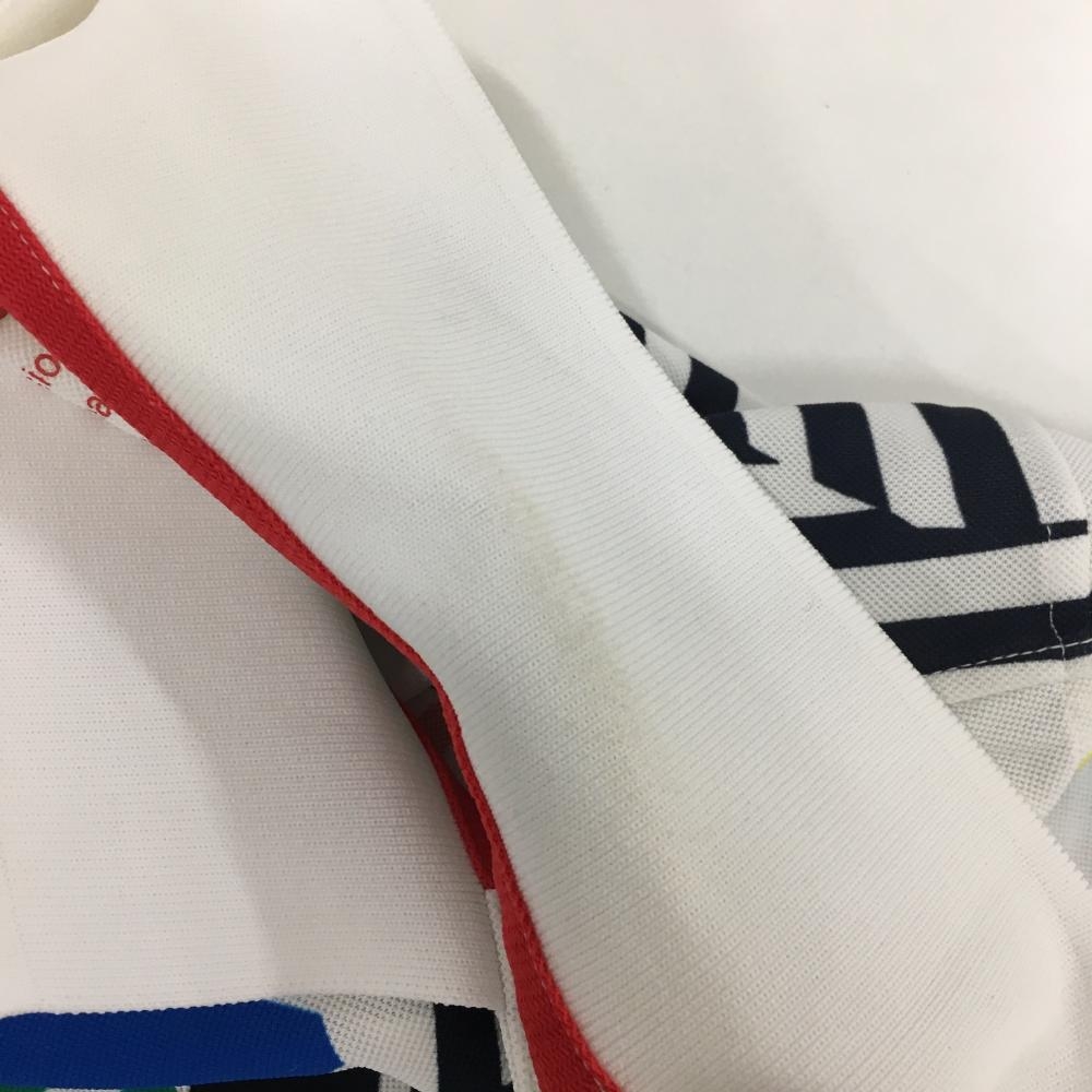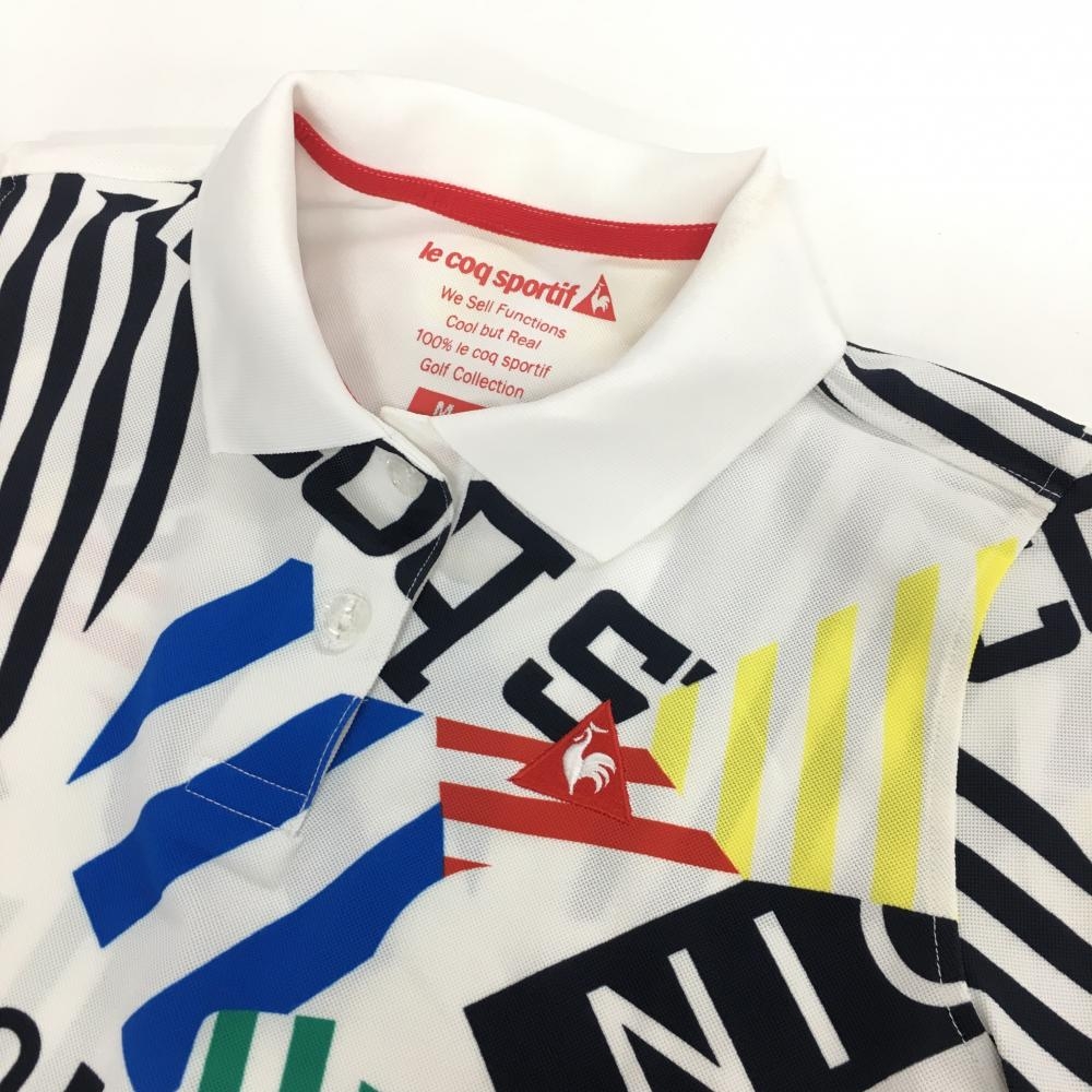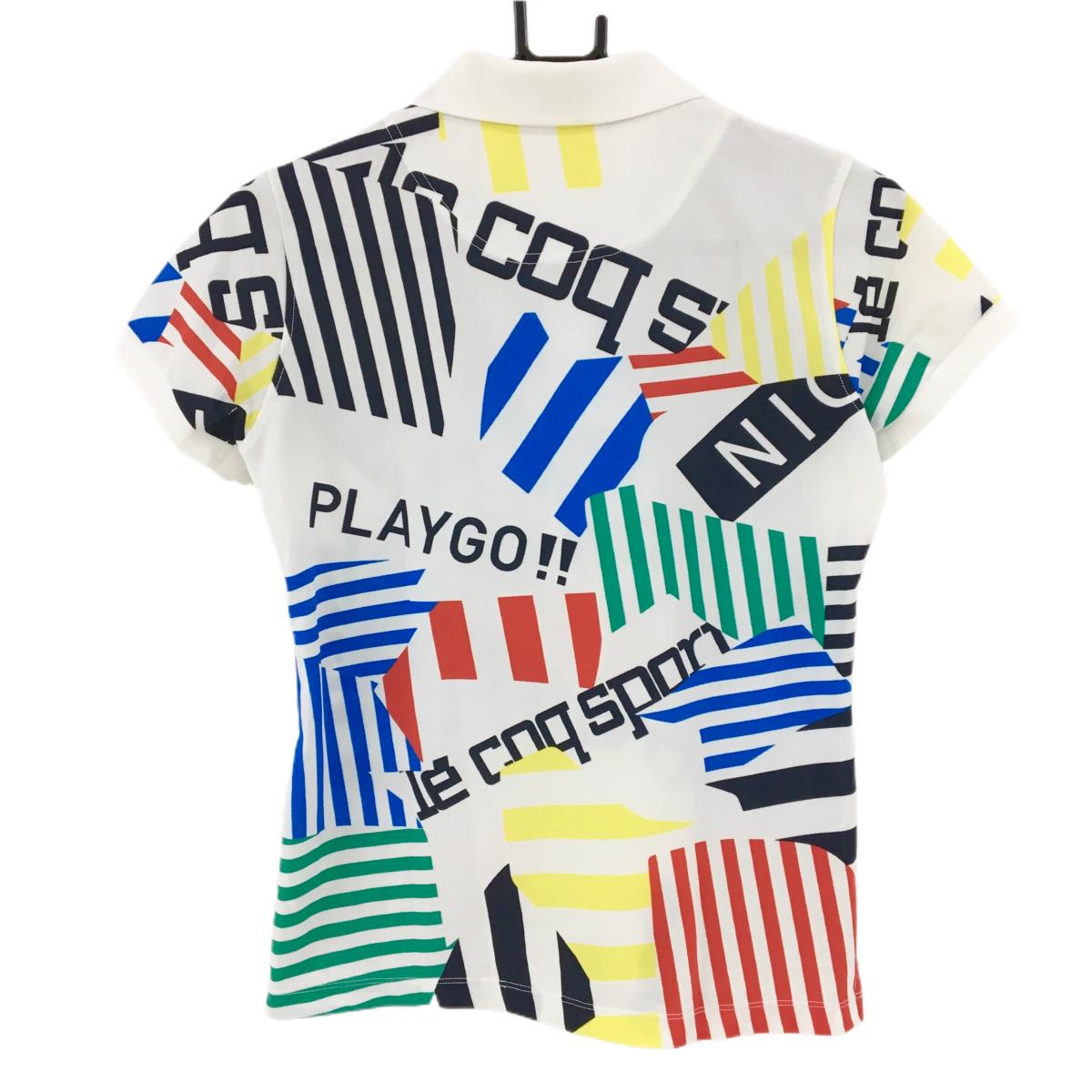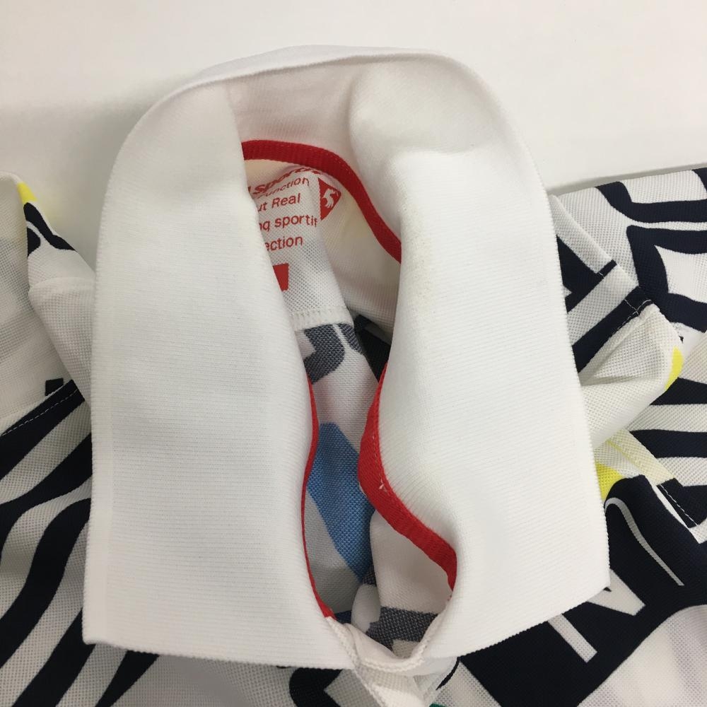 ルコック 半袖ポロシャツ 白×マルチ 総柄 胸刺しゅう レディース M ゴルフウェア le coq sportif
