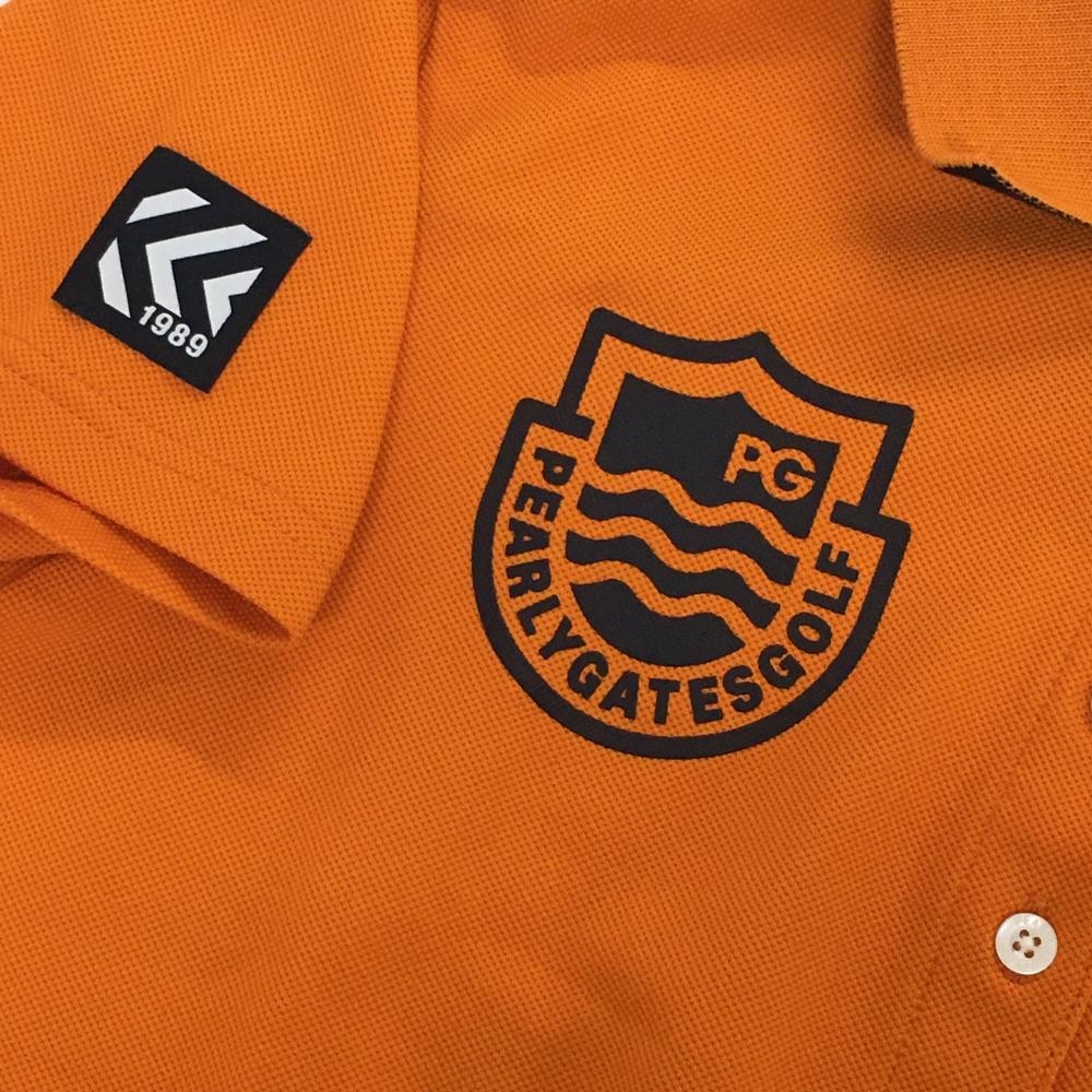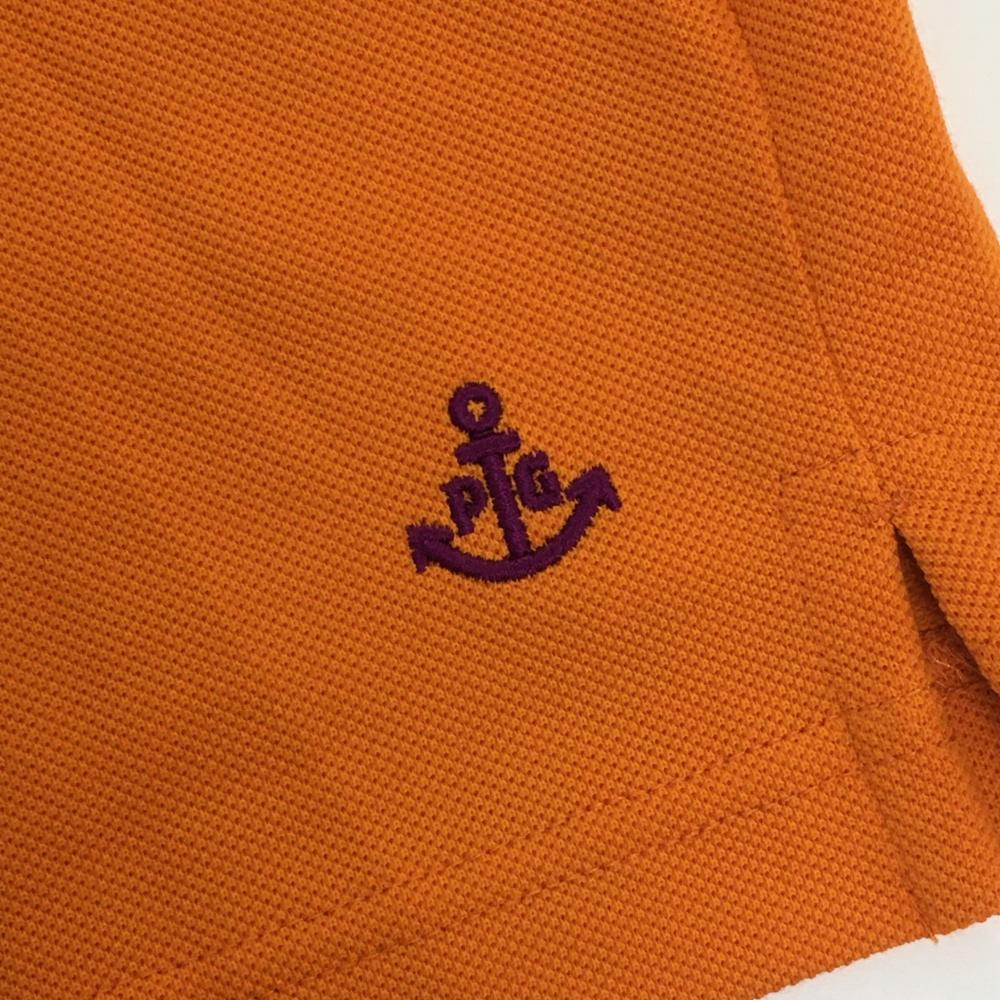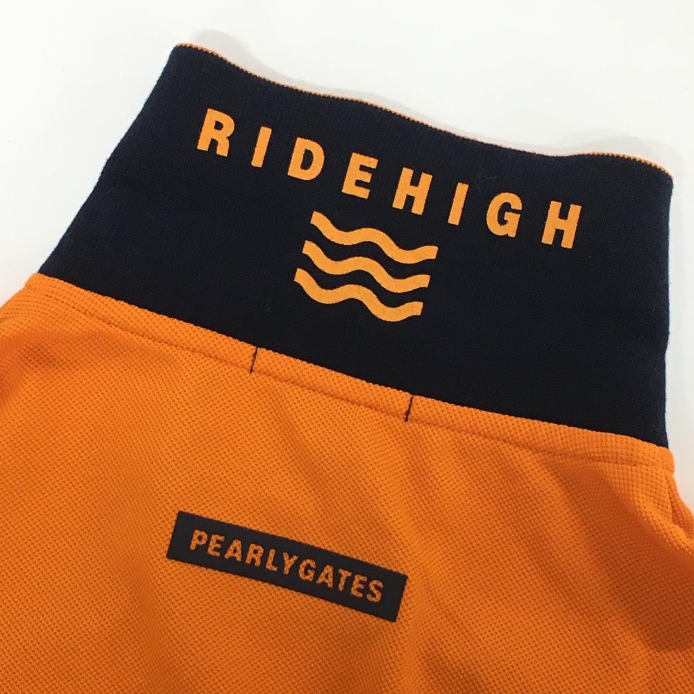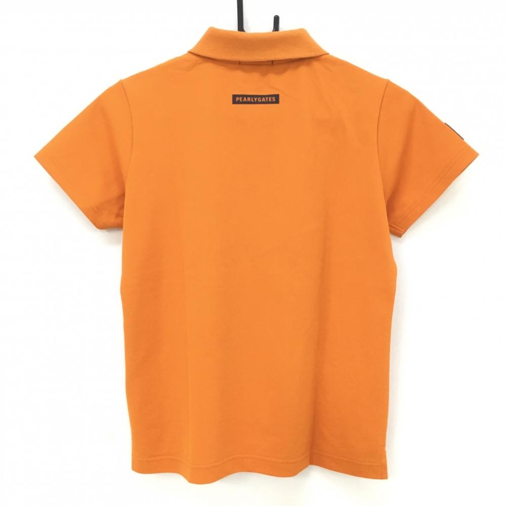 【超美品】パーリーゲイツ 半袖ポロシャツ オレンジ×ネイビー 襟裏英字 イカリ刺しゅう レディース 0(S) ゴルフウェア PEARLY GATES