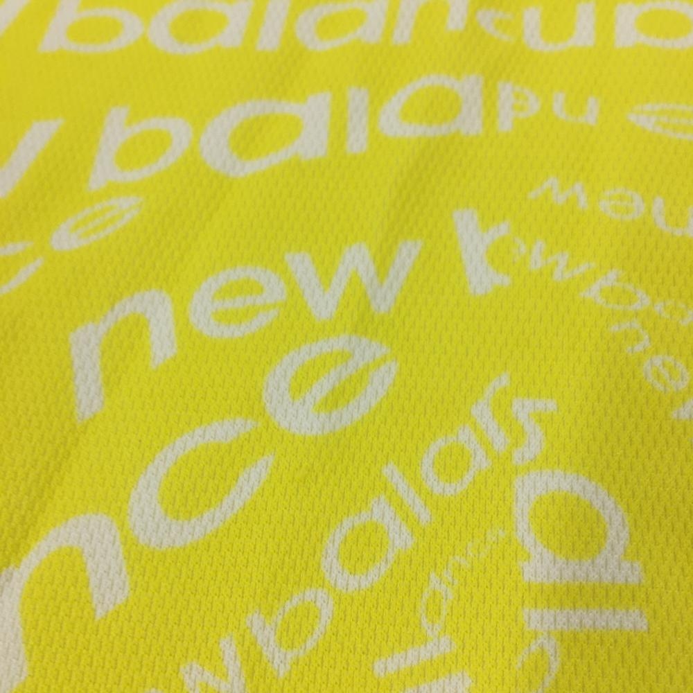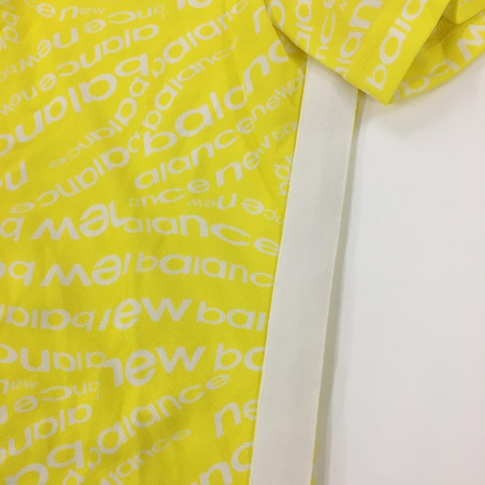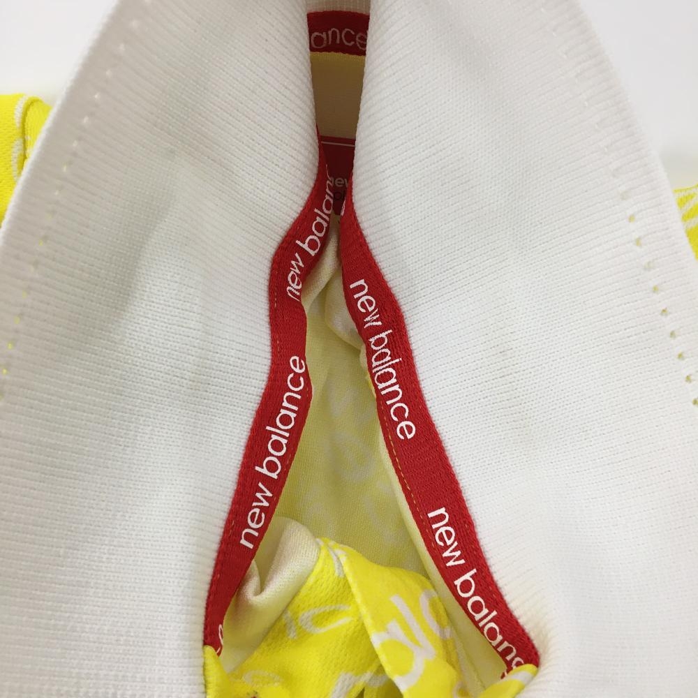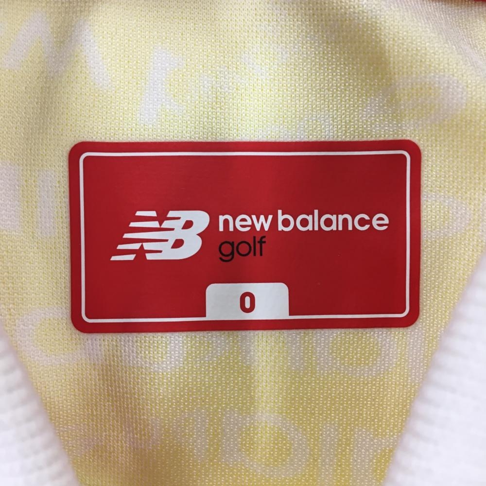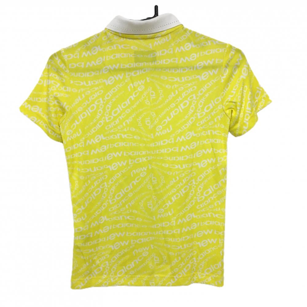 ニューバランスゴルフ 半袖ポロシャツ イエロー×白 ロゴ総柄 サイドライン レディース 0(S) ゴルフウェア New Balance