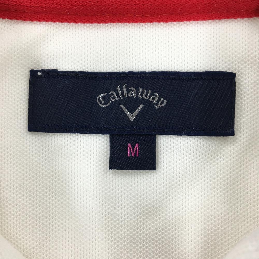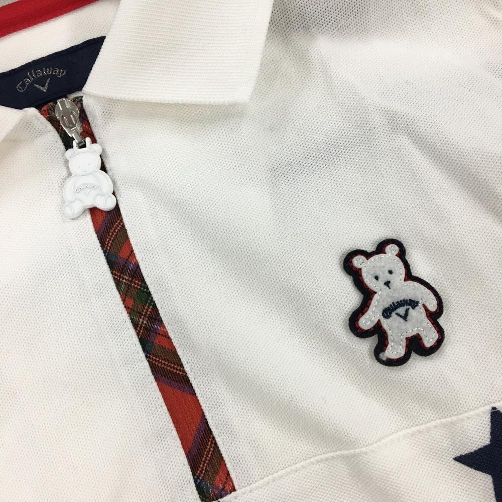 キャロウェイ 半袖ポロシャツ 白×ネイビー 星柄 スター ベア ハーフジップ レディース M ゴルフウェア Callaway