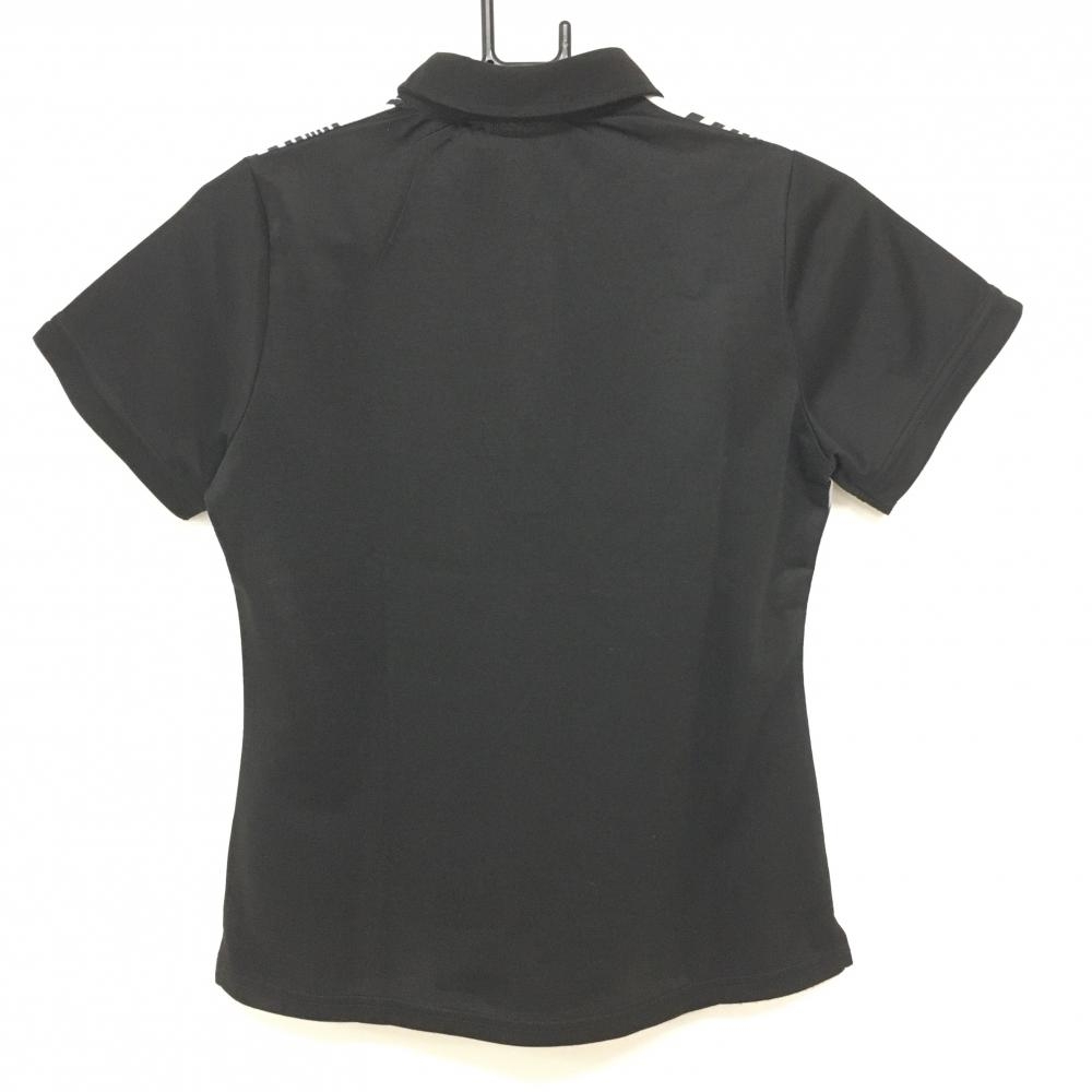【美品】エフィカス 半袖ポロシャツ 黒×白 ストライプ ロゴ刺しゅう レディース M ゴルフウェア efficace