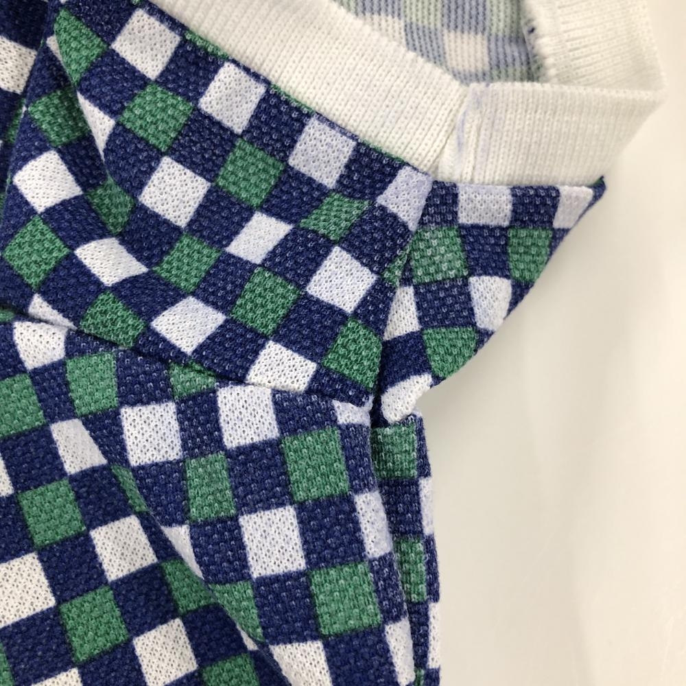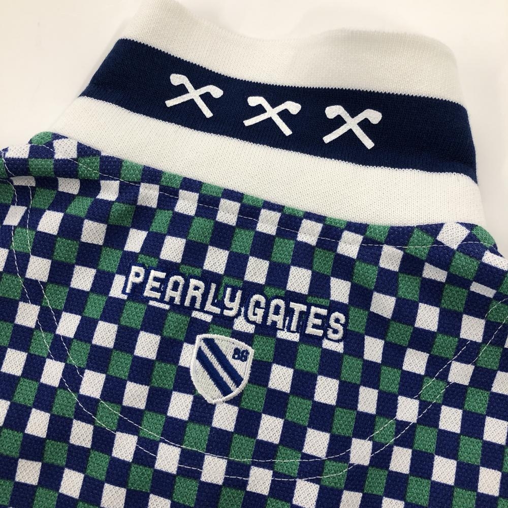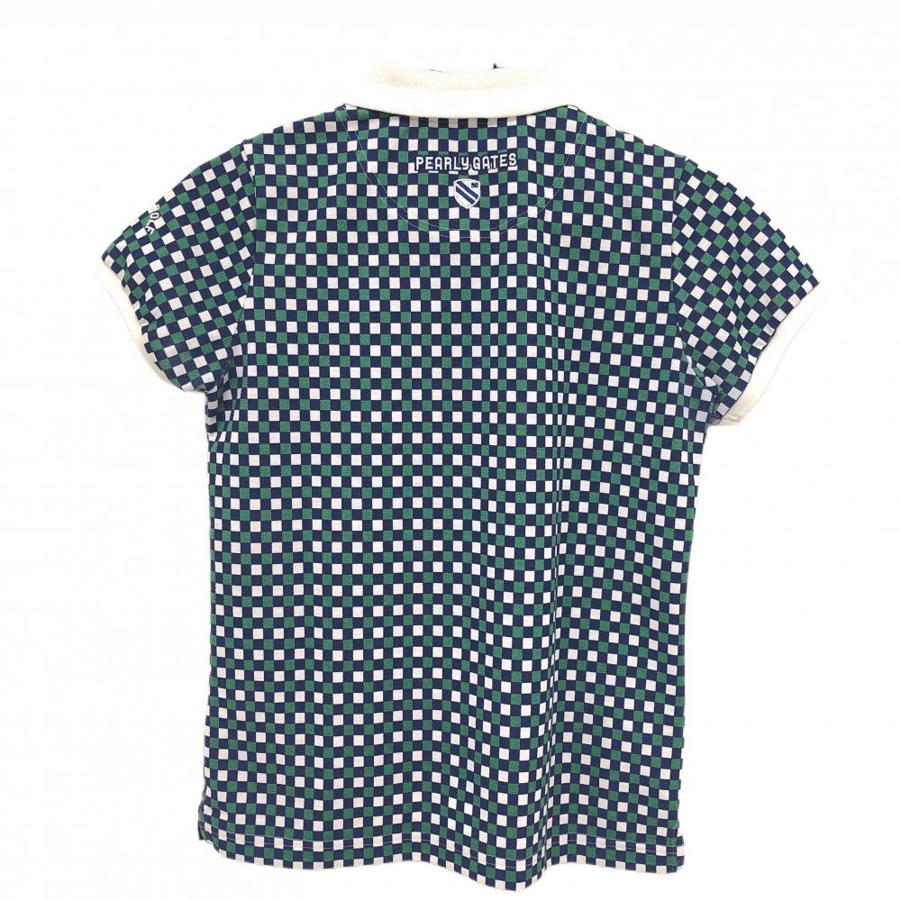 パーリーゲイツ 半袖ポロシャツ ネイビー×グリーン ブロックチェック レディース 0(S) ゴルフウェア PEARLY GATES