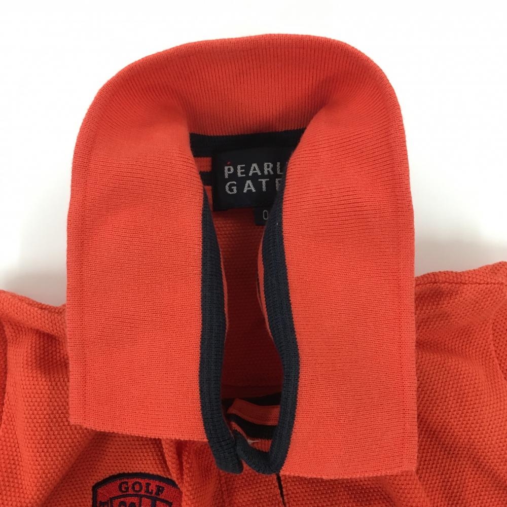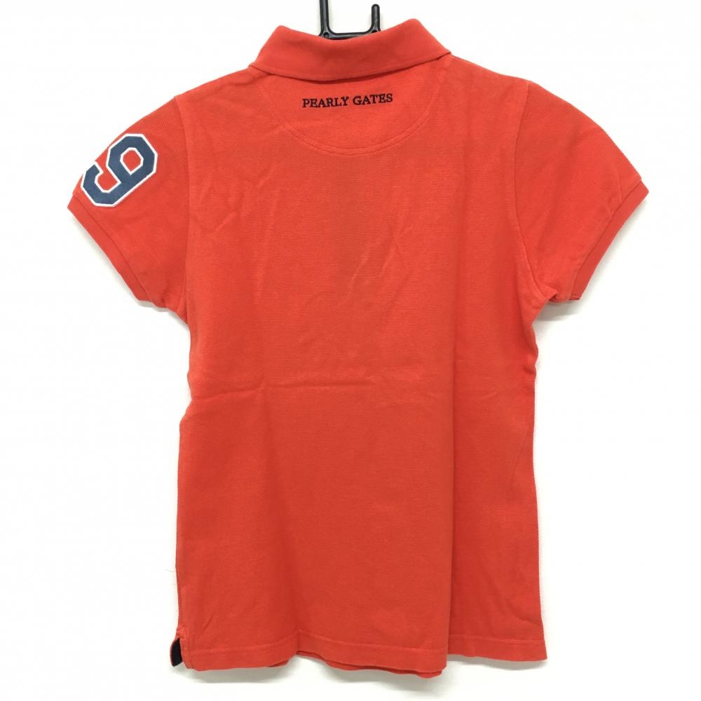 パーリーゲイツ 半袖ポロシャツ オレンジ×ネイビー 袖ワッペン レディース 0(S) ゴルフウェア PEARLY GATES