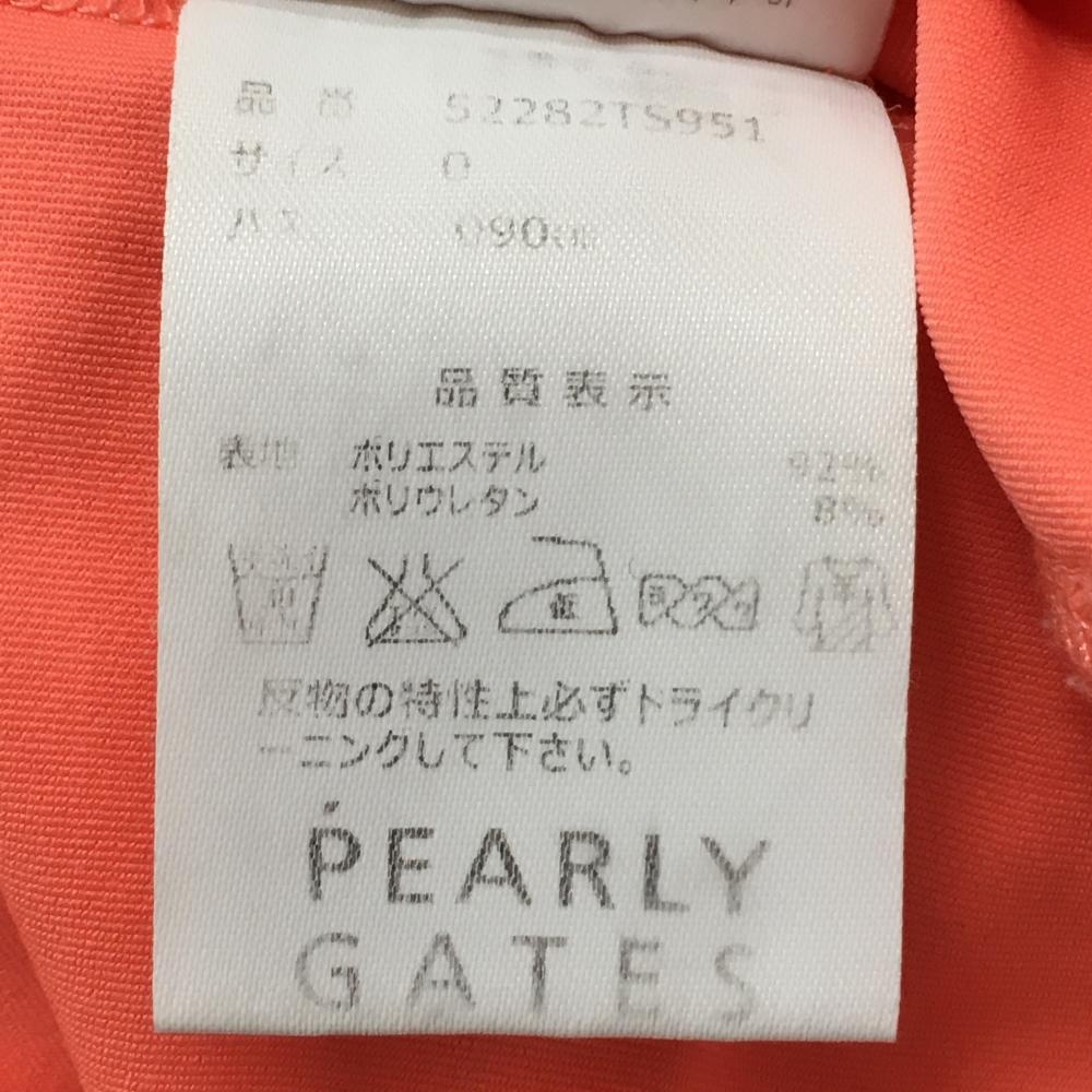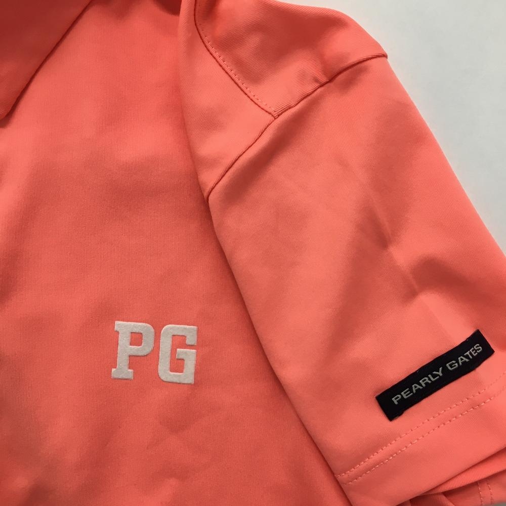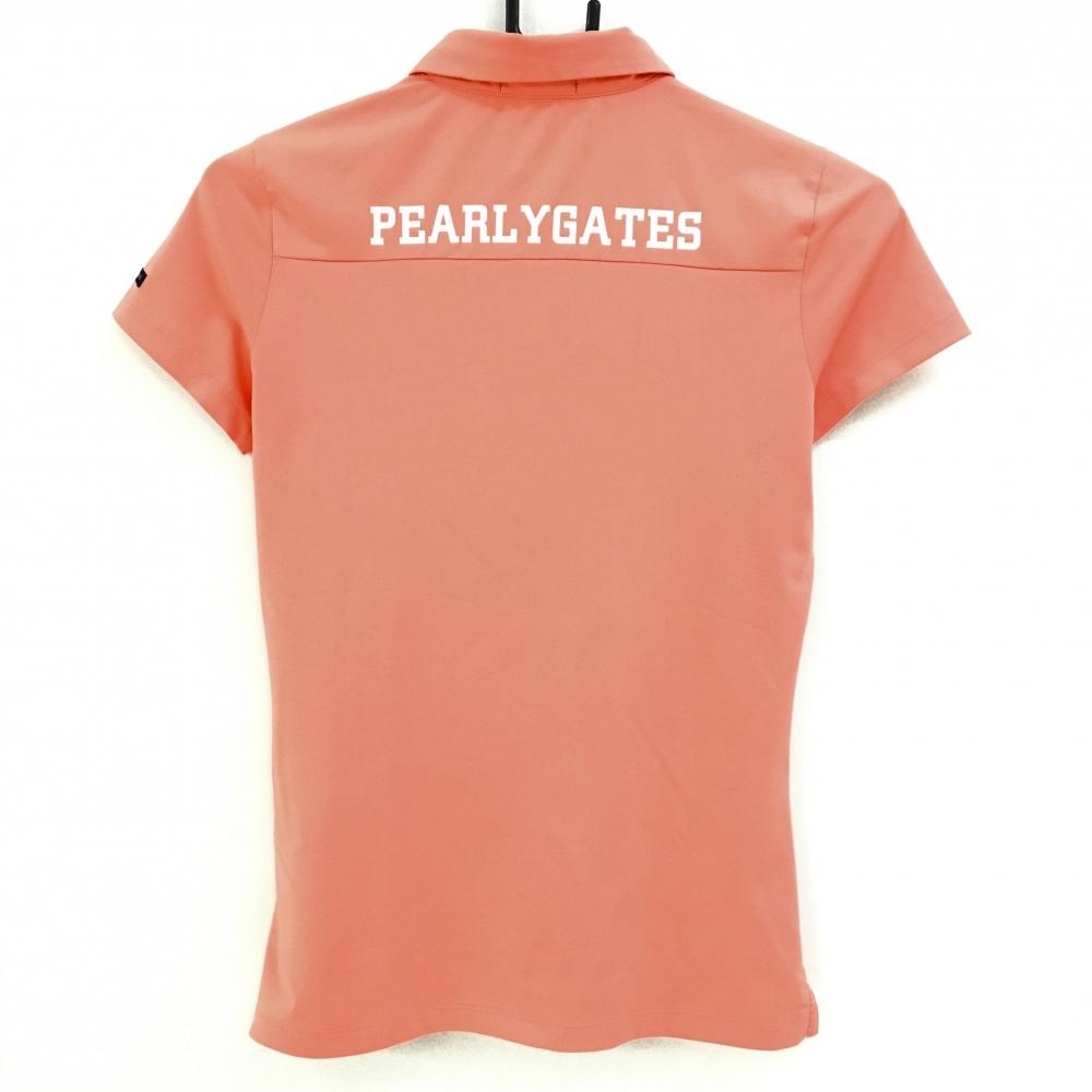 【美品】パーリーゲイツ 半袖ポロシャツ サーモンピンク×白 バックロゴ 韓国モデル レディース 0(S) ゴルフウェア PEARLY GATES