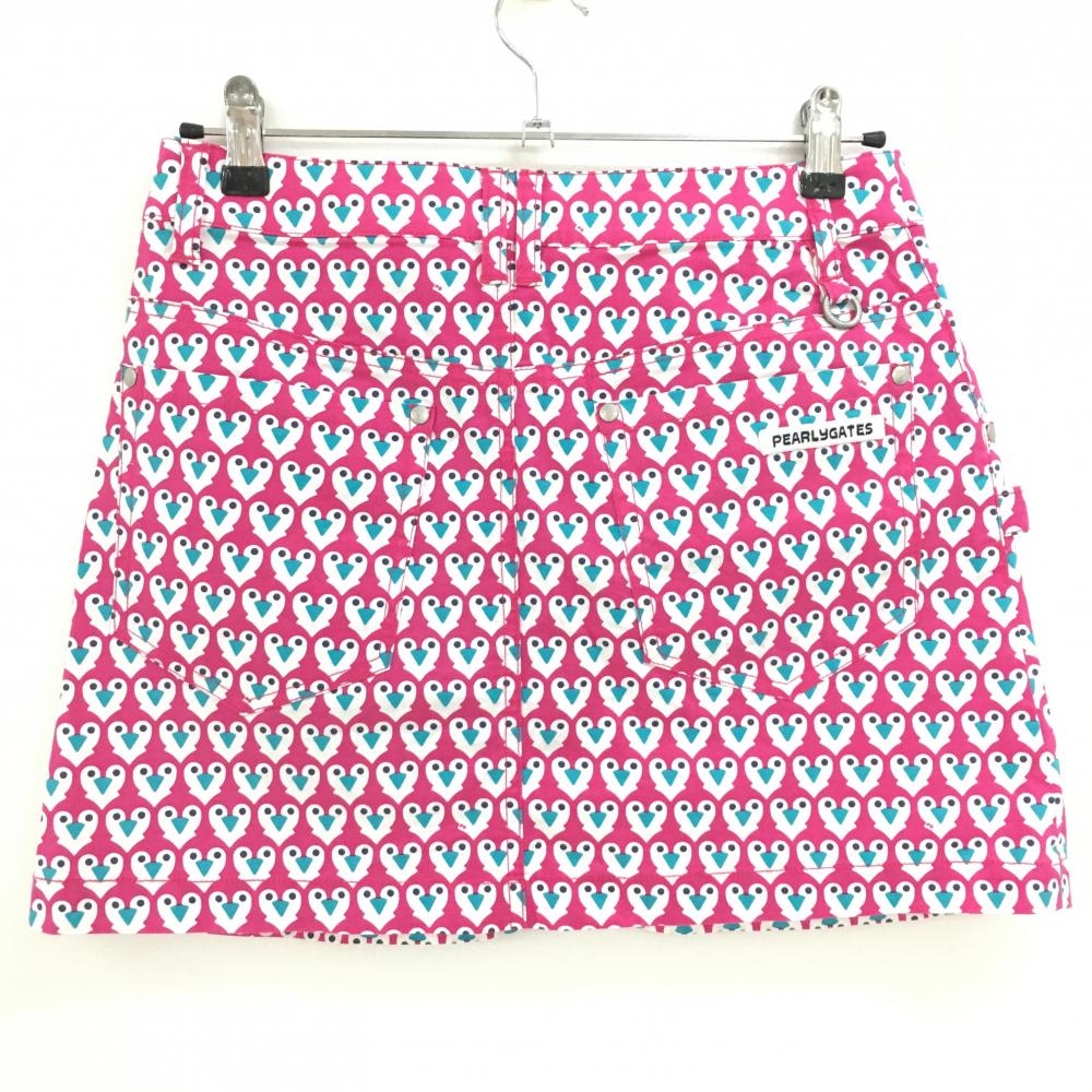 パーリーゲイツ スカート ピンク×白 ペンギン柄 内側30周年 レディース 1(M) ゴルフウェア PEARLY GATES