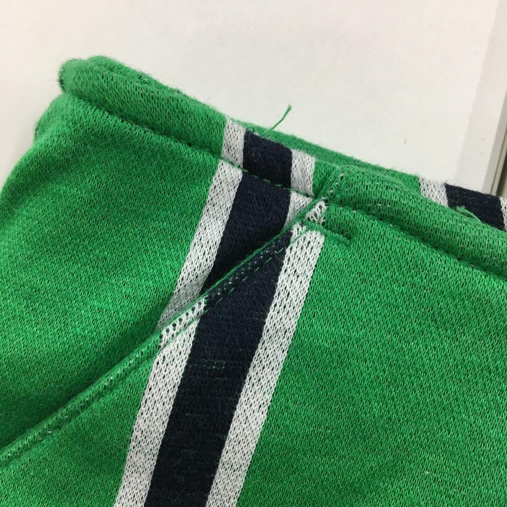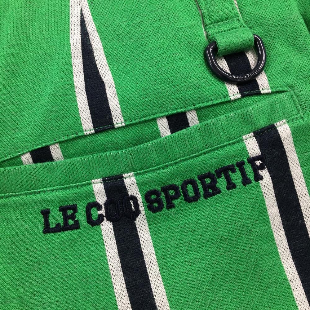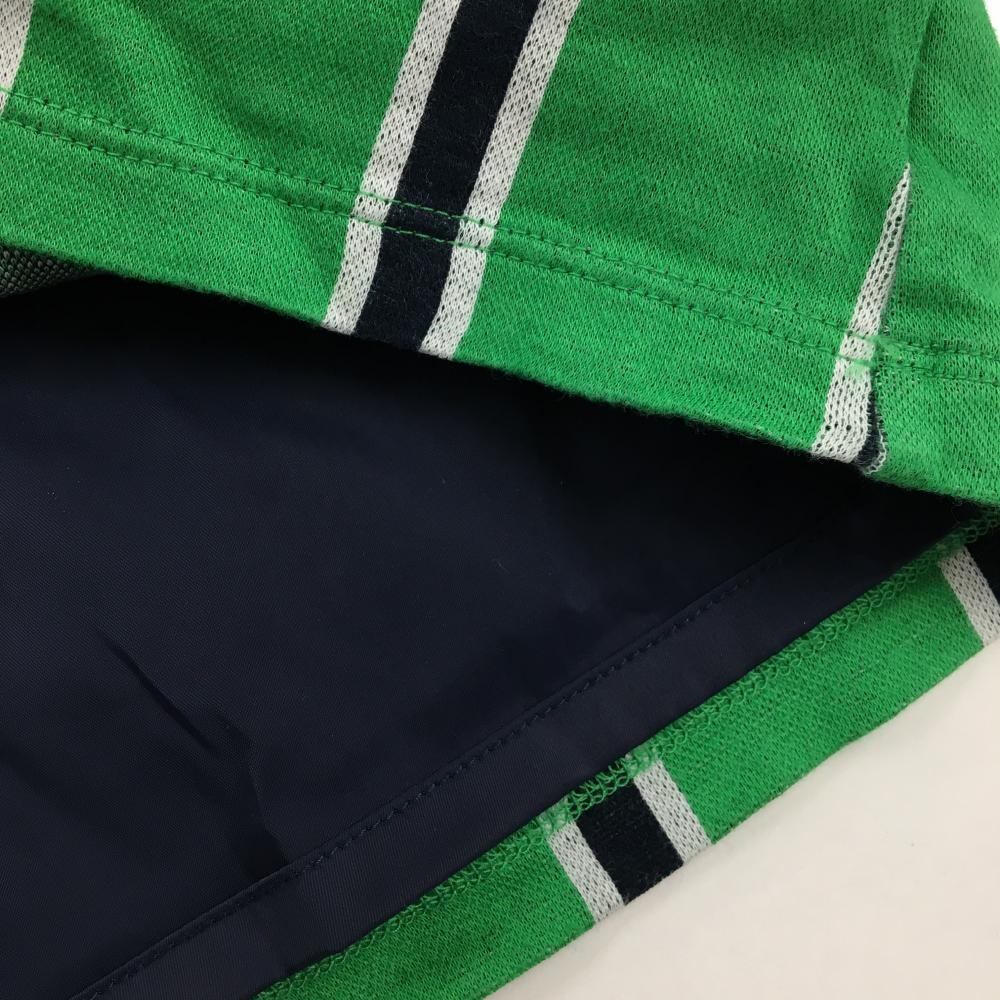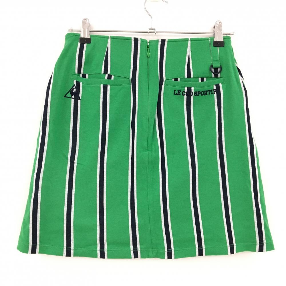 【美品】ルコック スカート グリーン×ネイビー×白 ストライプ 裏地付き ワッペン ウエスト・ポケット口色褪せ少 レディース ゴルフウェア le coq sportif