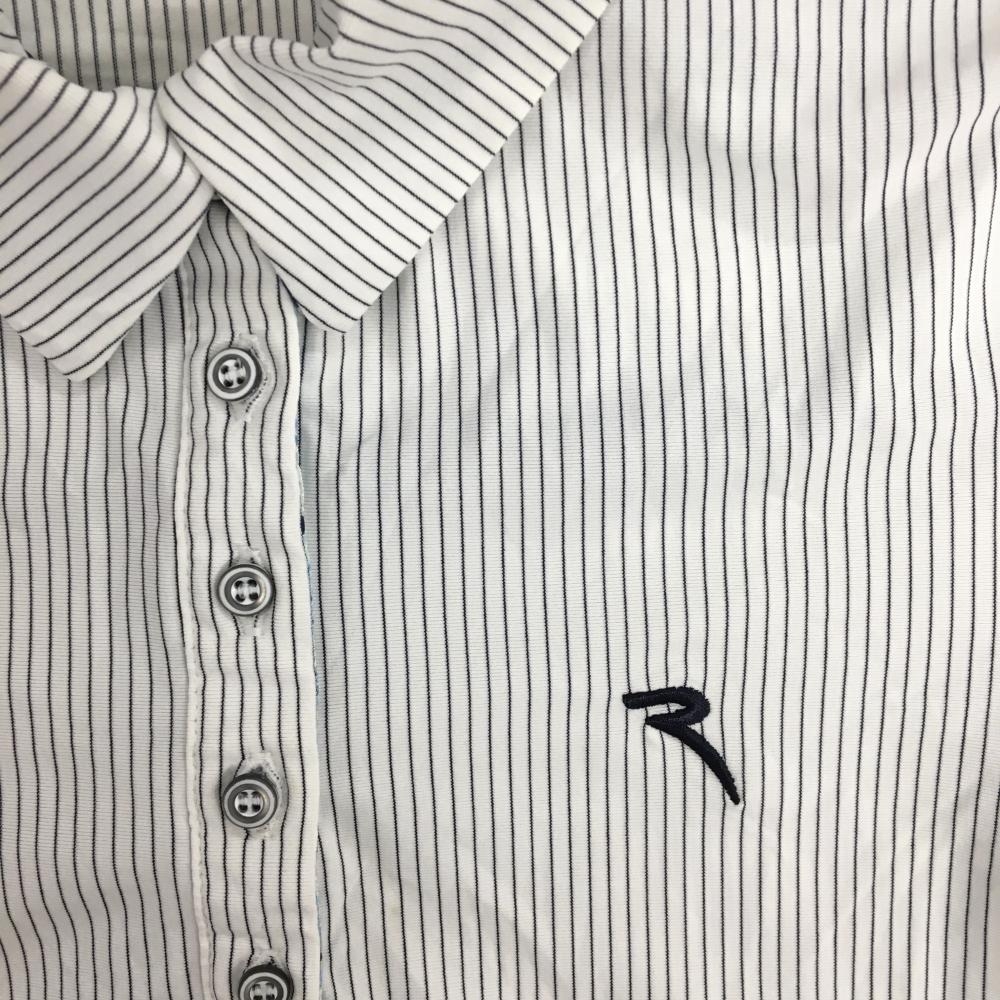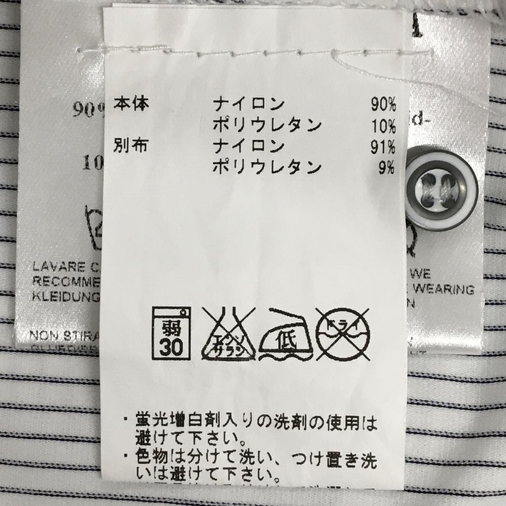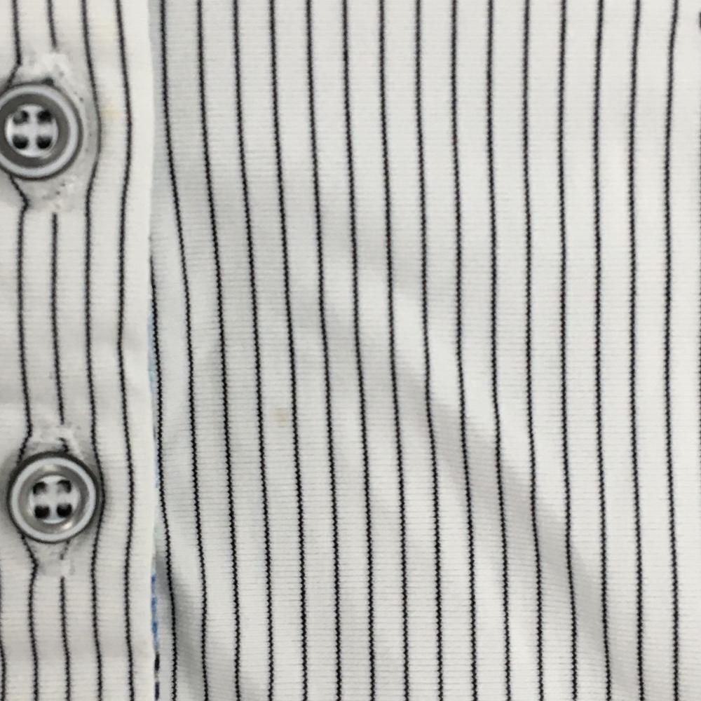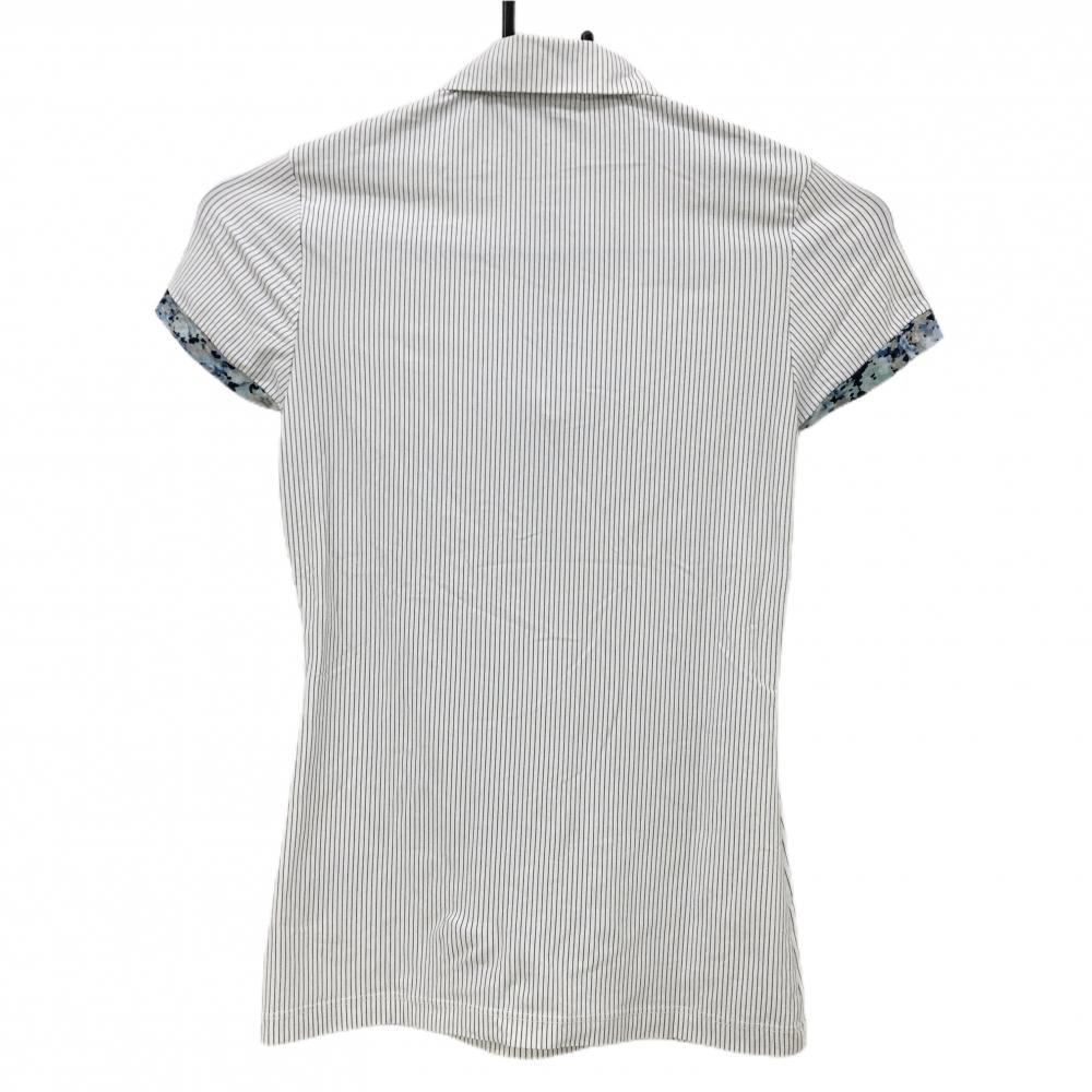 【美品】シェルボ 半袖ポロシャツ 白×ライトブルー ストライプ 一部柄 ロゴ刺しゅう レディース USA4-XS ゴルフウェア CHERVO