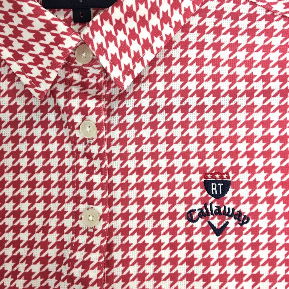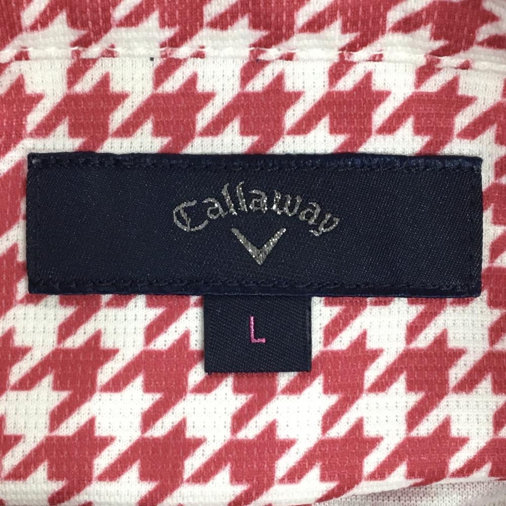 【超美品】キャロウェイ 半袖ポロシャツ 白×ピンク 千鳥格子 ロゴ刺しゅう レディース L ゴルフウェア Callaway